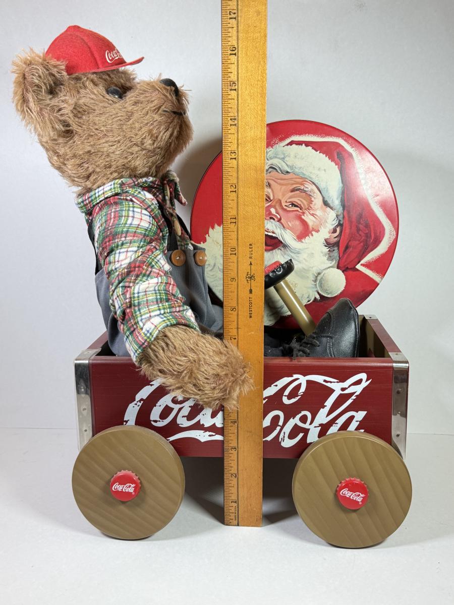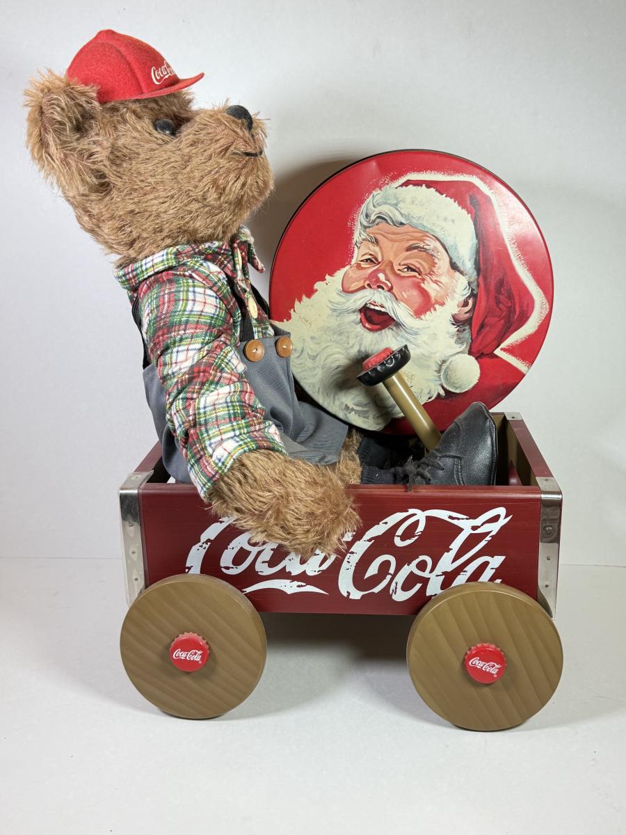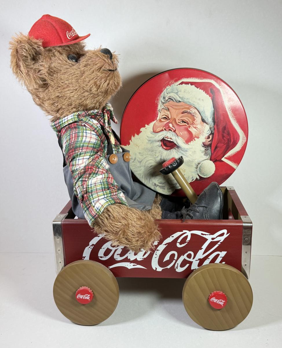 LOT 147L: The Franklin Mint Coca Cola Wagon, Heirloom Collectibles Coca-Cola Bear & Vintage Santa Tin