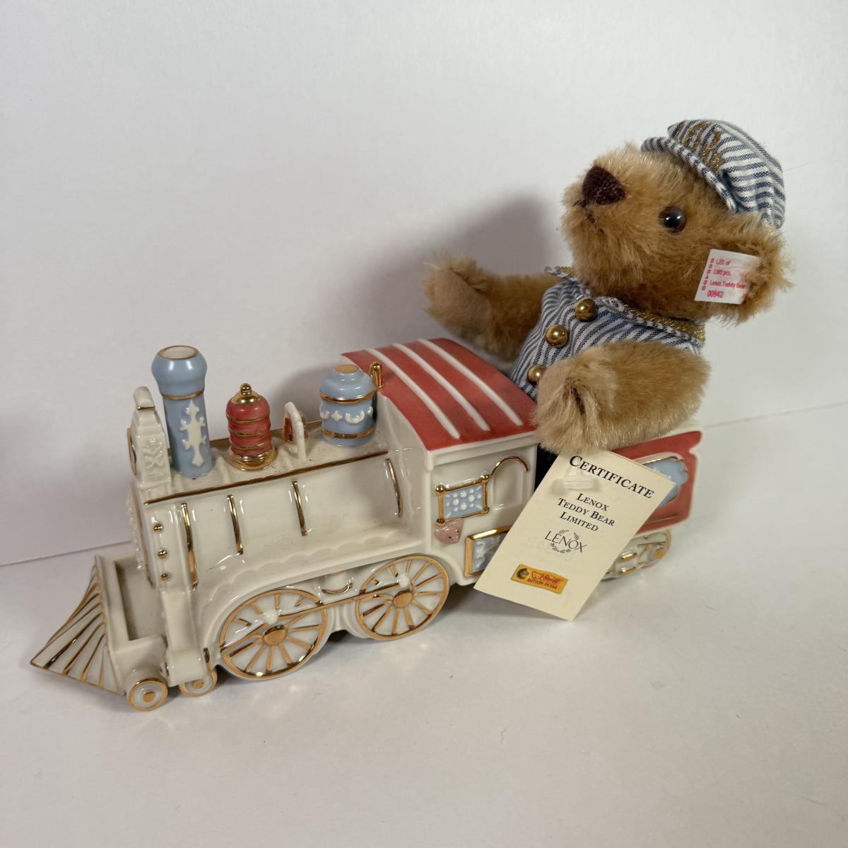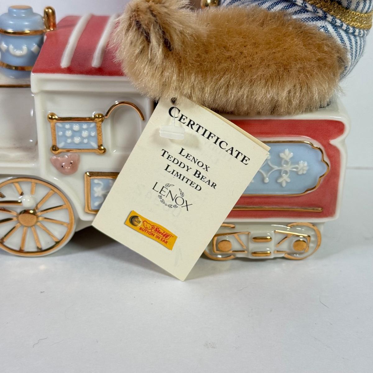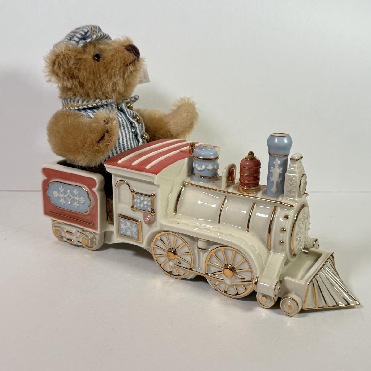 LOT 150L: Lenox Teddy Bear Limited Steiff Stuffed Conductor & China Train w/ Box & COA #1179/2002