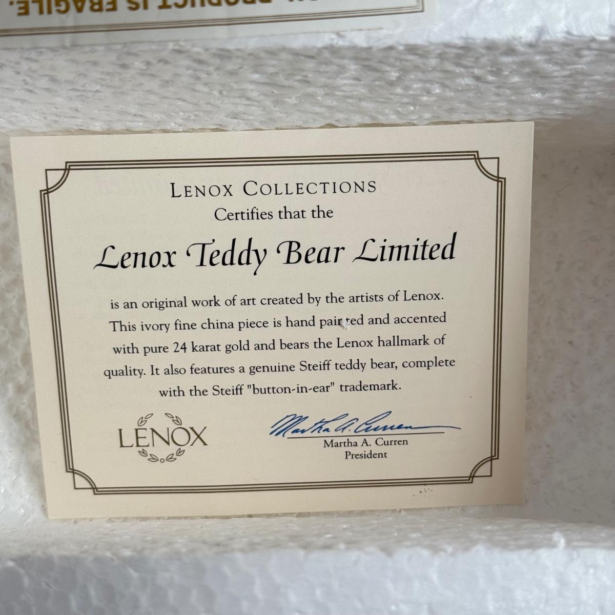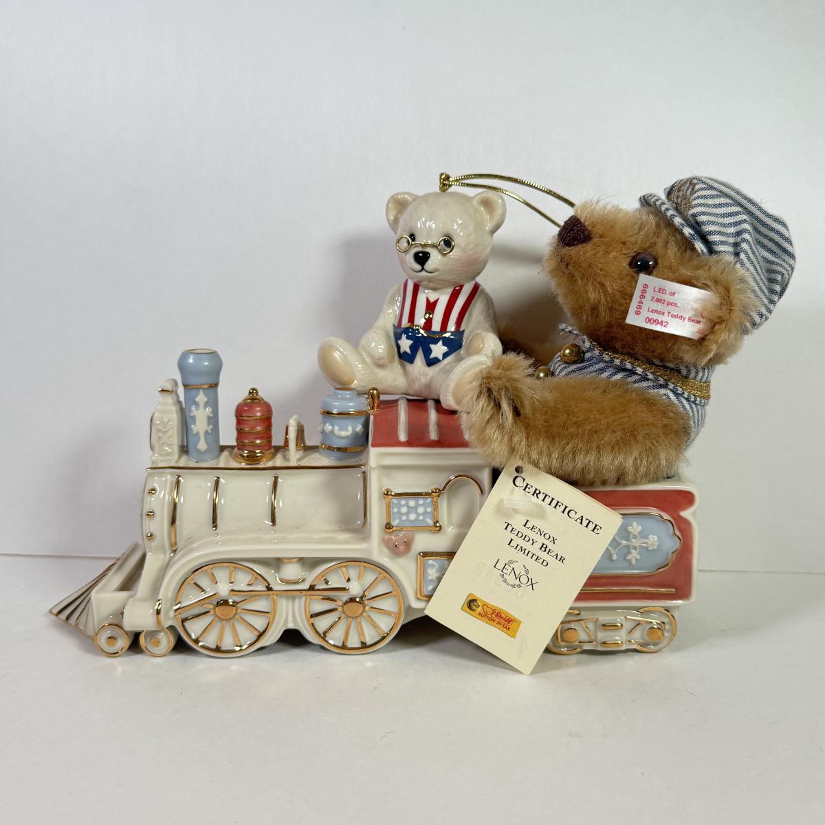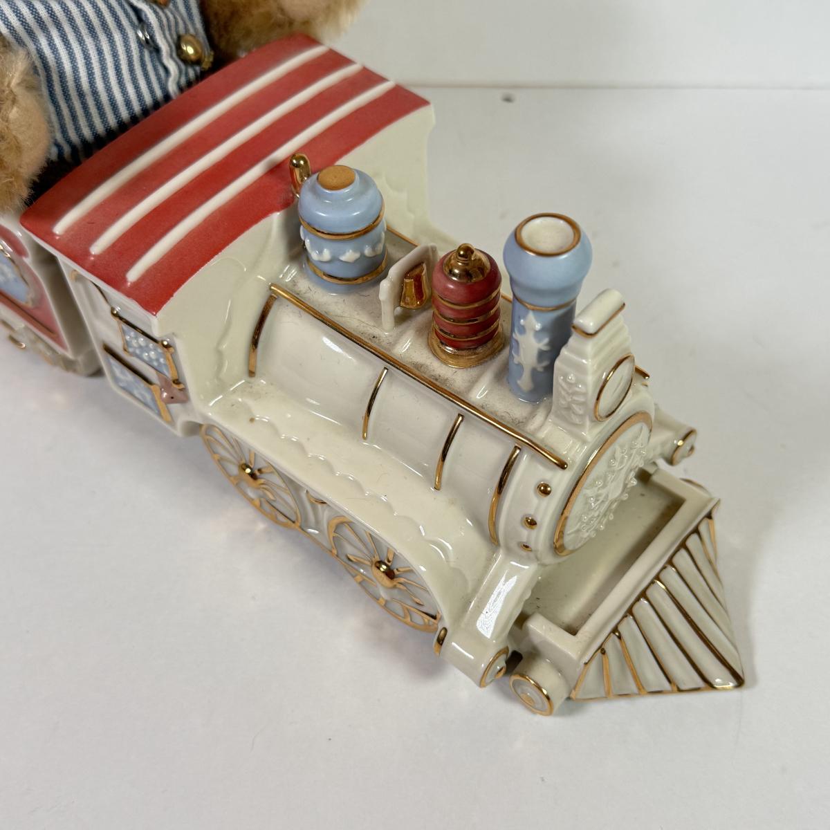LOT 150L: Lenox Teddy Bear Limited Steiff Stuffed Conductor & China Train w/ Box & COA #1179/2002