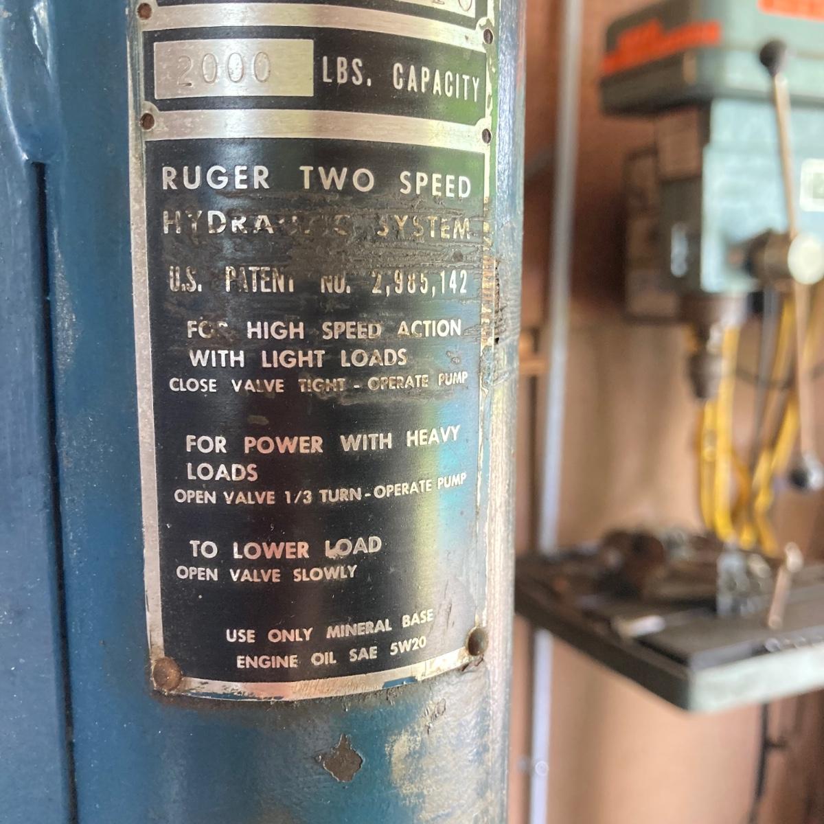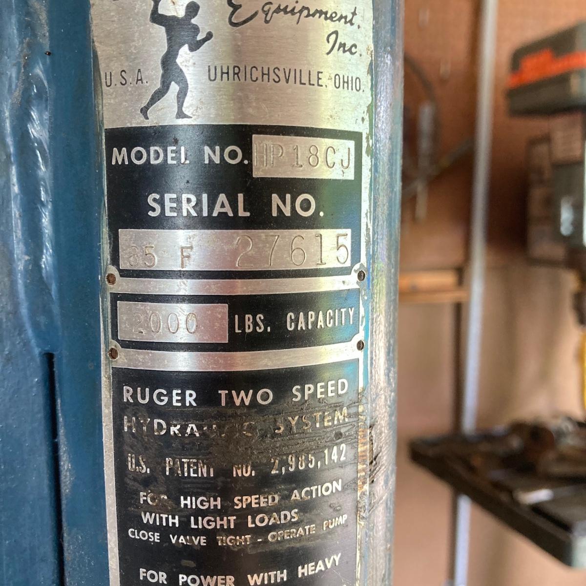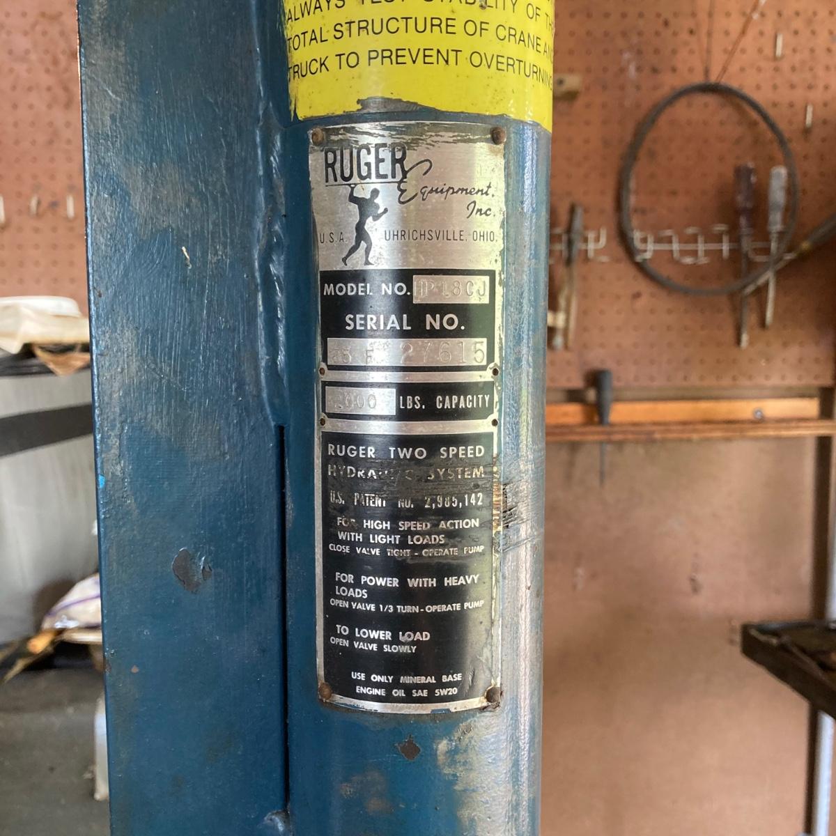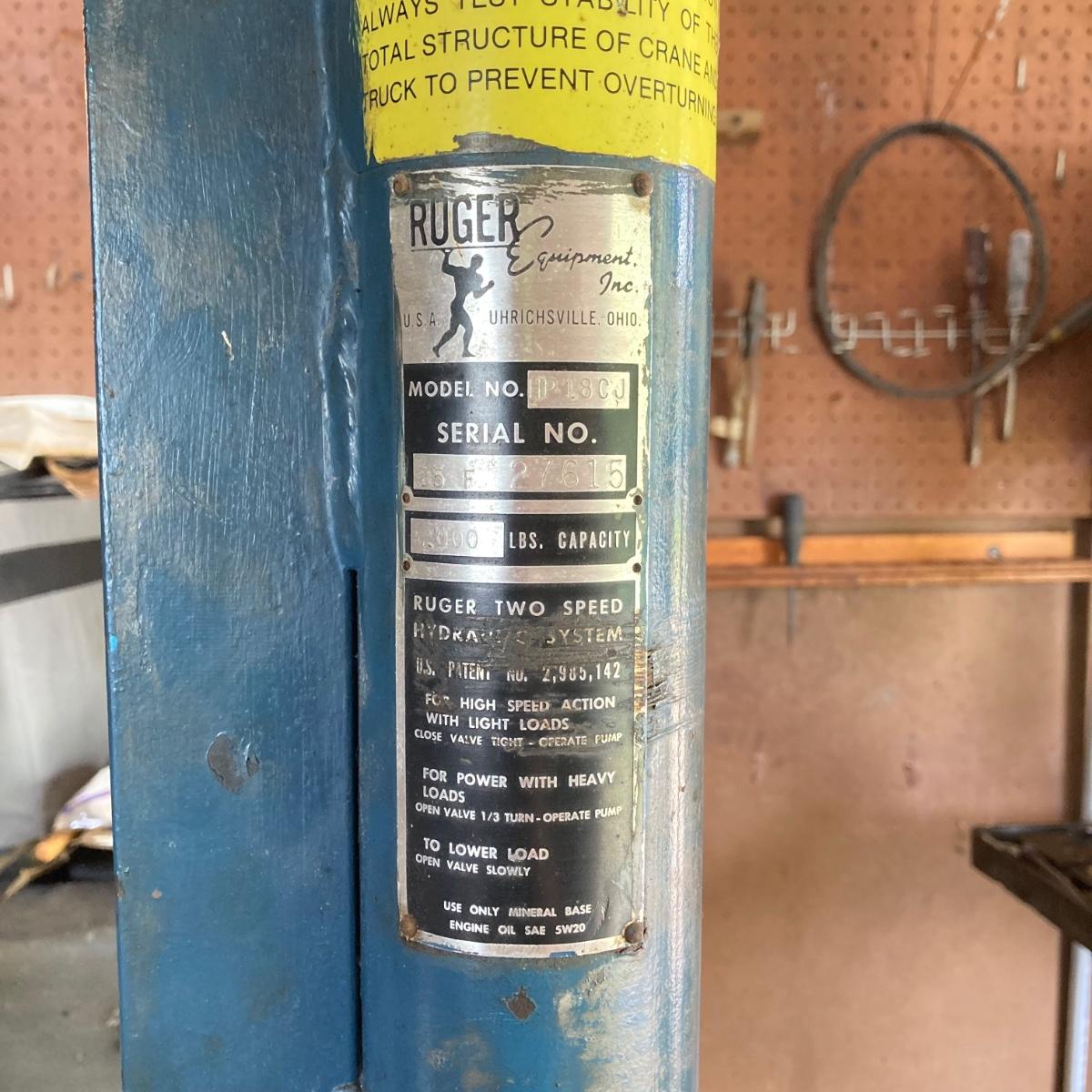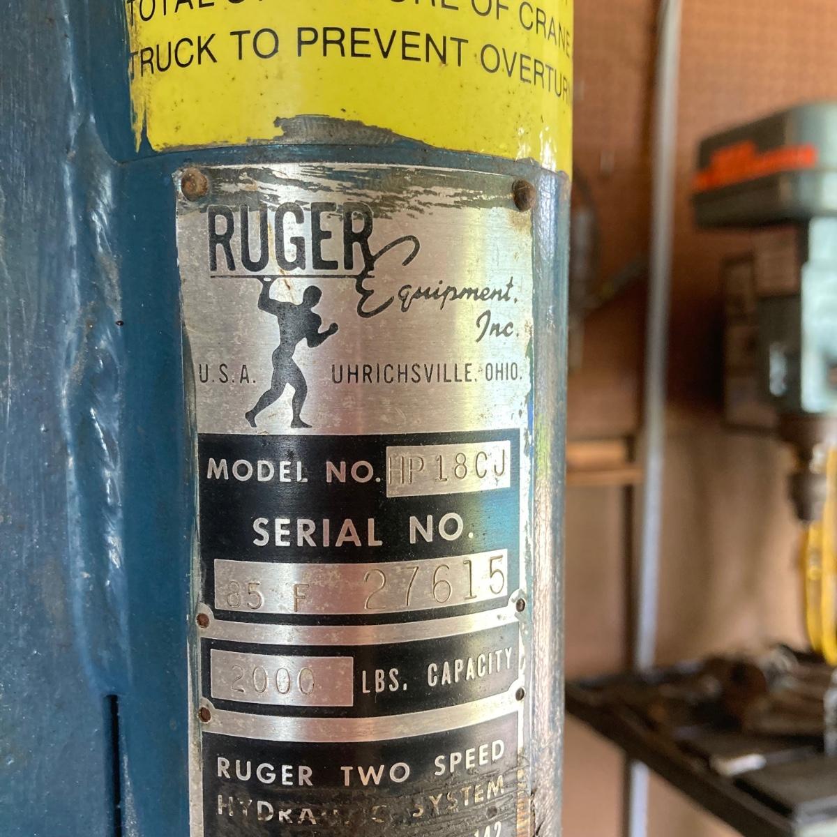 LOT 161G: Ruger HP18CJ Rolling Industrial Crane / Hoist - 2000 lb Capacity