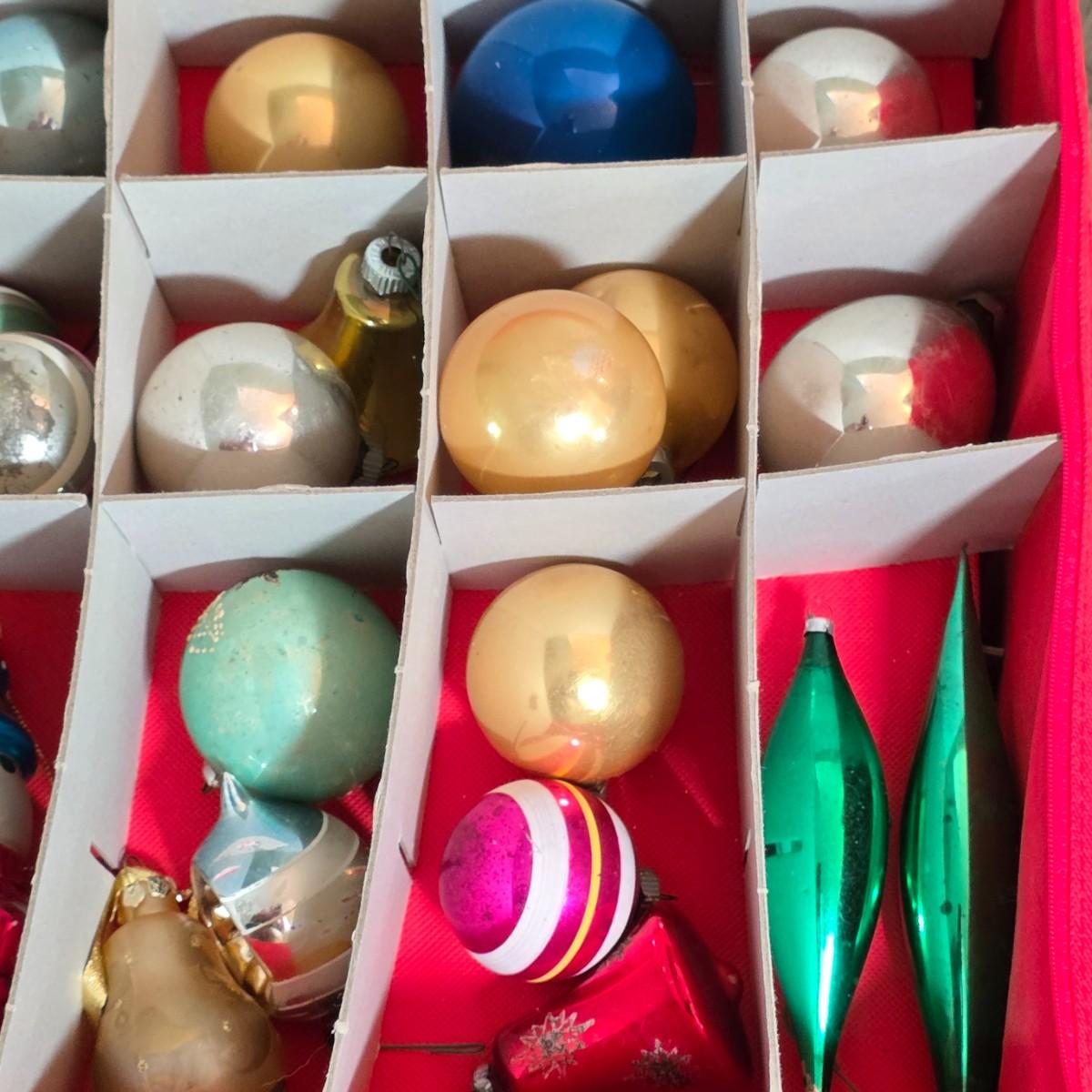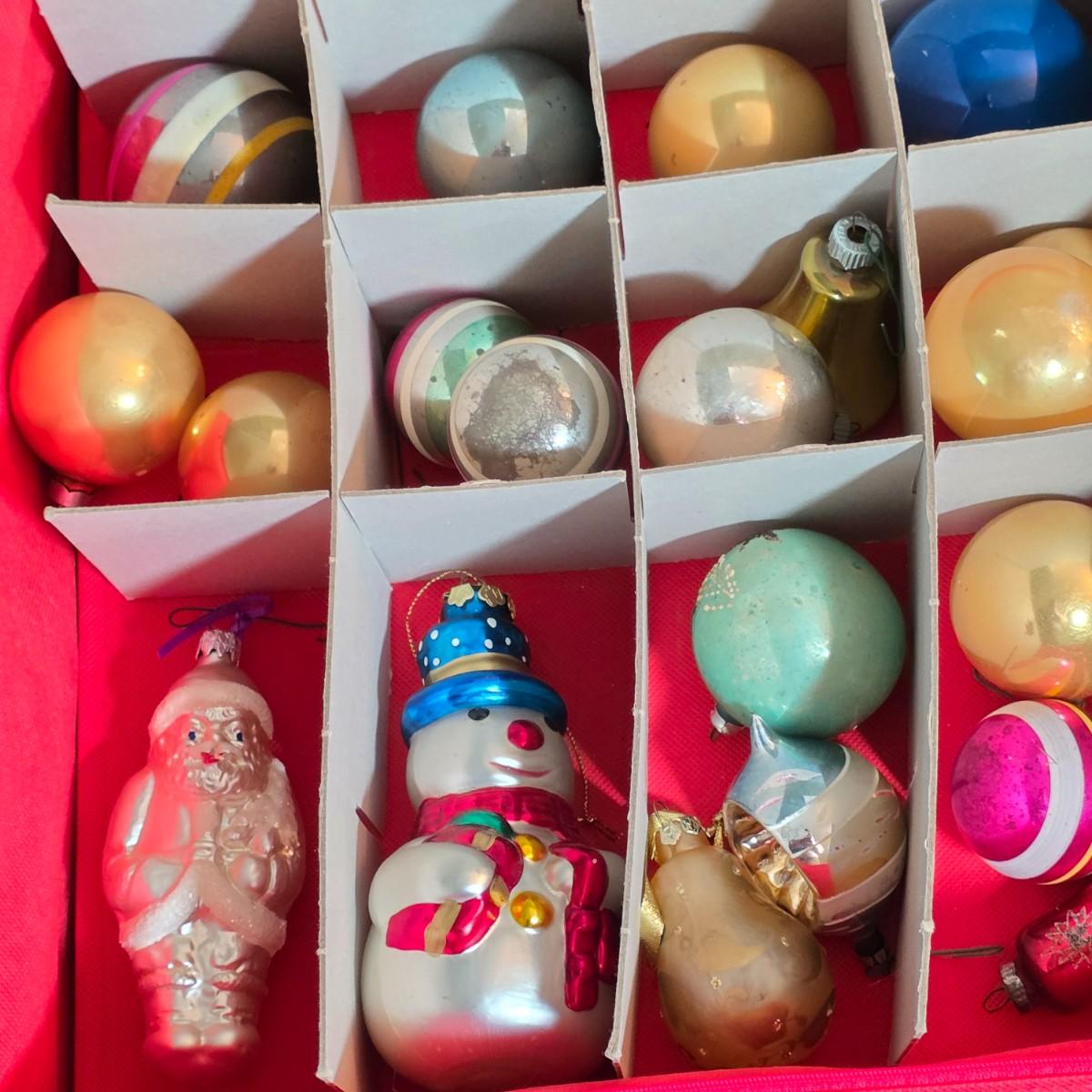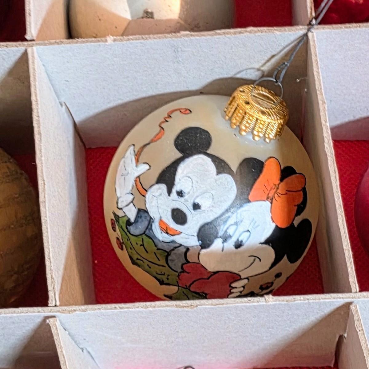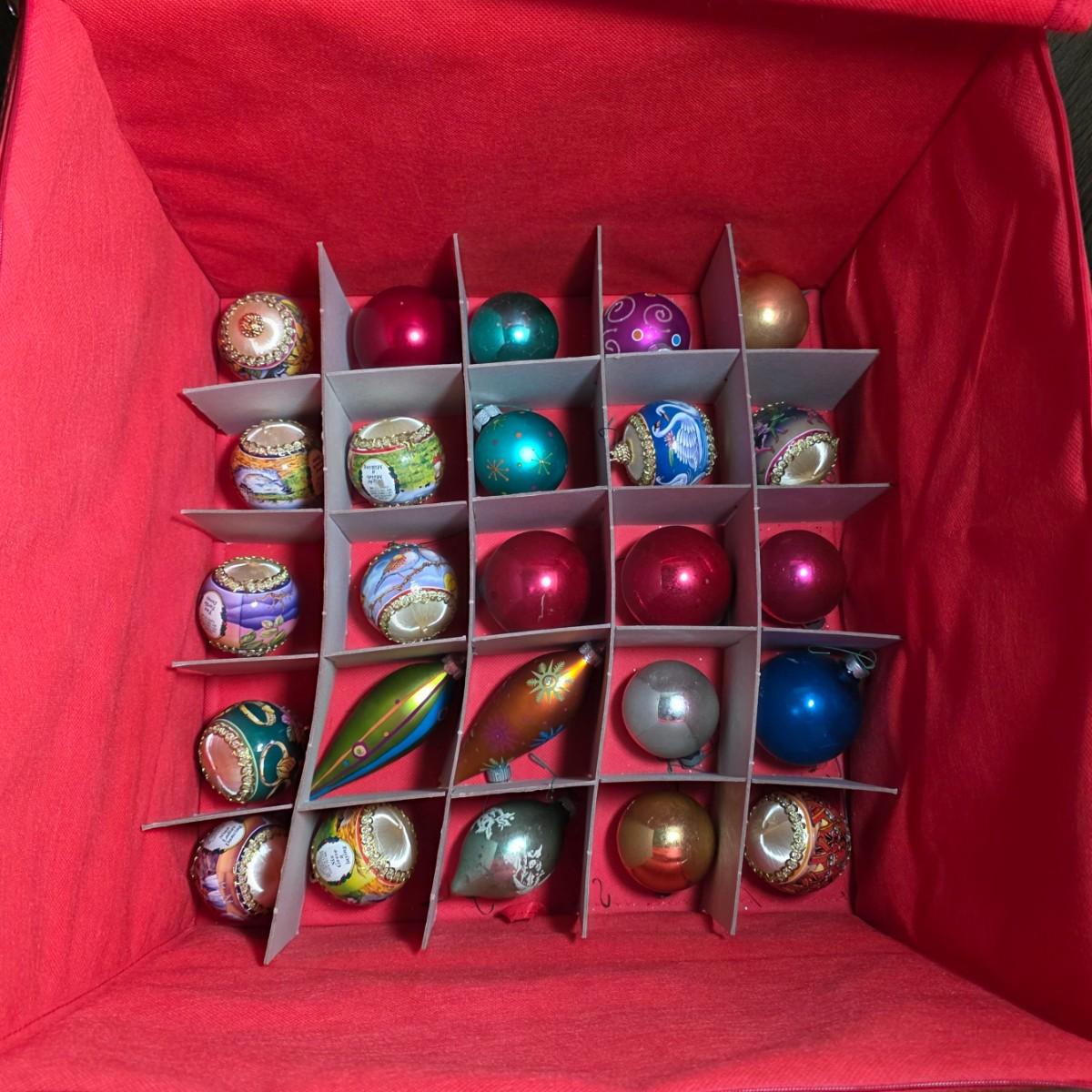 LOT 184D: Christmas Ornament Storage Tote, Filled With Beautiful Ornaments, Including Vintage Mickey/Minnie Christmas Ball