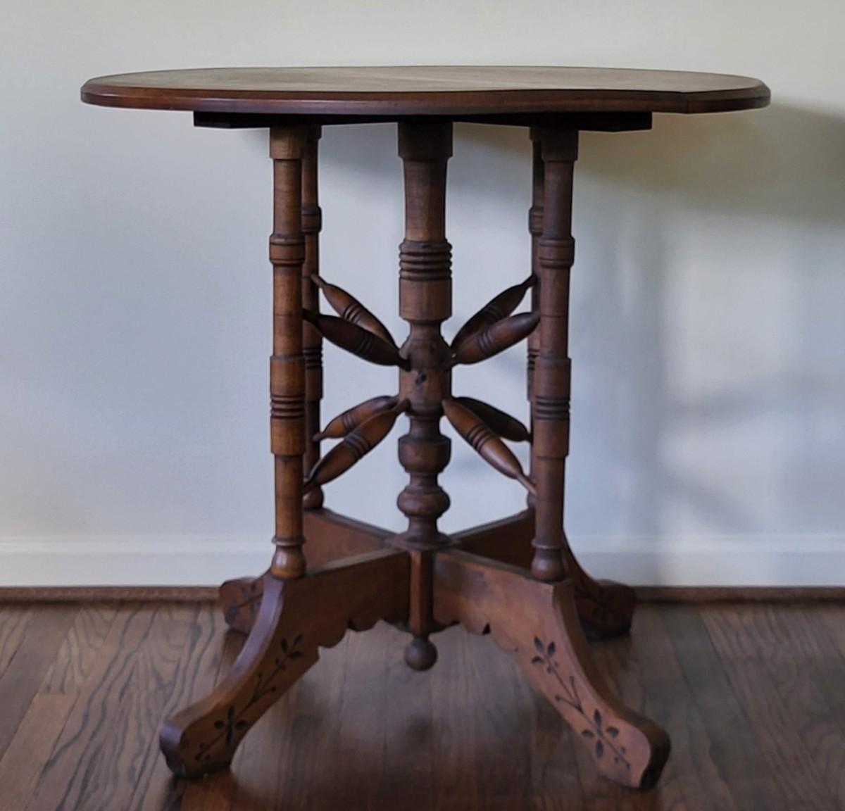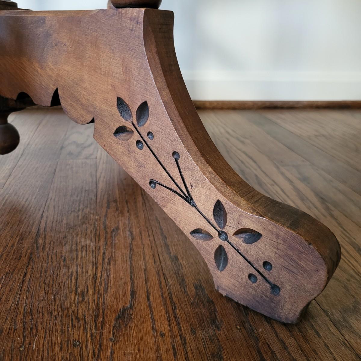 LOT 5L: 19th Century Antique Round Accent Table with Floral Carved Legs