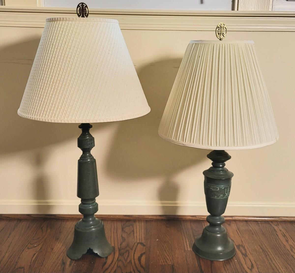 LOT 11L: Pair of Iron Table Lamps Featuring Styles of James Mont and Carl Sorenson