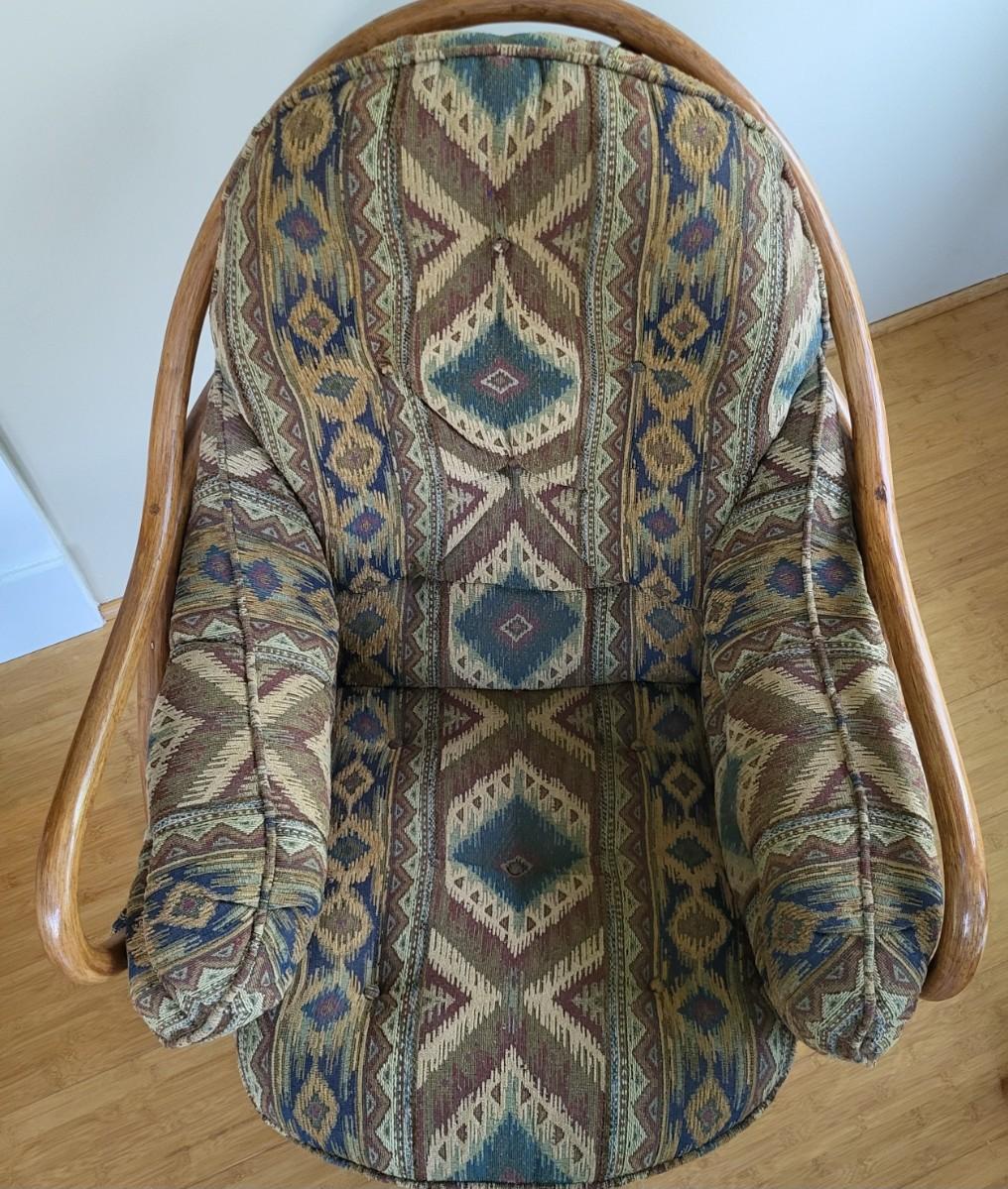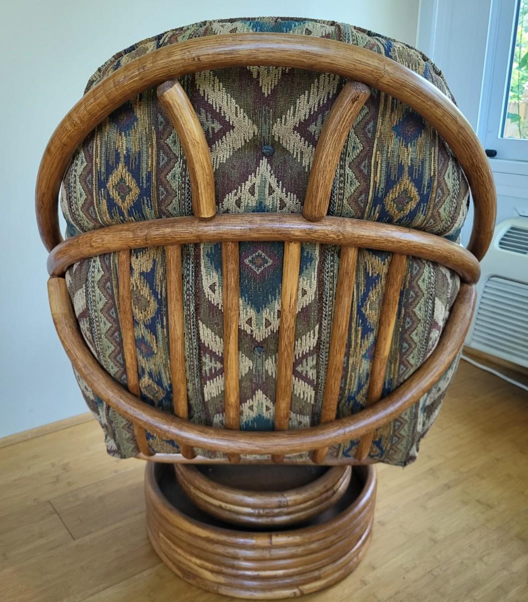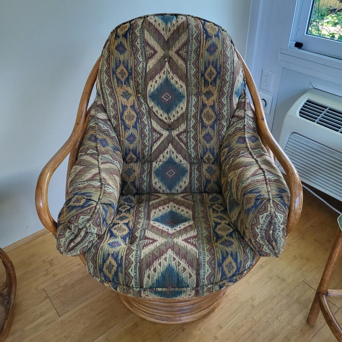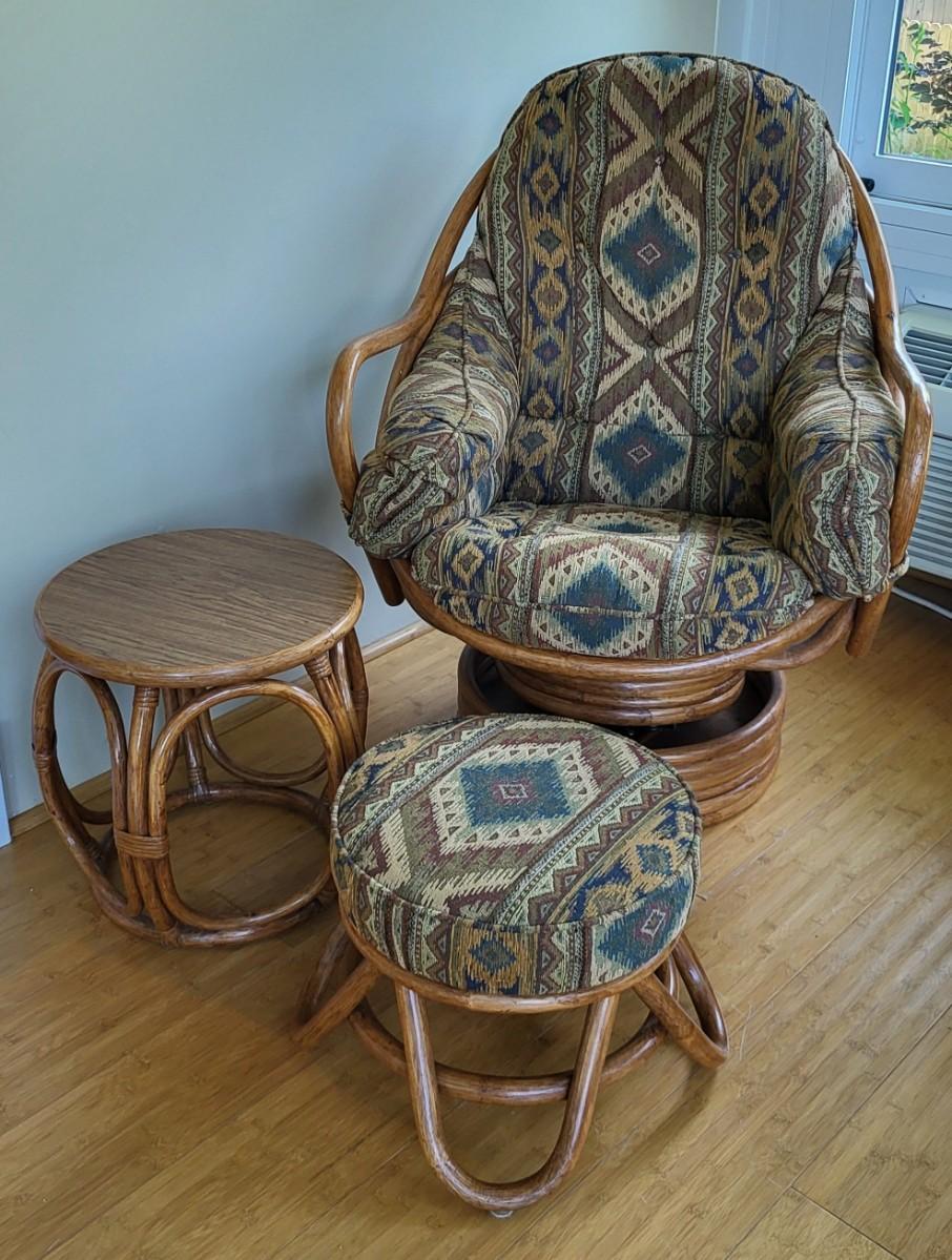 LOT 14P: Patio Swivel Cushion Chair with Ottoman and Wicker Table
