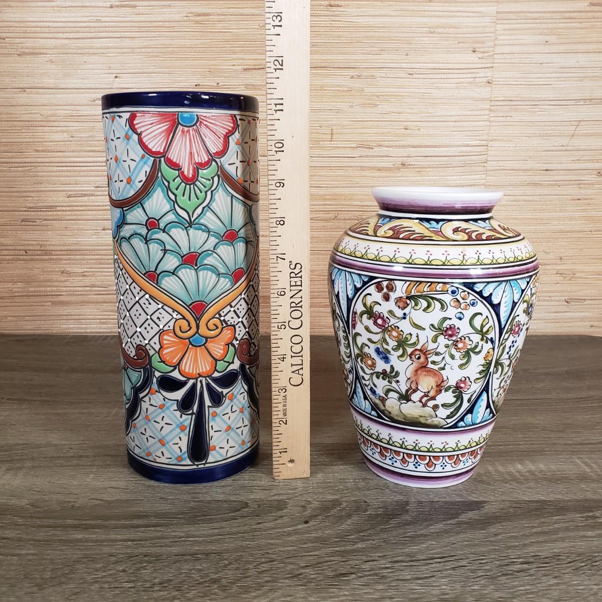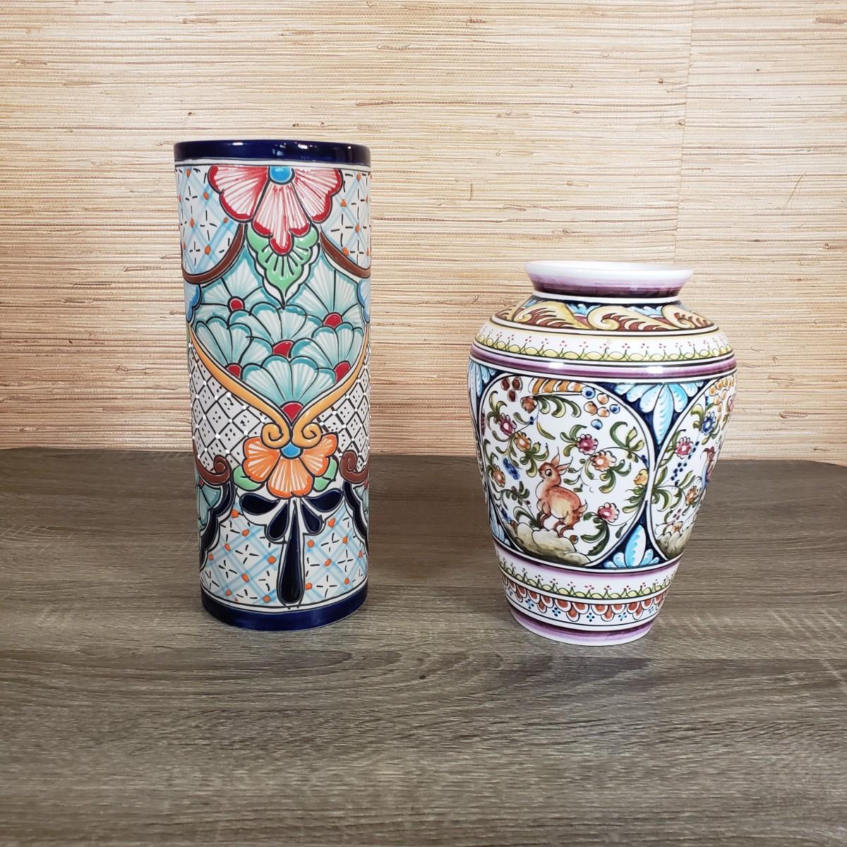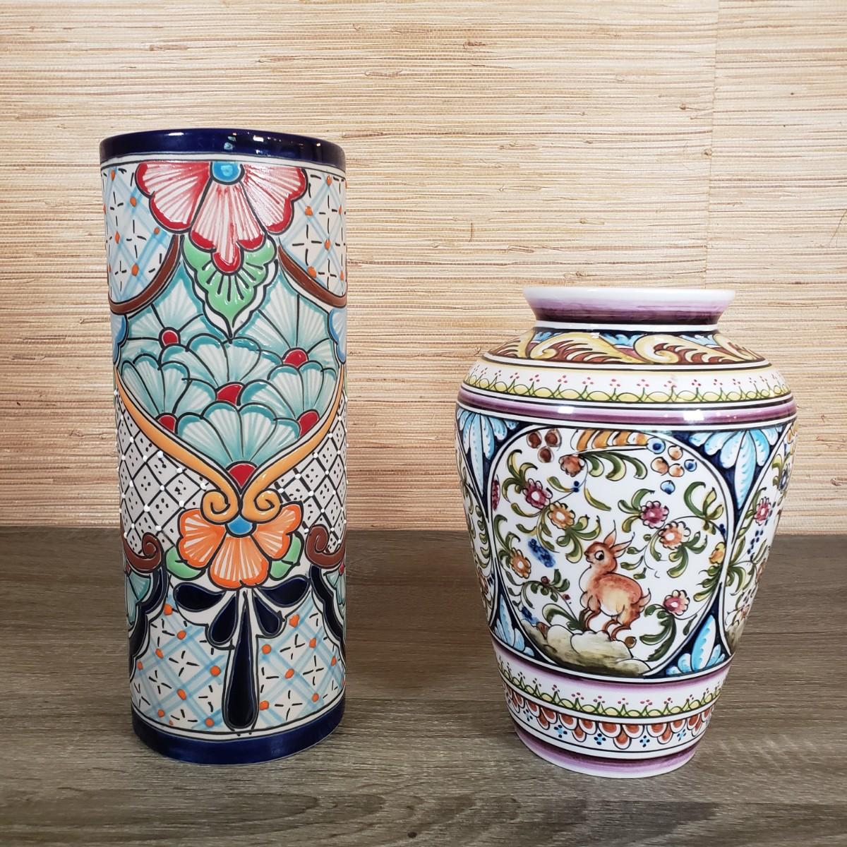 LOT 21F: Hand Painted Ceramic Vases; Portugal and Talavera Style Mexico