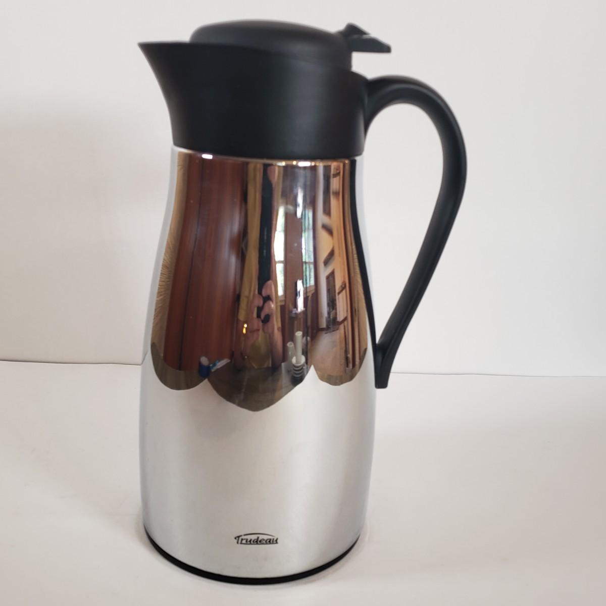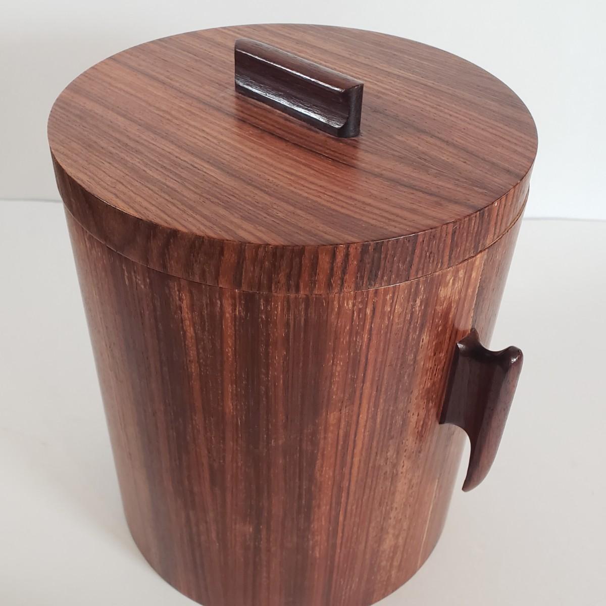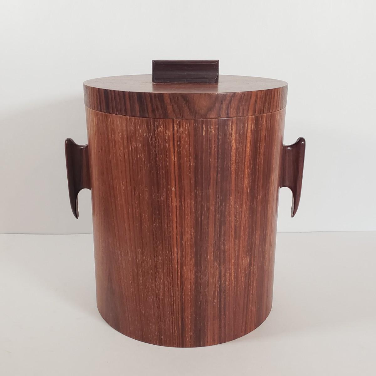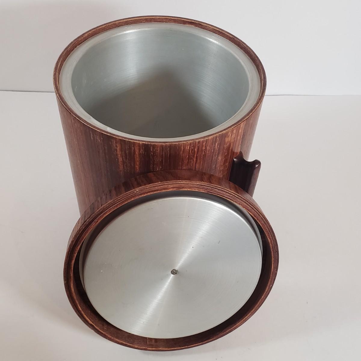LOT 28F: Vintage Kitchen Host Assortment; MCM Rosewood Ice Bucket, Trudeau Chrome Carafe, Porcelain Espresso Cups