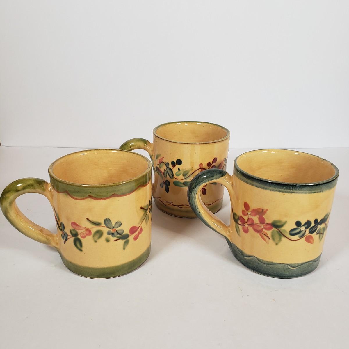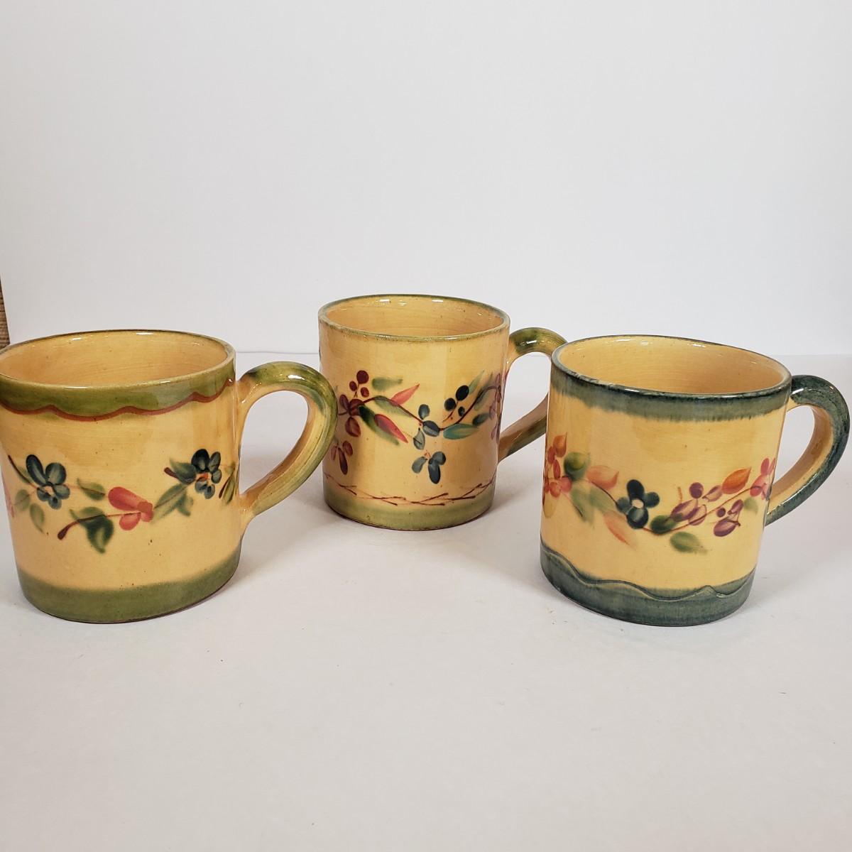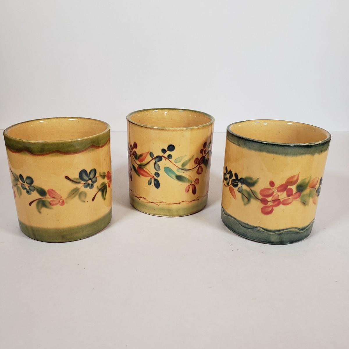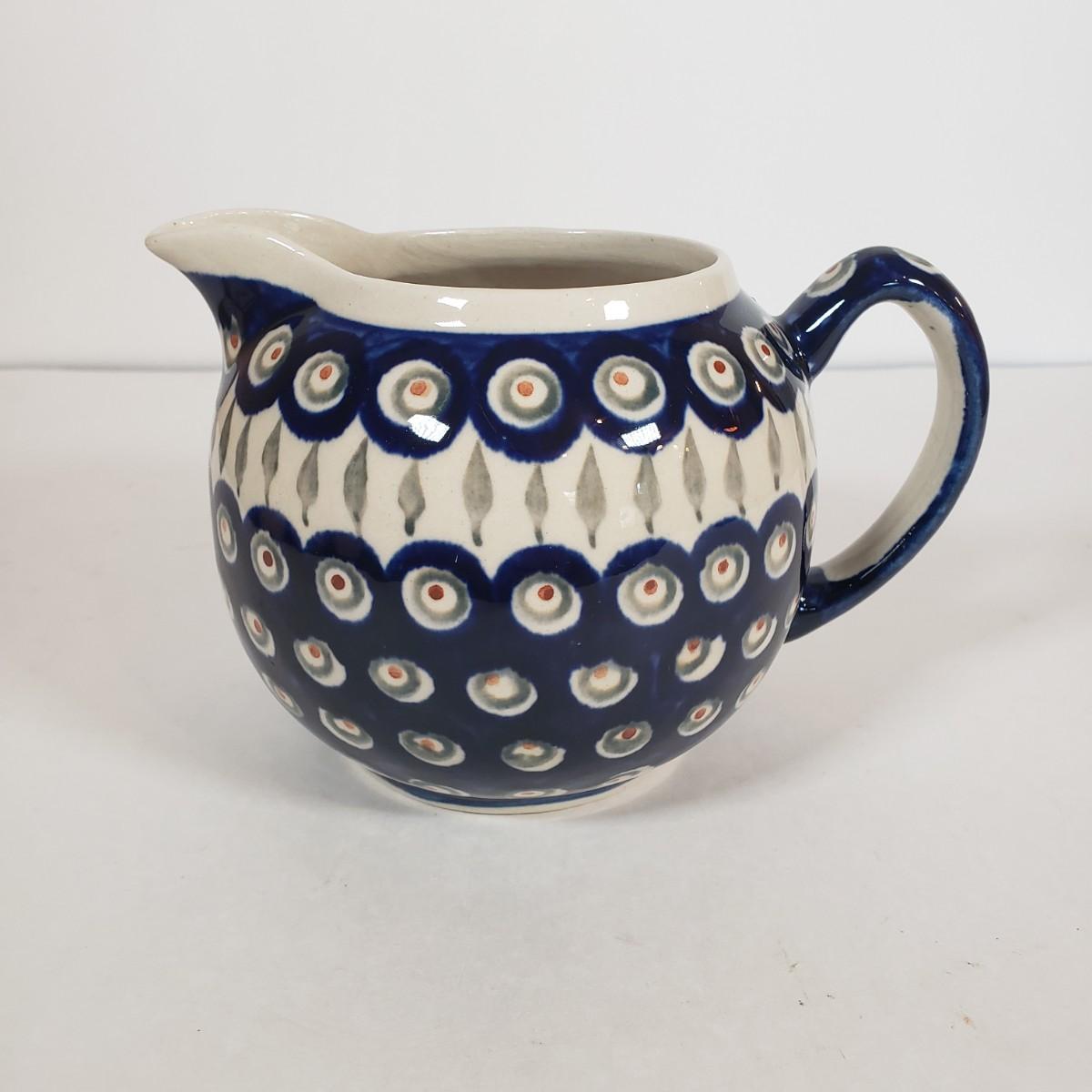 LOT 30F: Polish Pottery Pitcher and Redware Clay Floral Mug Set