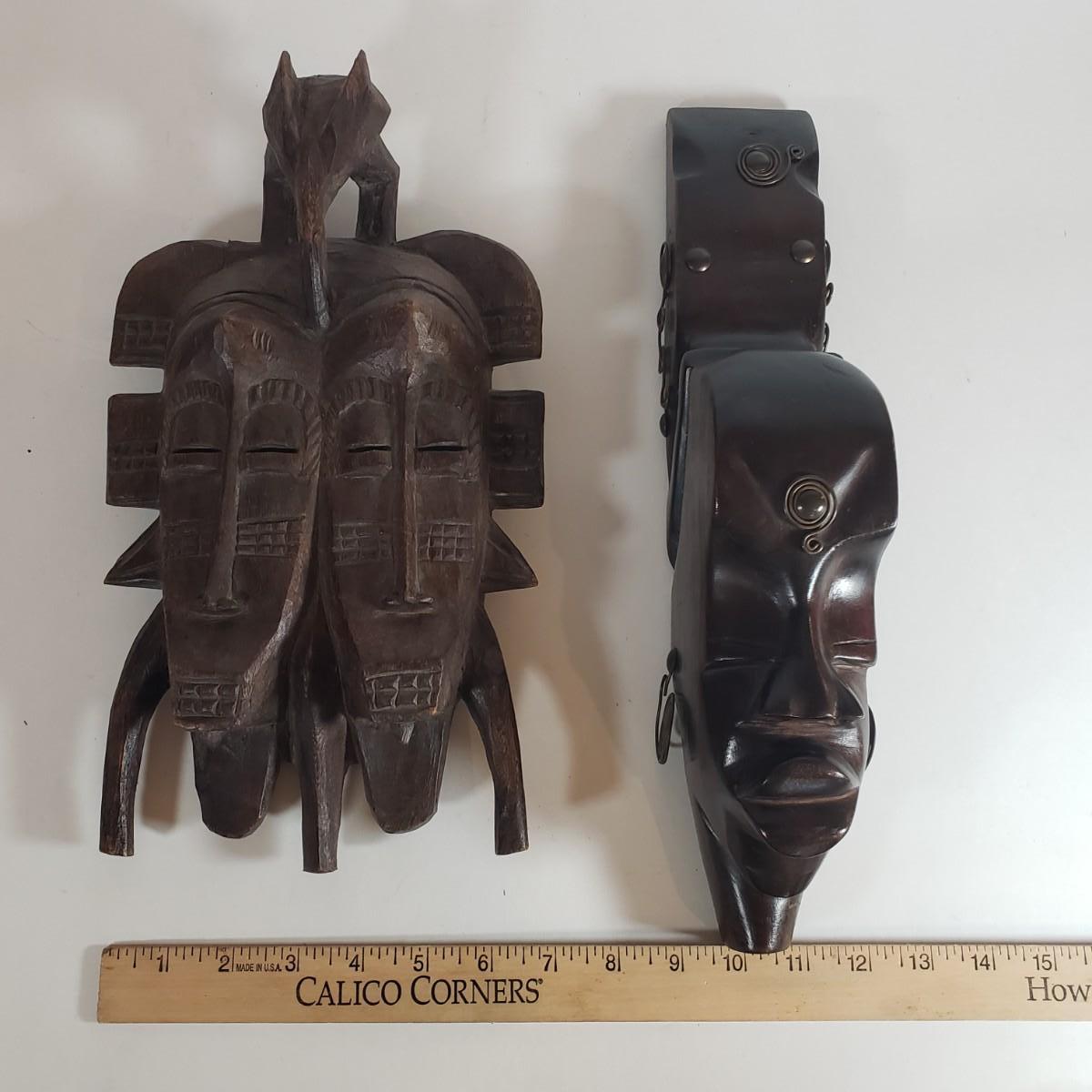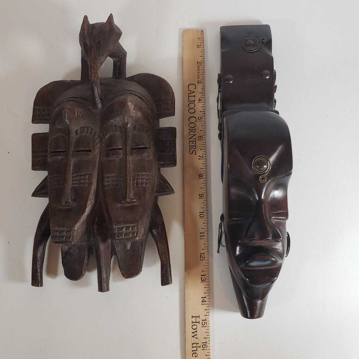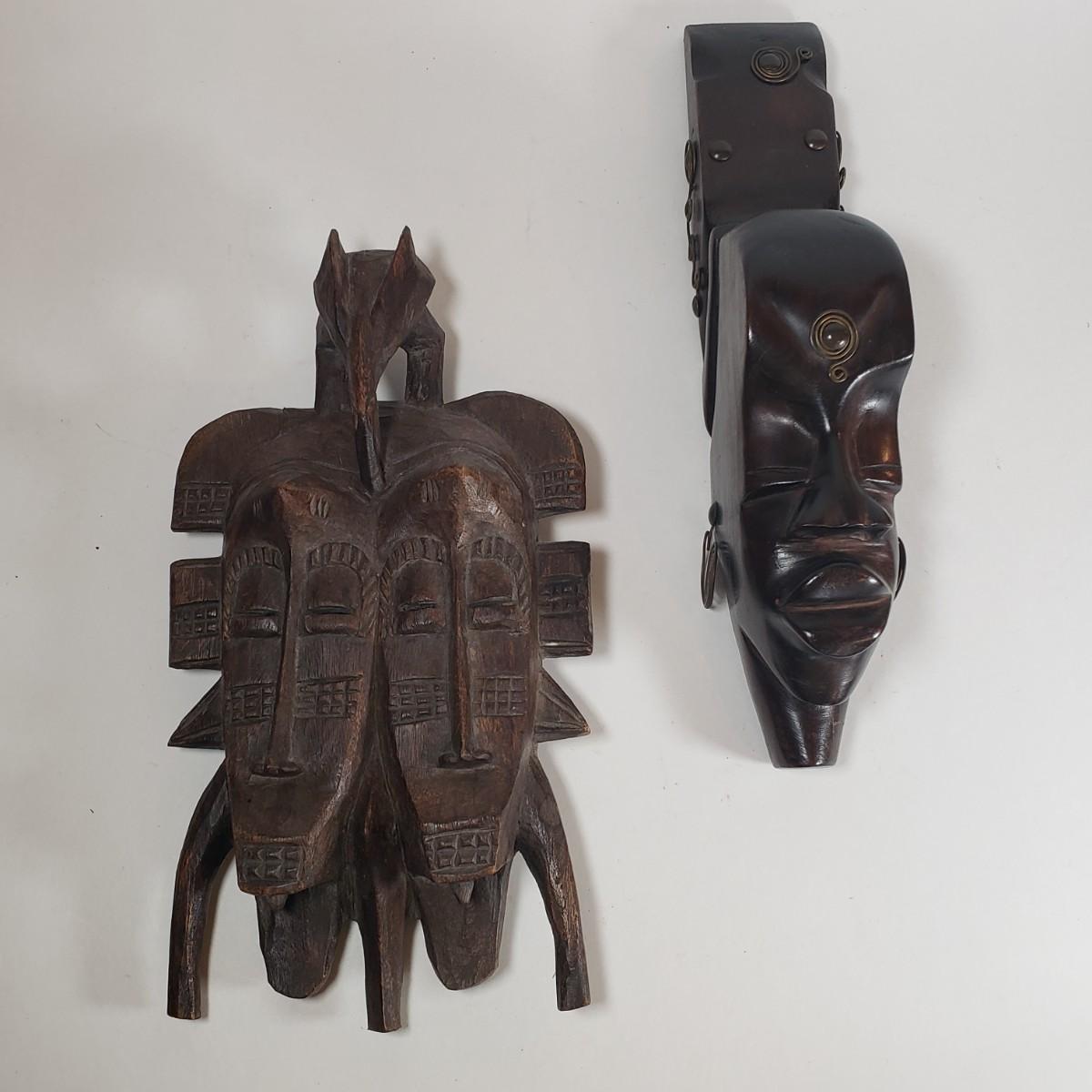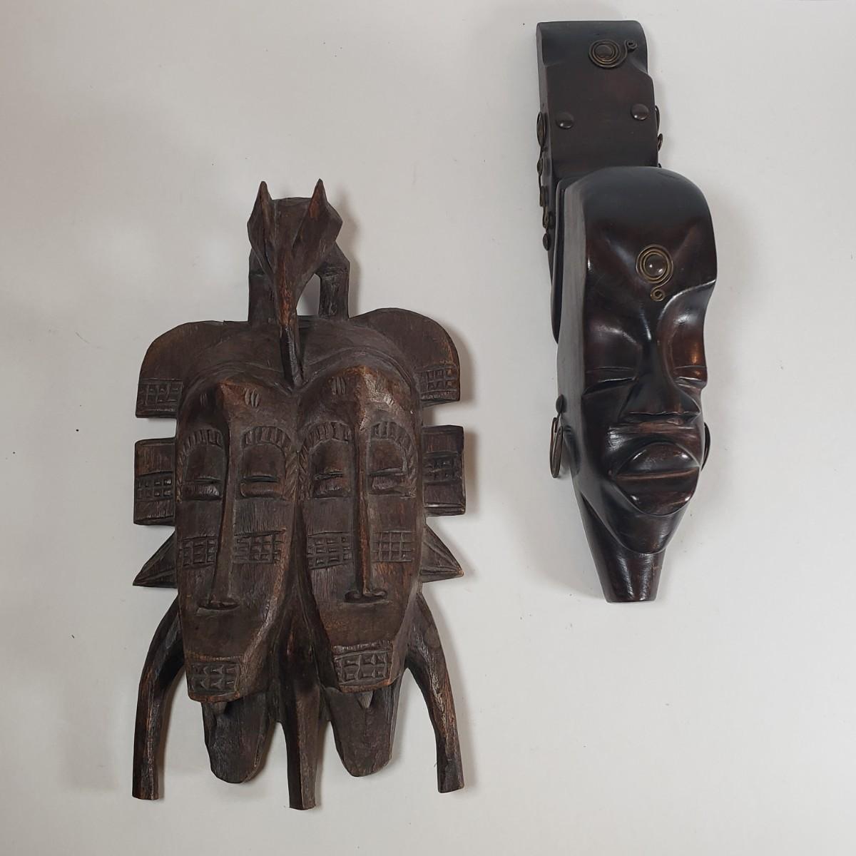 LOT 37F: Double Faced African Mask and Mask with Coiled Brass Accents