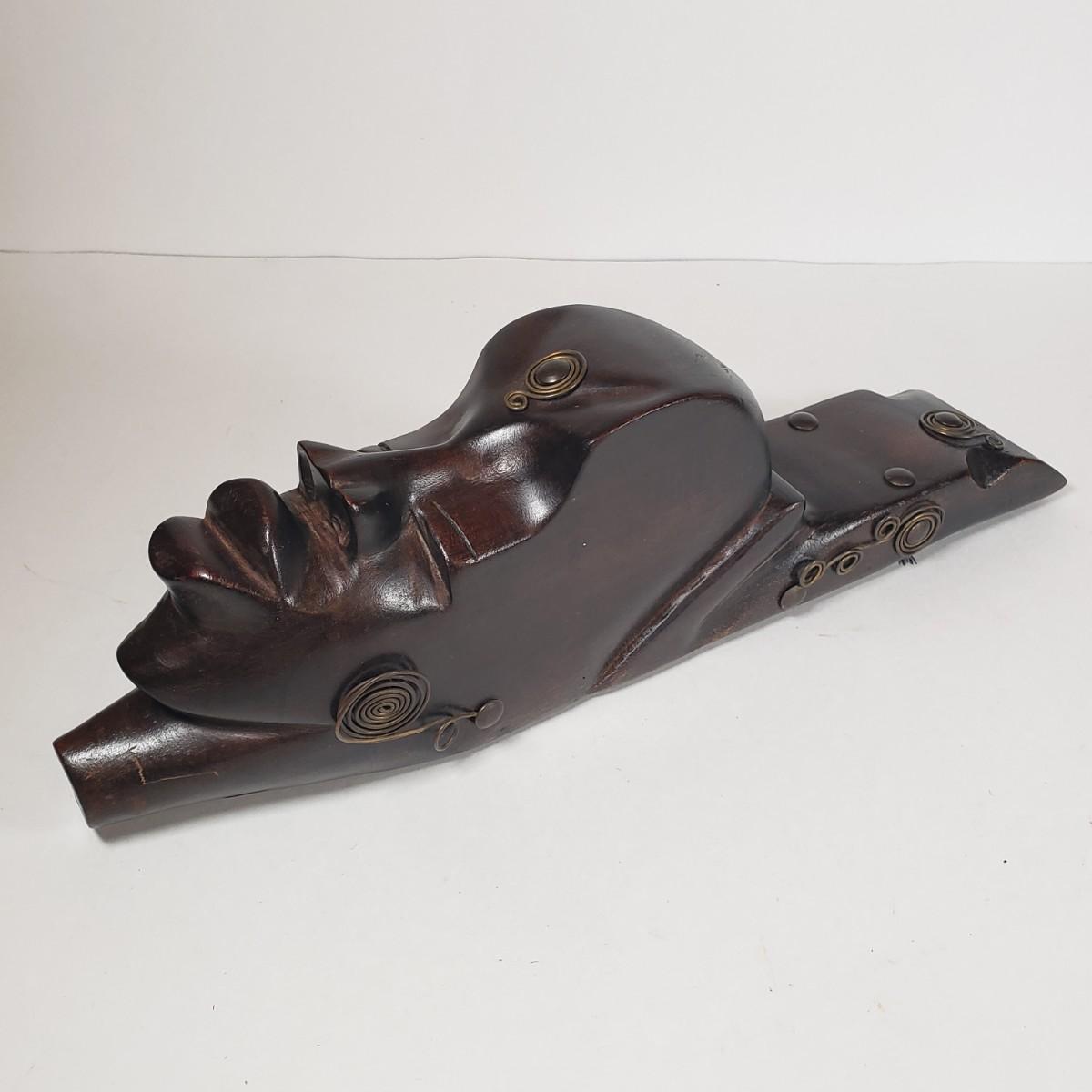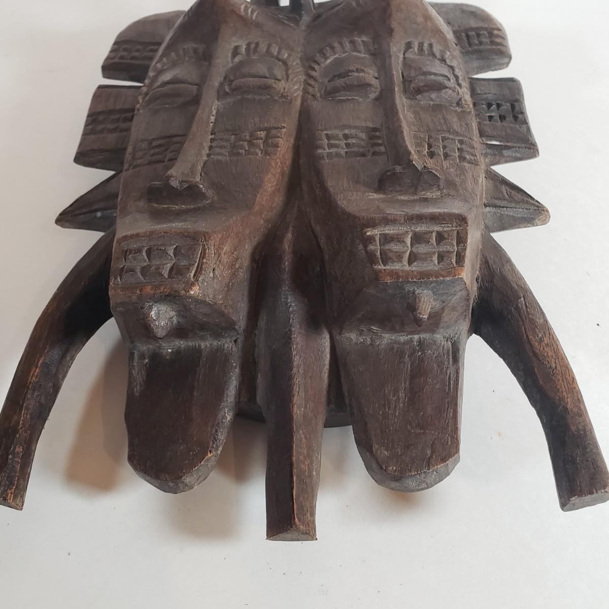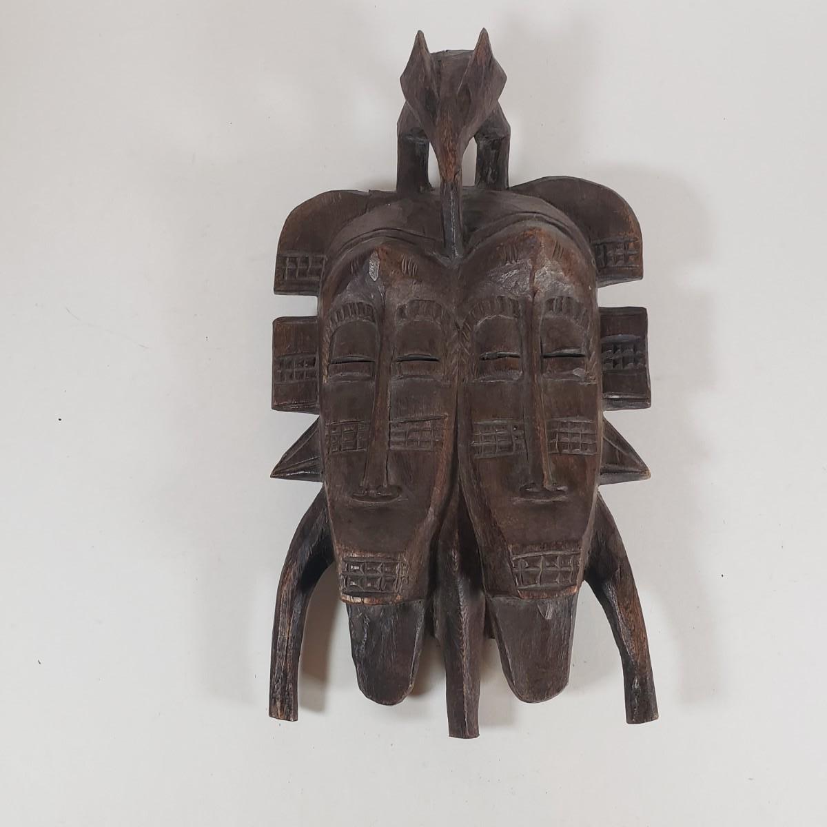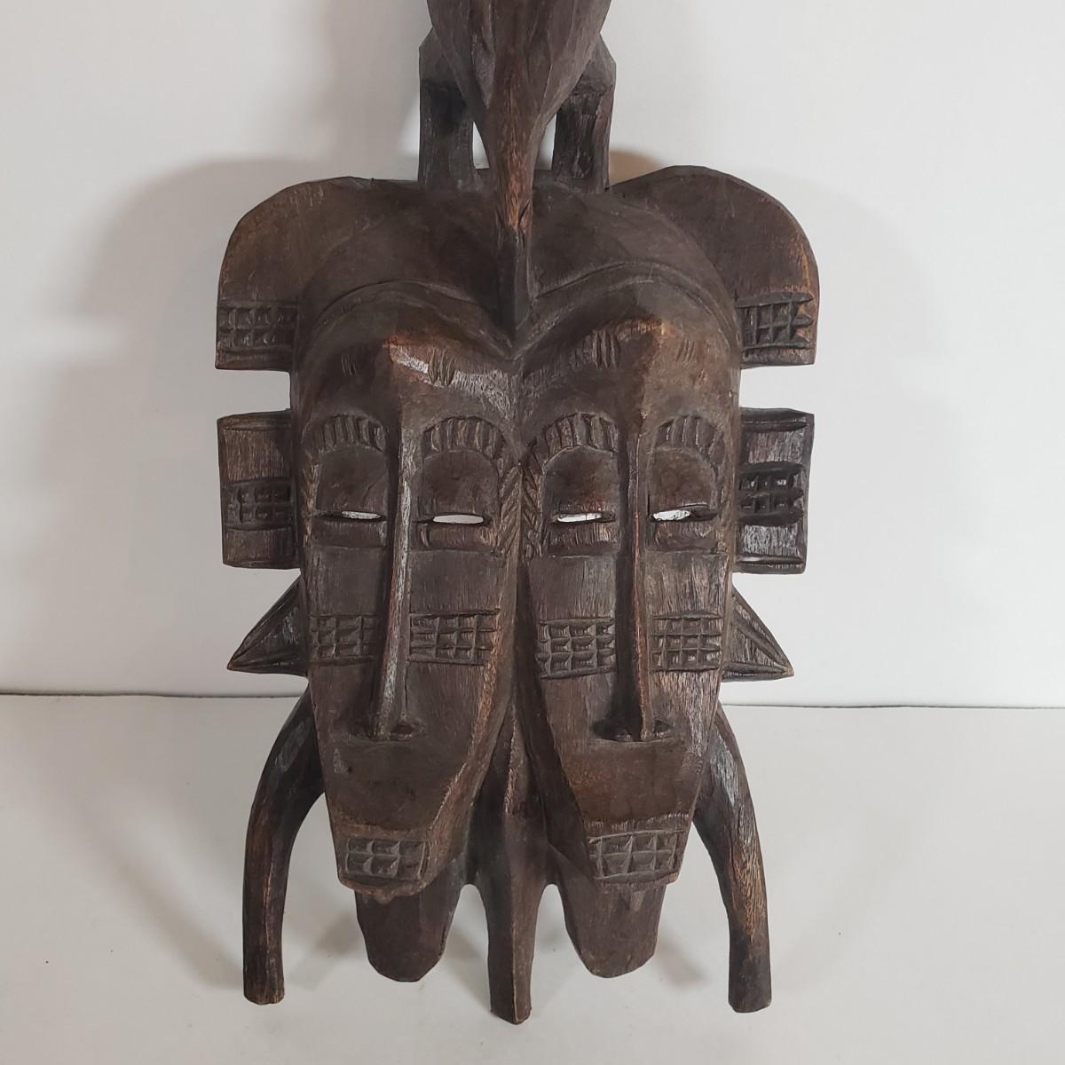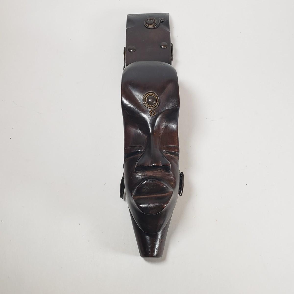 LOT 37F: Double Faced African Mask and Mask with Coiled Brass Accents