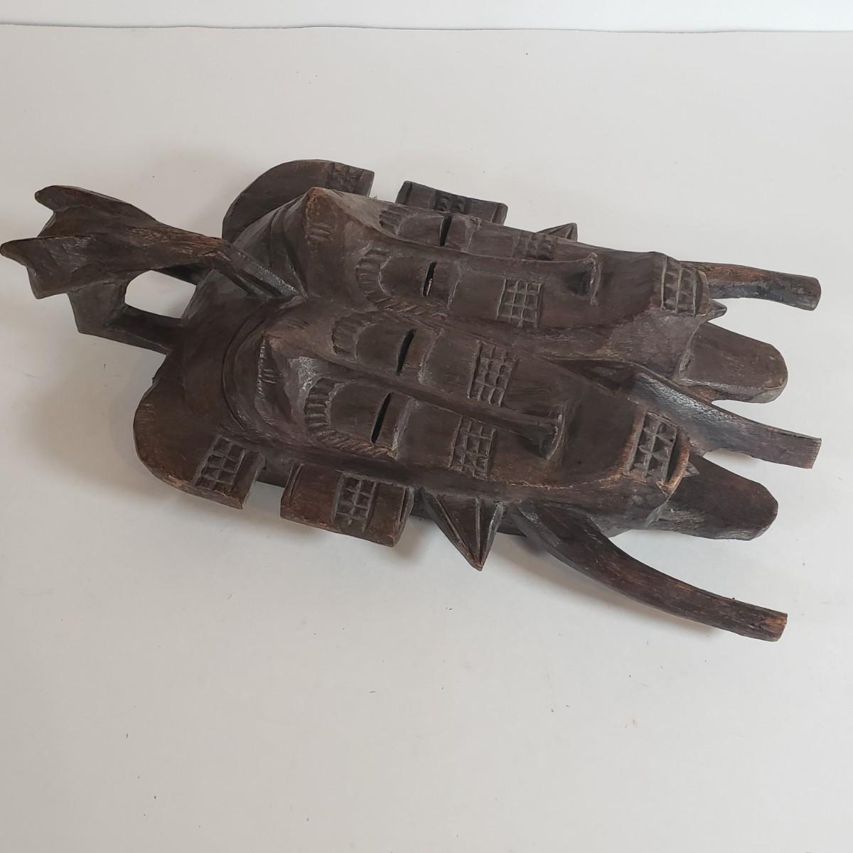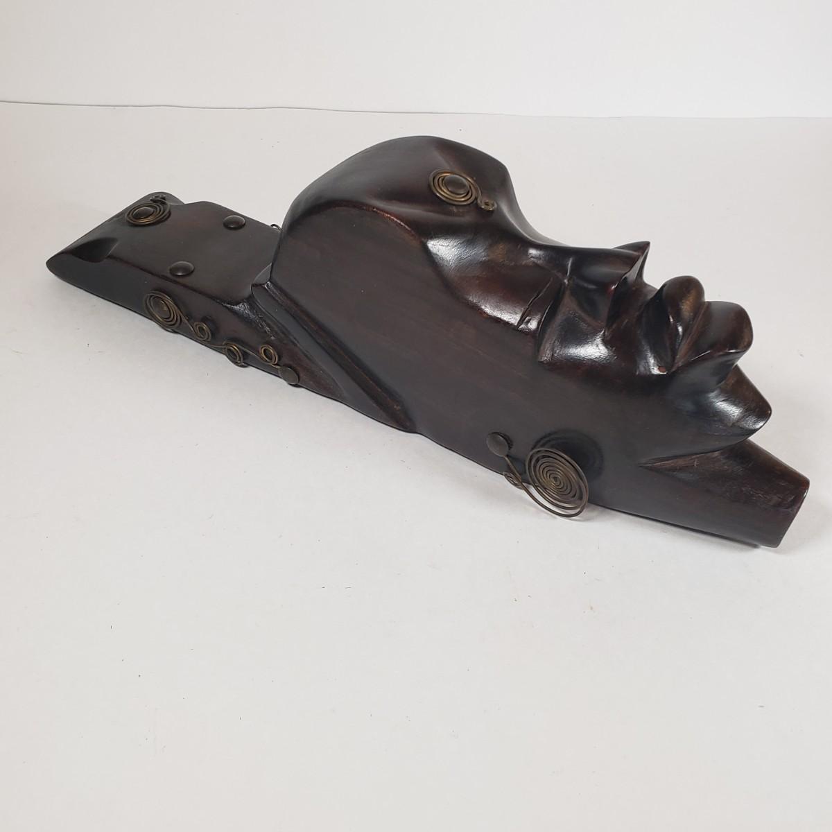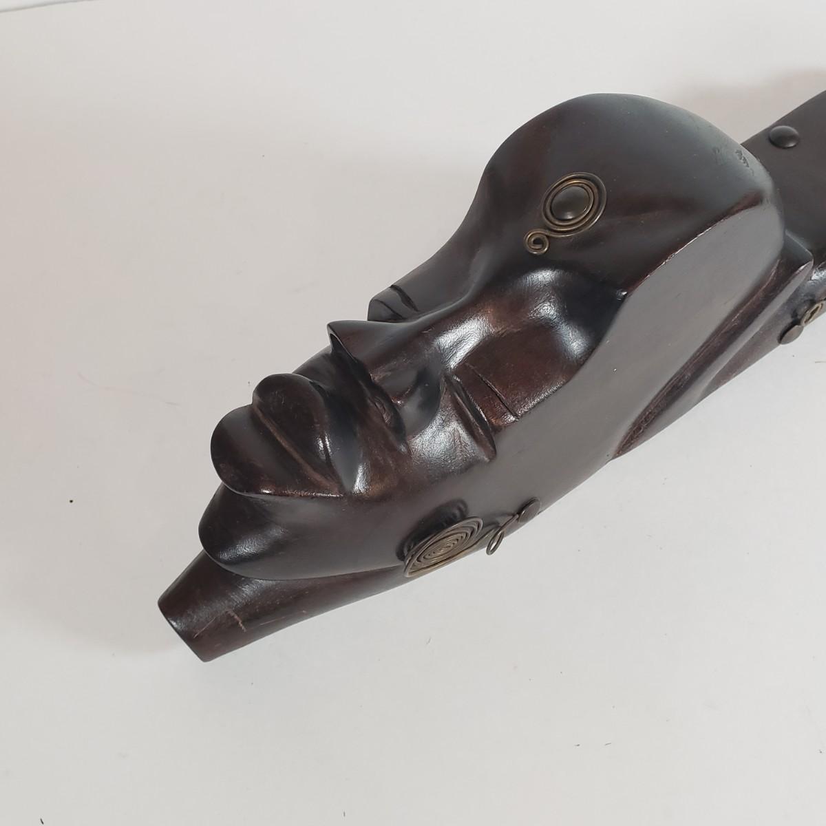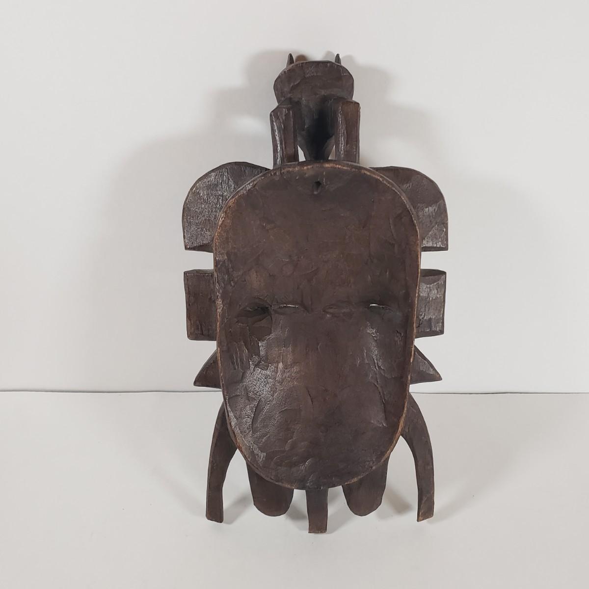 LOT 37F: Double Faced African Mask and Mask with Coiled Brass Accents