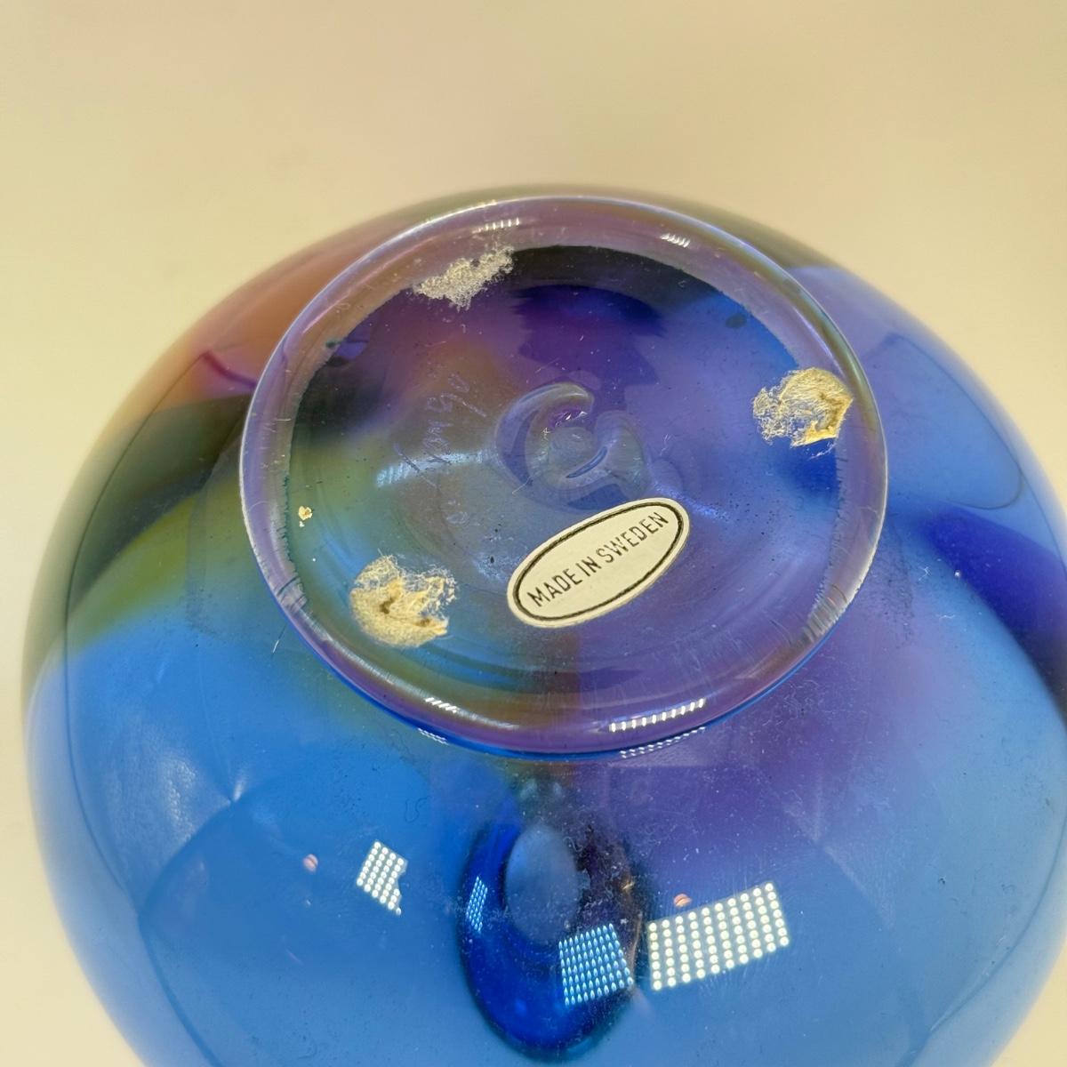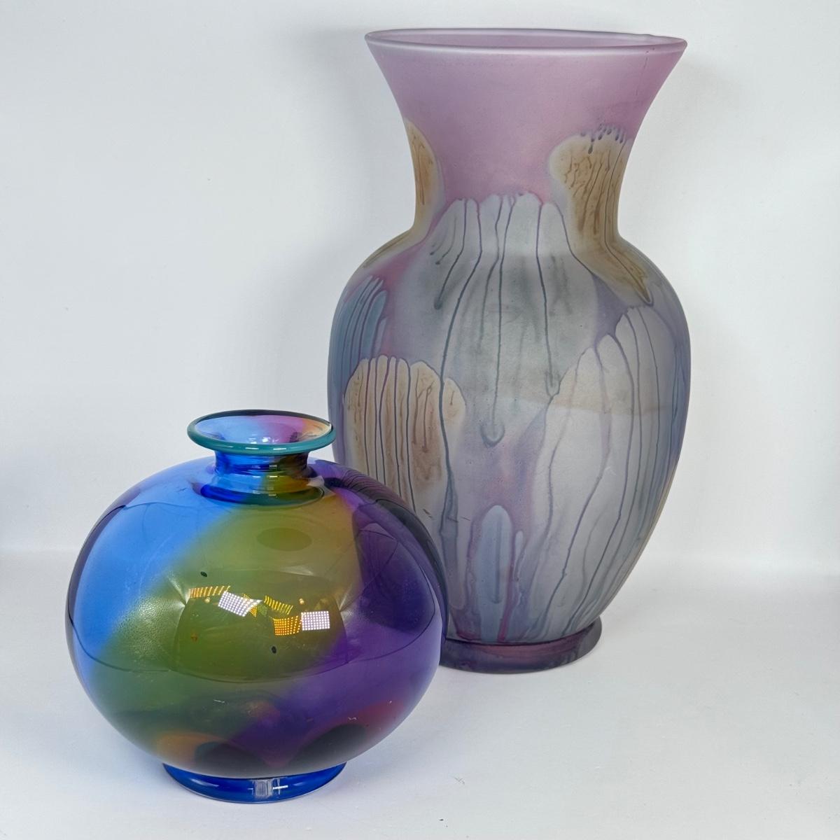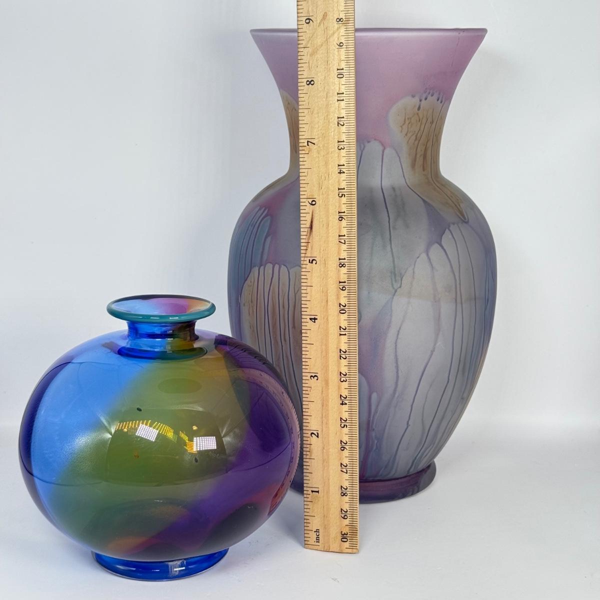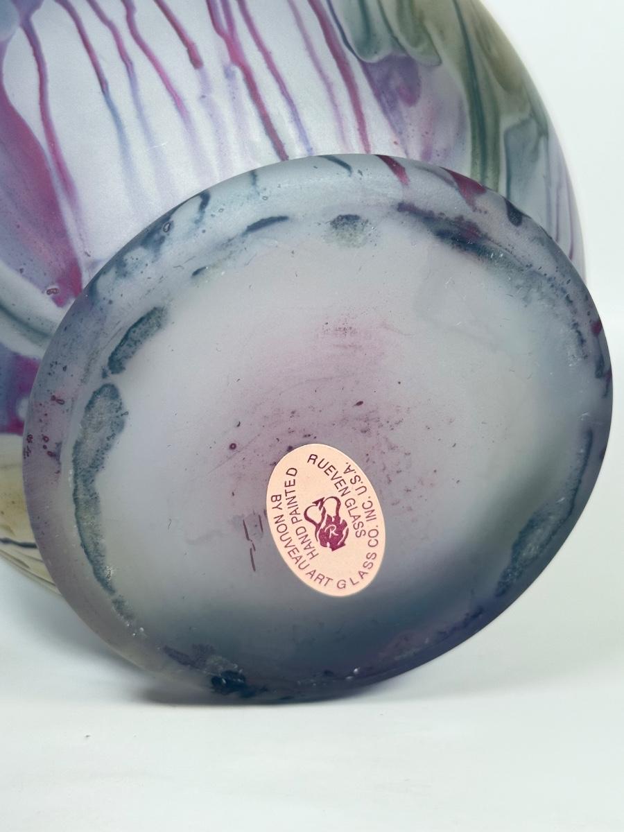 LOT 45F: Rueben Glass Vase Hand Painted by Nouveau Art Glass Co & Blue Iridescent Sphere Vase