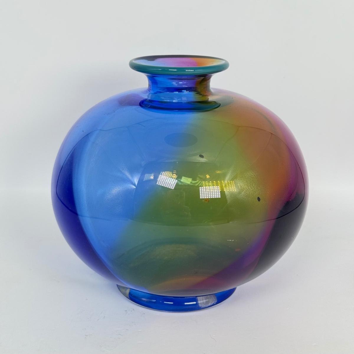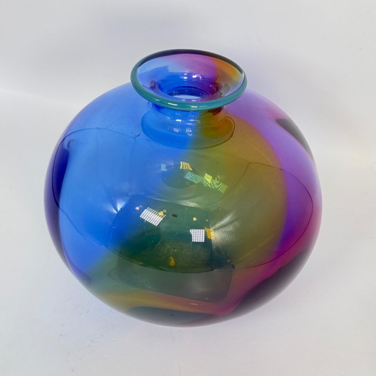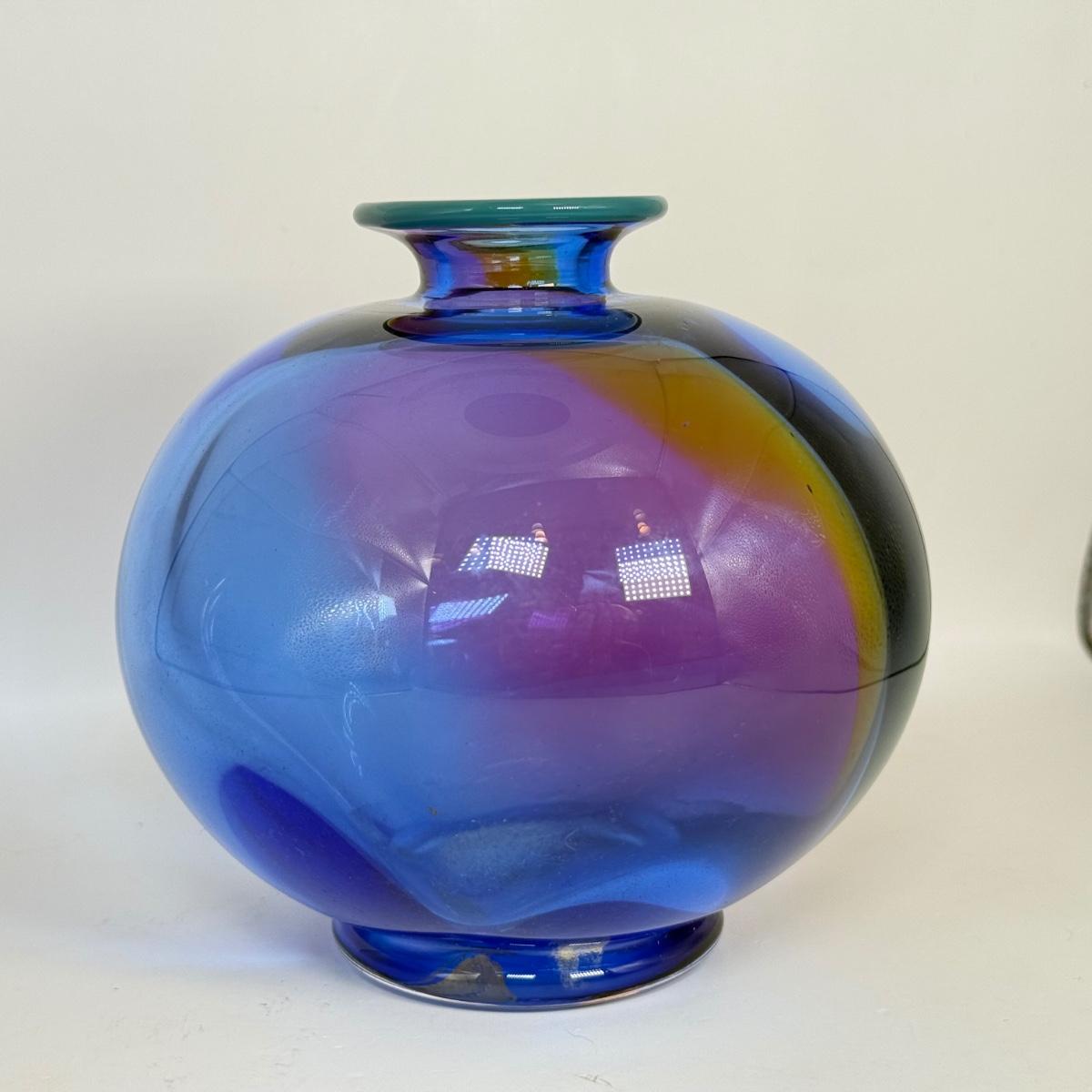 LOT 45F: Rueben Glass Vase Hand Painted by Nouveau Art Glass Co & Blue Iridescent Sphere Vase
