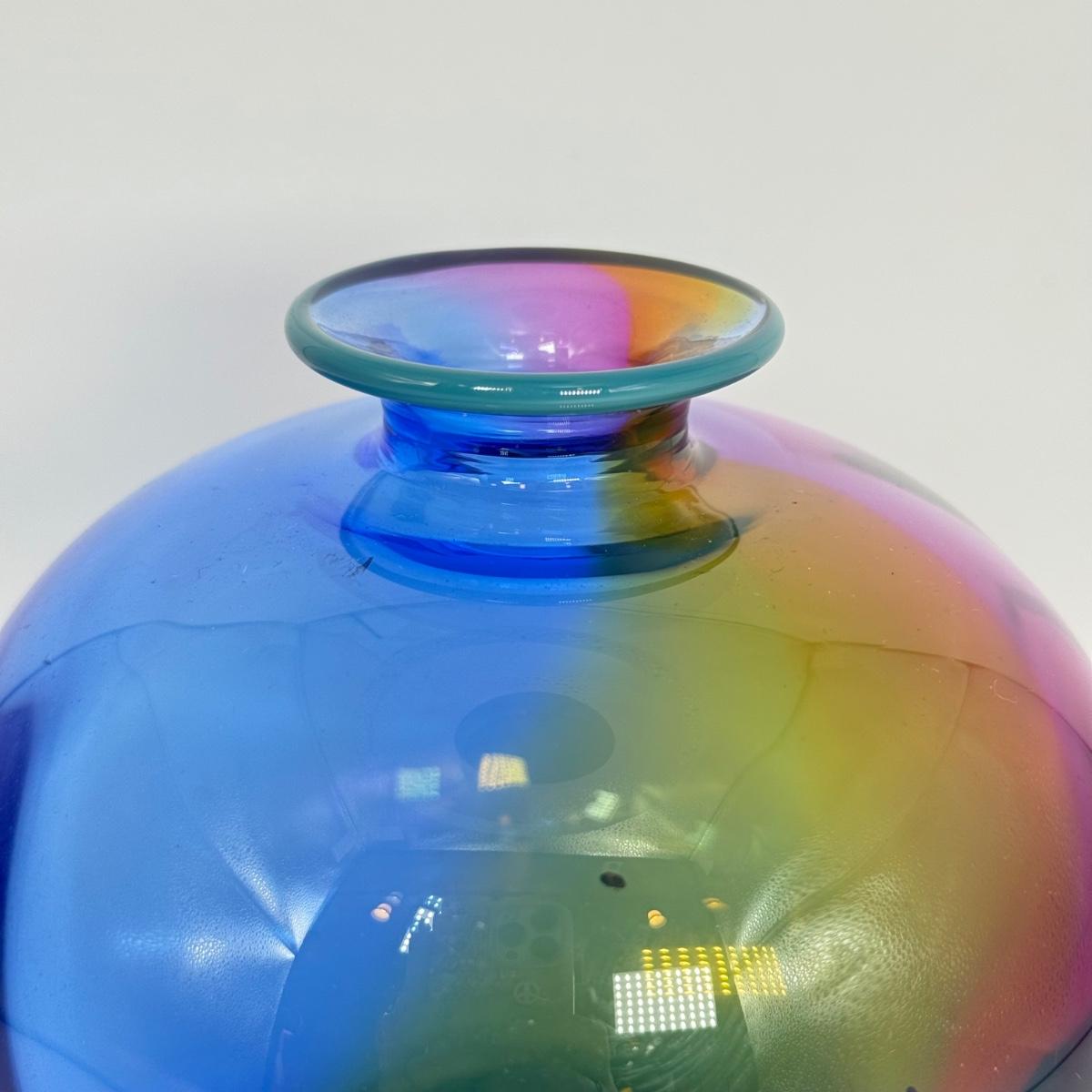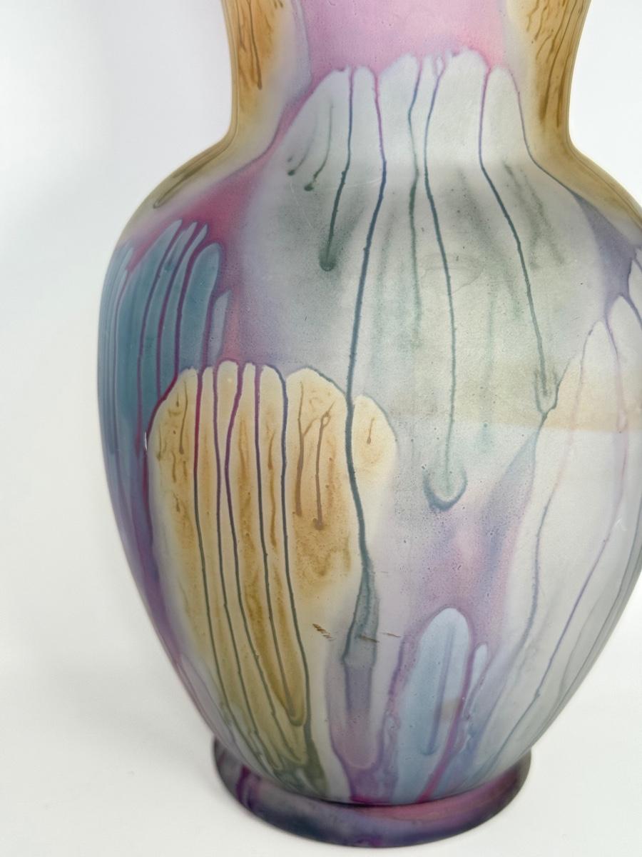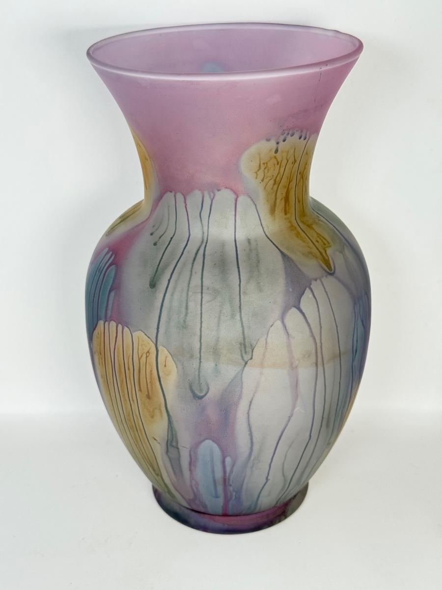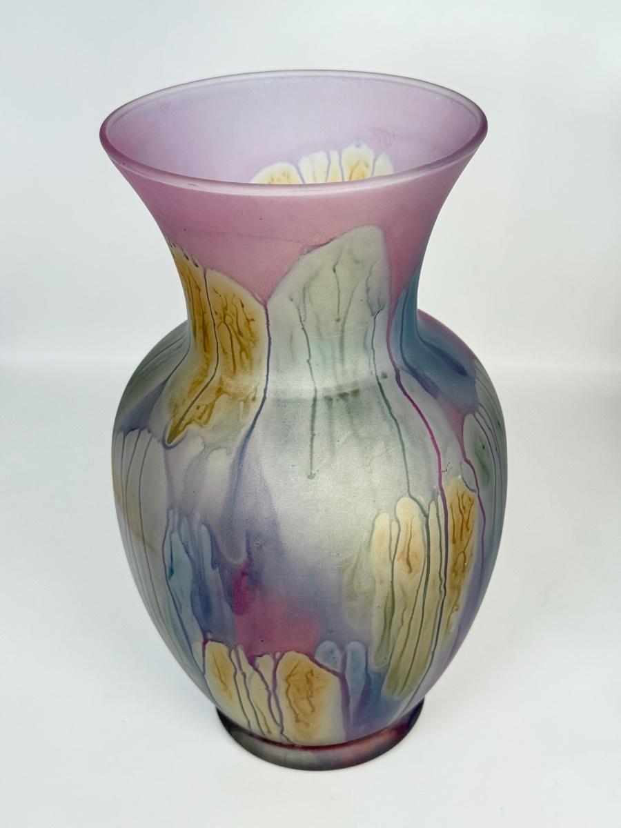 LOT 45F: Rueben Glass Vase Hand Painted by Nouveau Art Glass Co & Blue Iridescent Sphere Vase