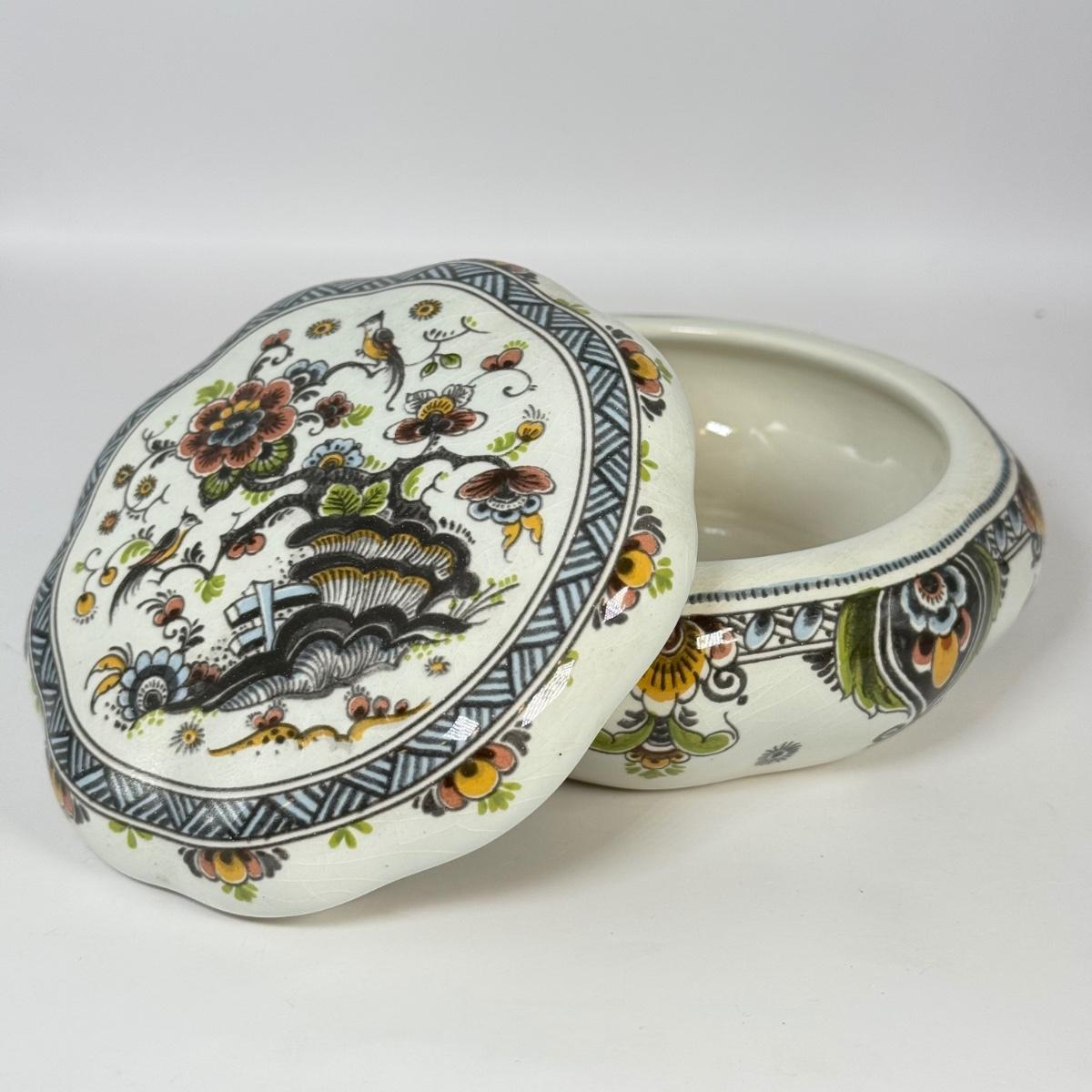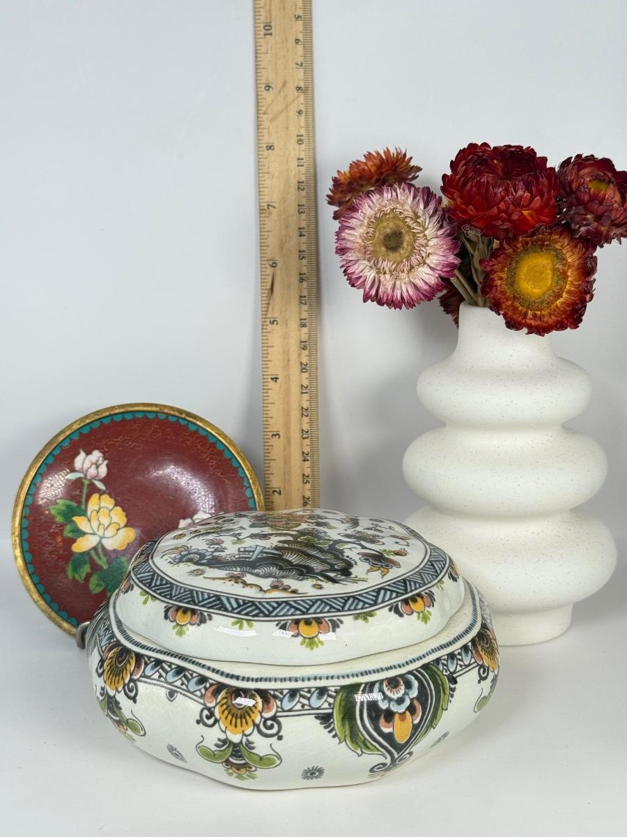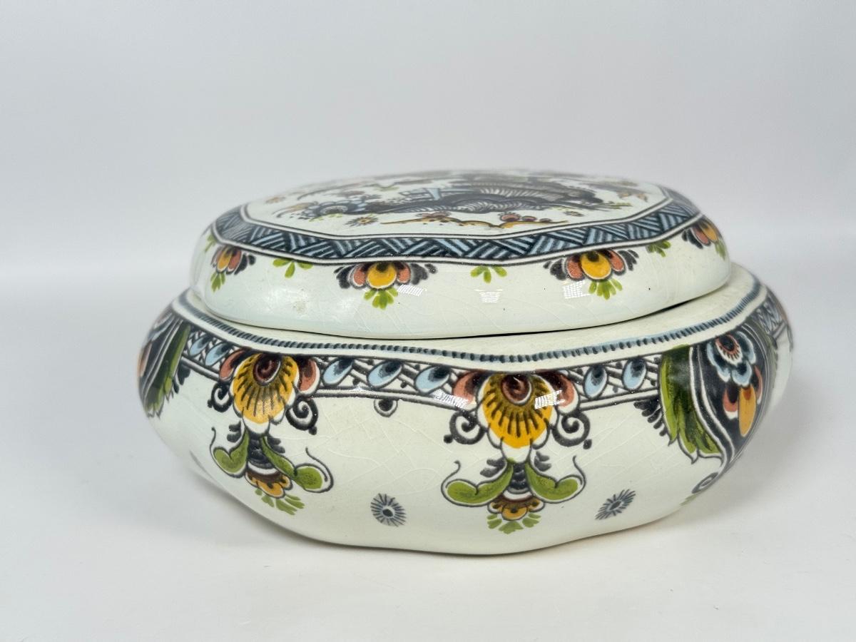 LOT 50F: Delfts Polychrome Trinket Box, Hand Painted Mini Plate & More