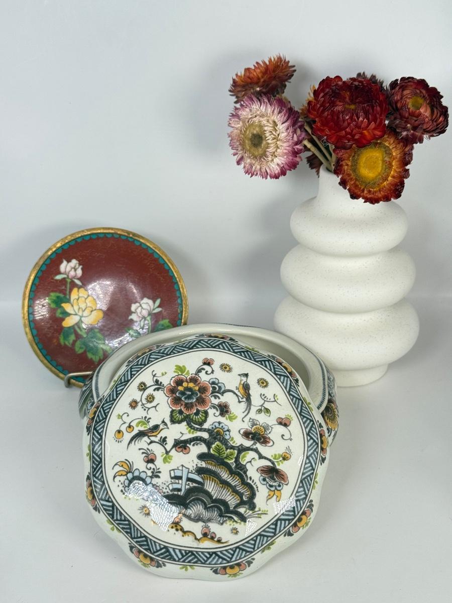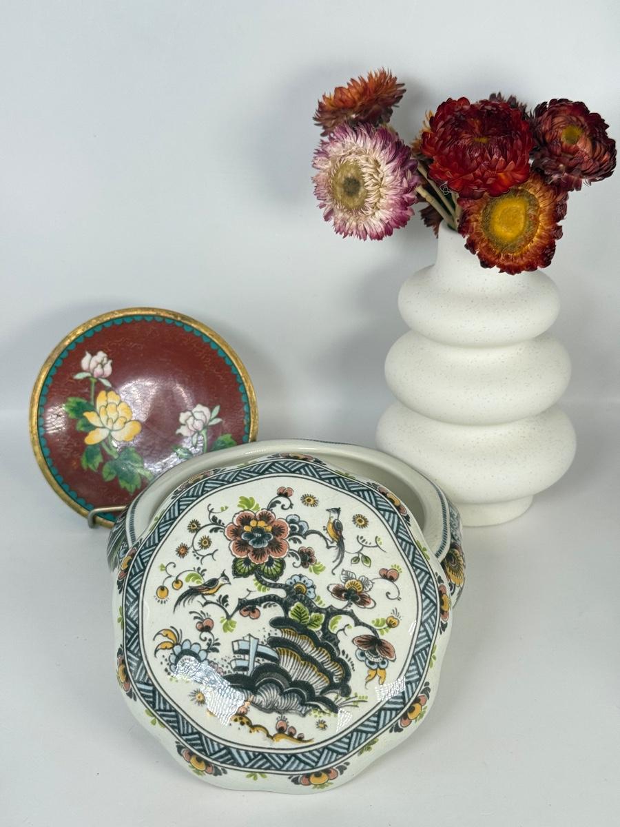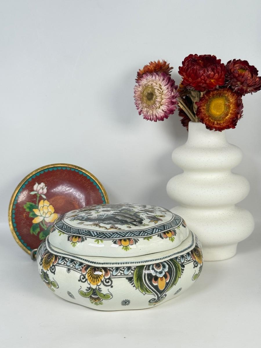 LOT 50F: Delfts Polychrome Trinket Box, Hand Painted Mini Plate & More