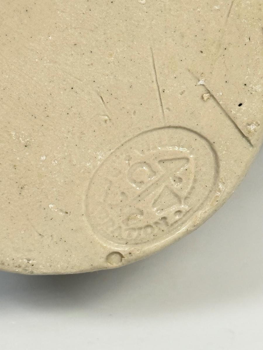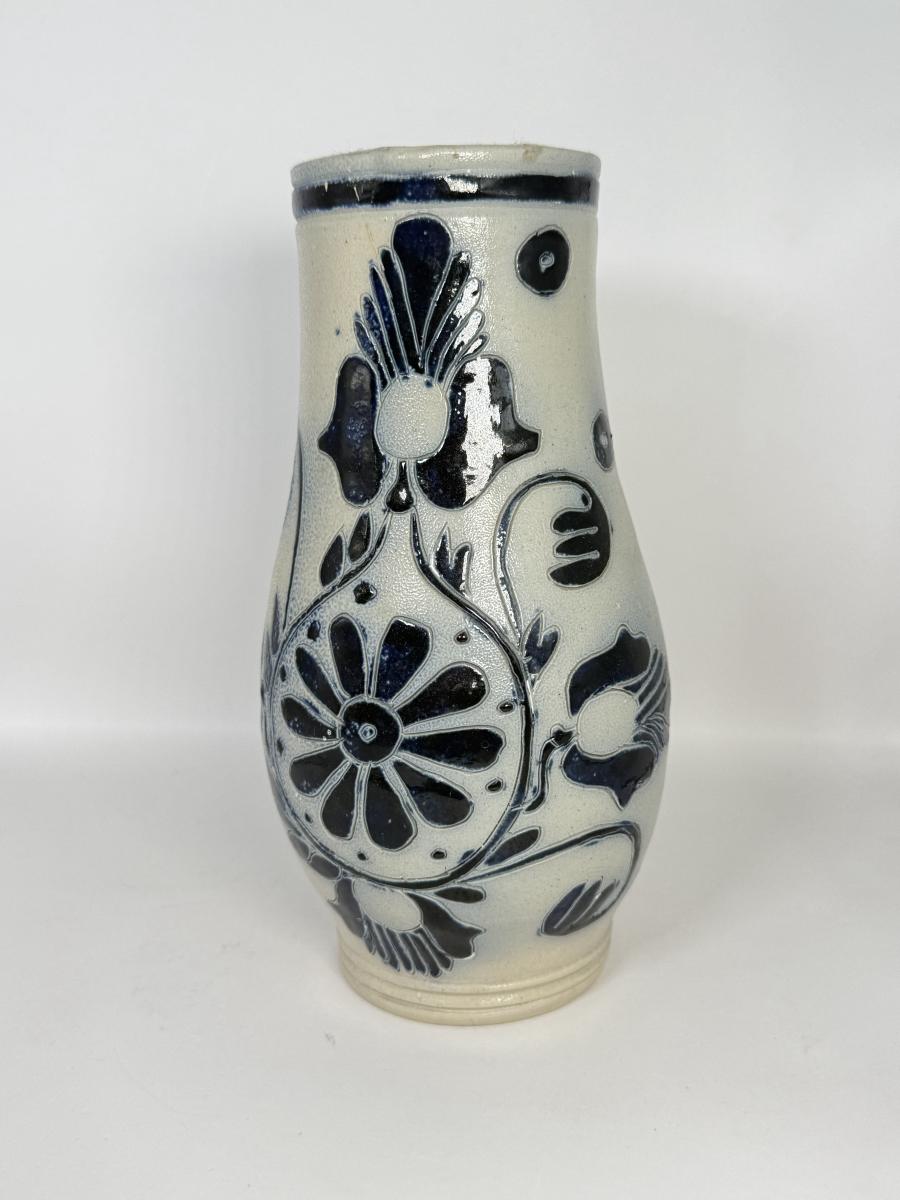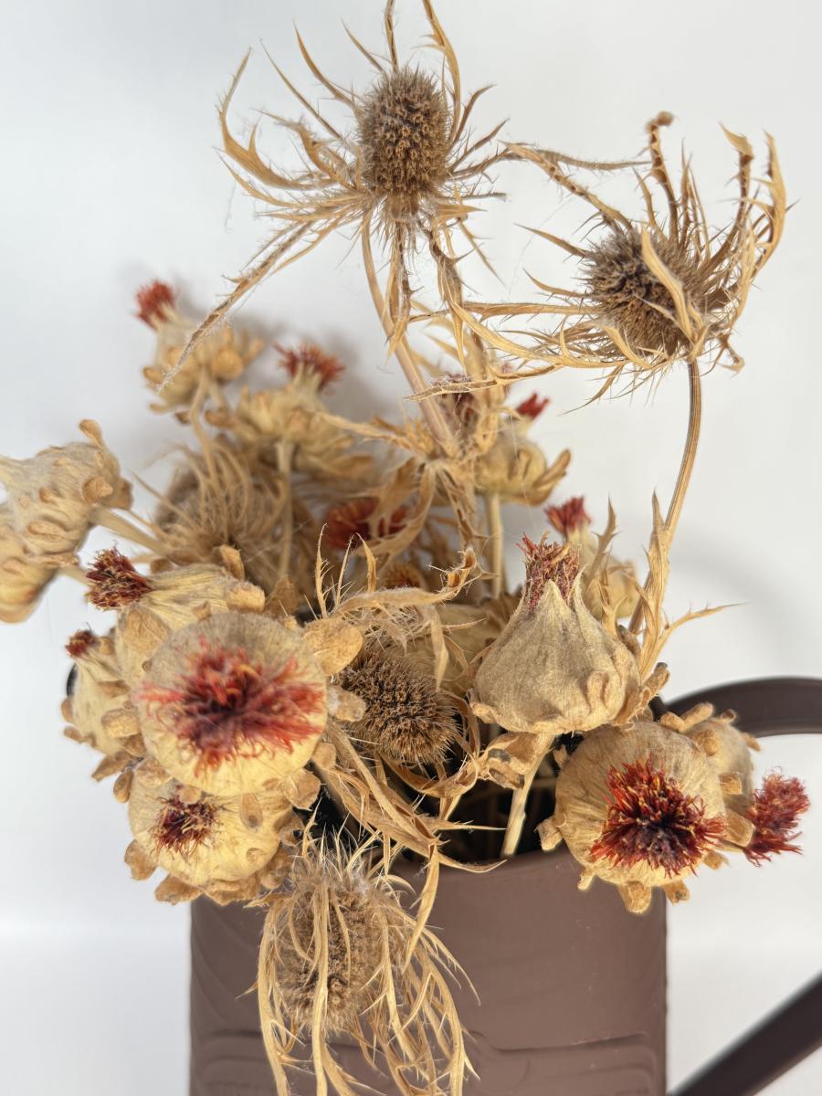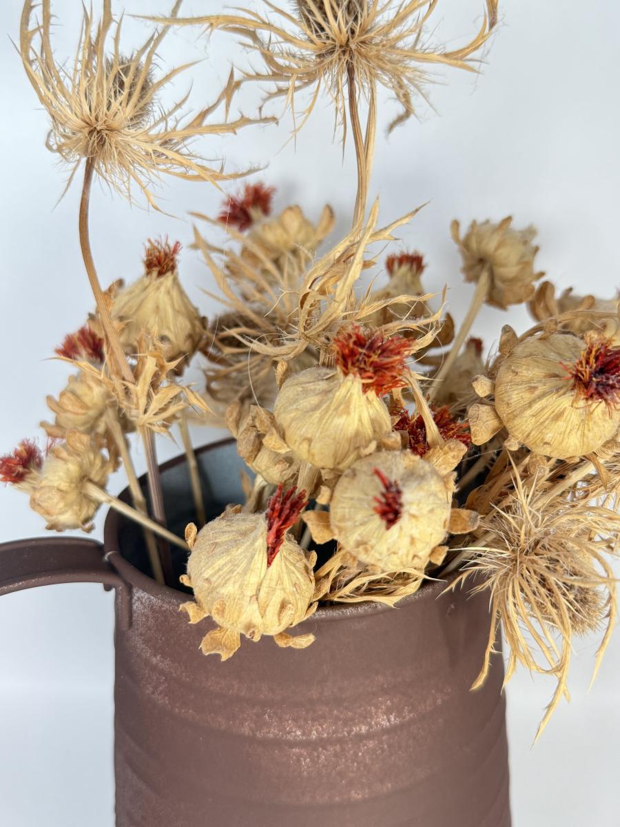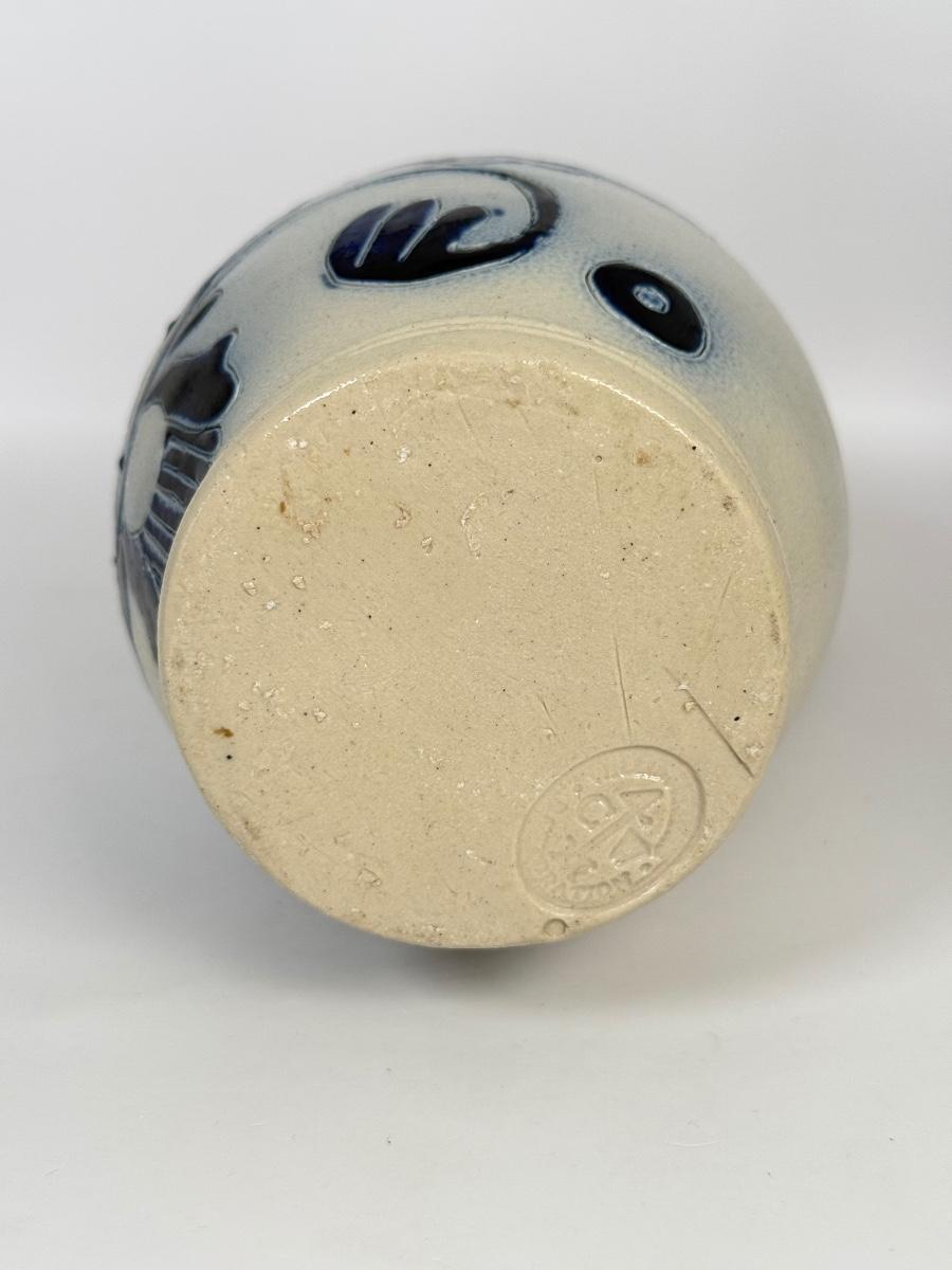 LOT 51F: Williamsburg Blur Stoneware Pottery Pitcher & Rustic Lynx Depologie Metal Pitcher w/ Dried Thistle