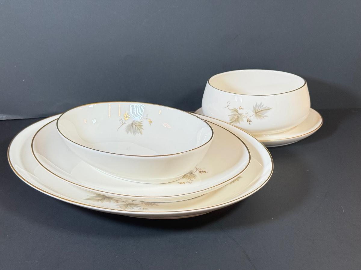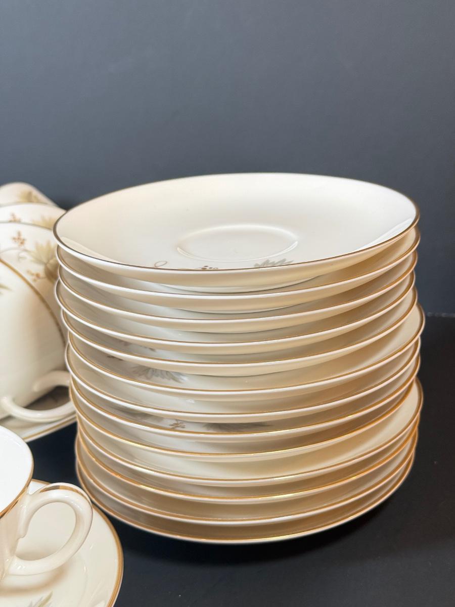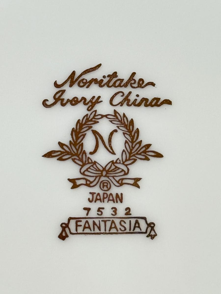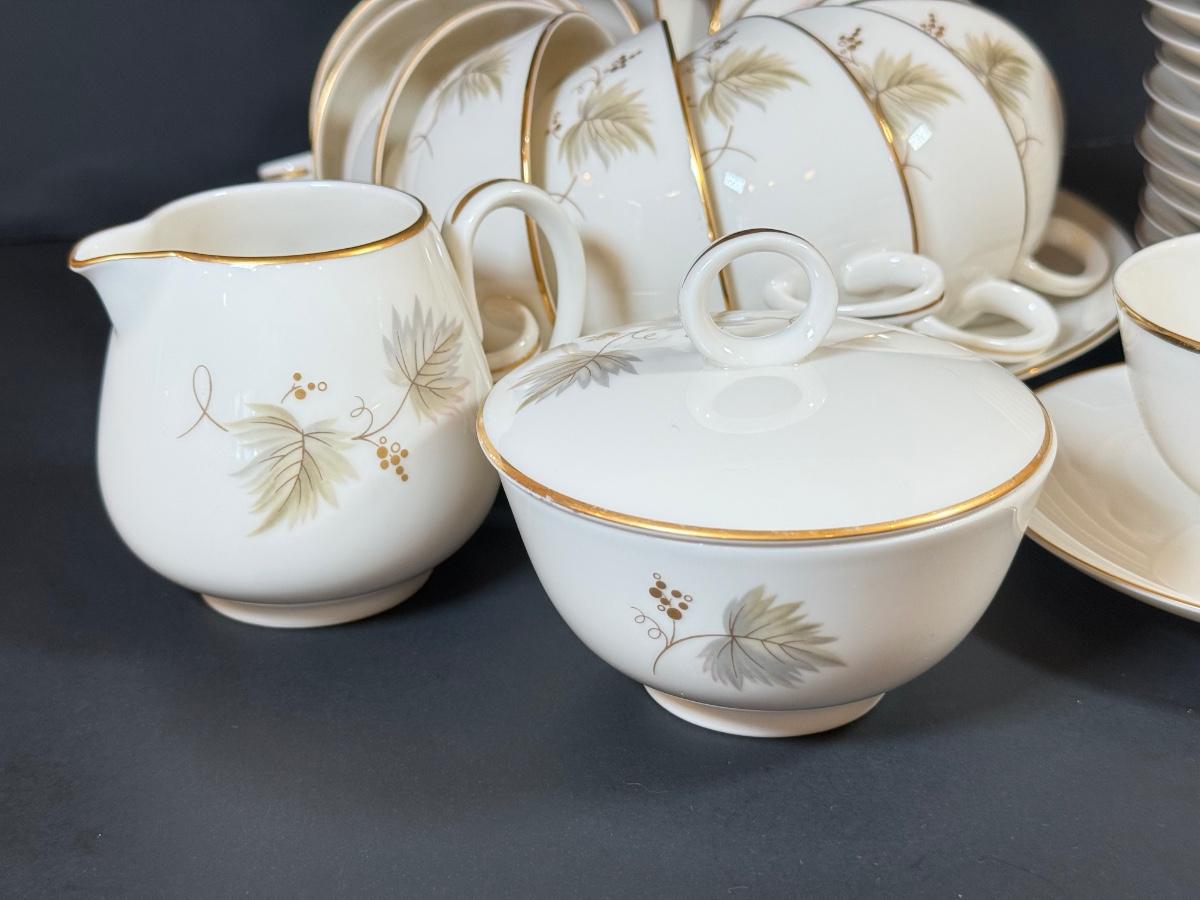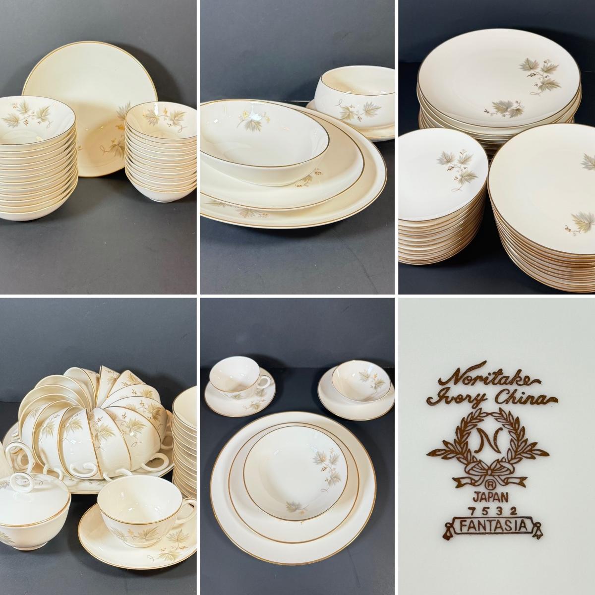 LOT 55F: Noritake Fantasia 7532 Pattern Ivory China Set: 3 sizes of Plates, 2 sizes of Bowls, Tea Cups & Saucers - Service for 12 plus Serving Dishes, Sugar Bowl & Creamer