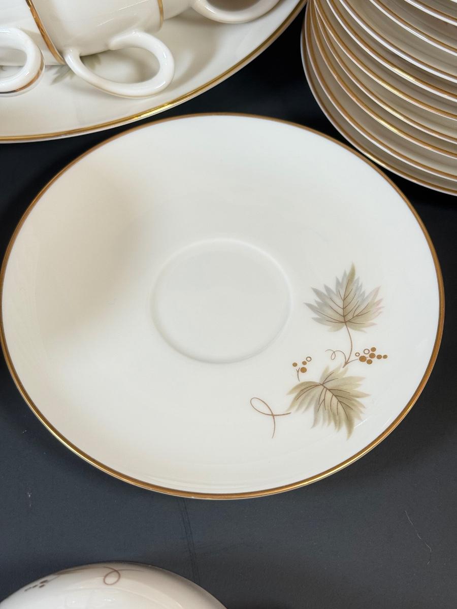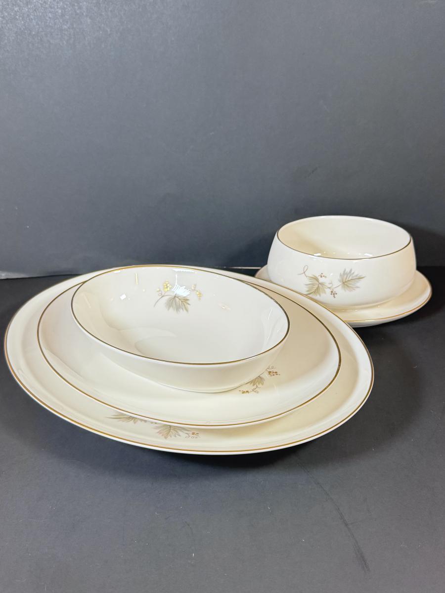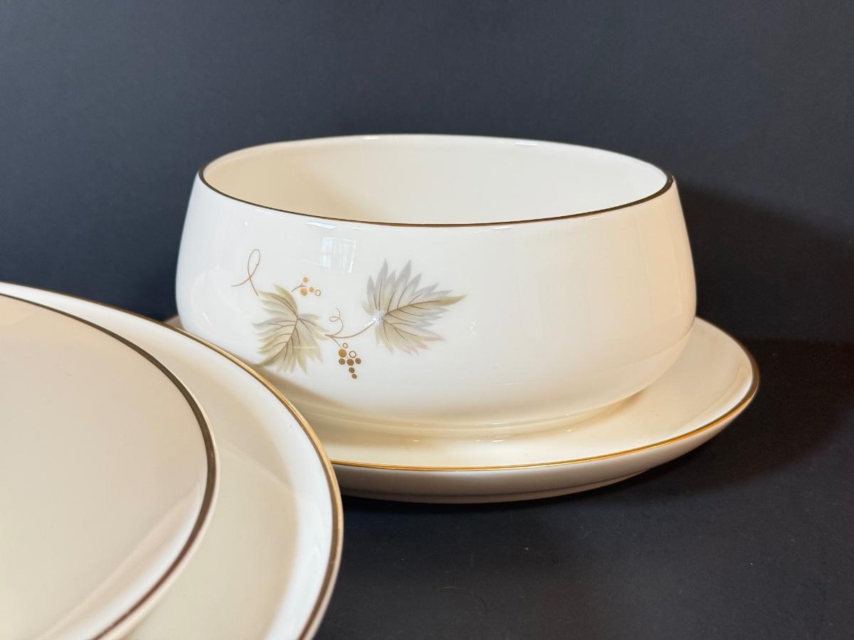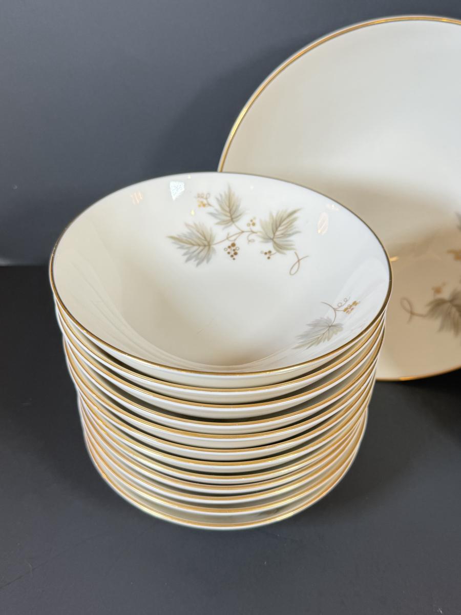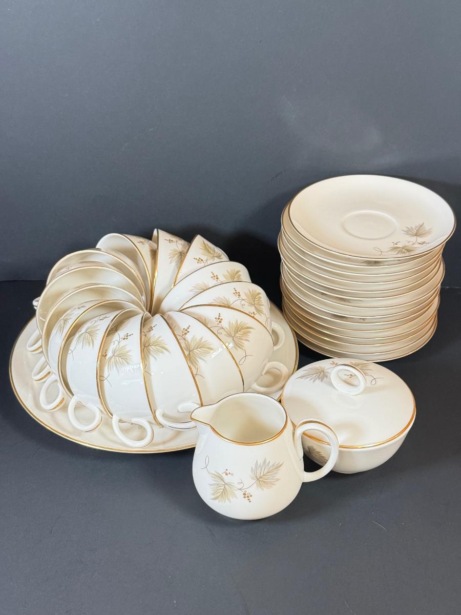 LOT 55F: Noritake Fantasia 7532 Pattern Ivory China Set: 3 sizes of Plates, 2 sizes of Bowls, Tea Cups & Saucers - Service for 12 plus Serving Dishes, Sugar Bowl & Creamer