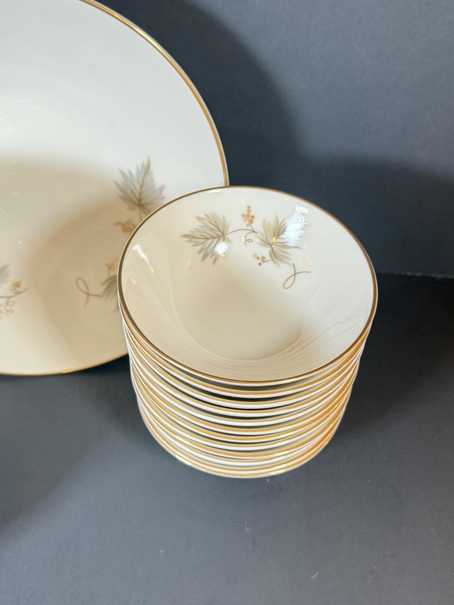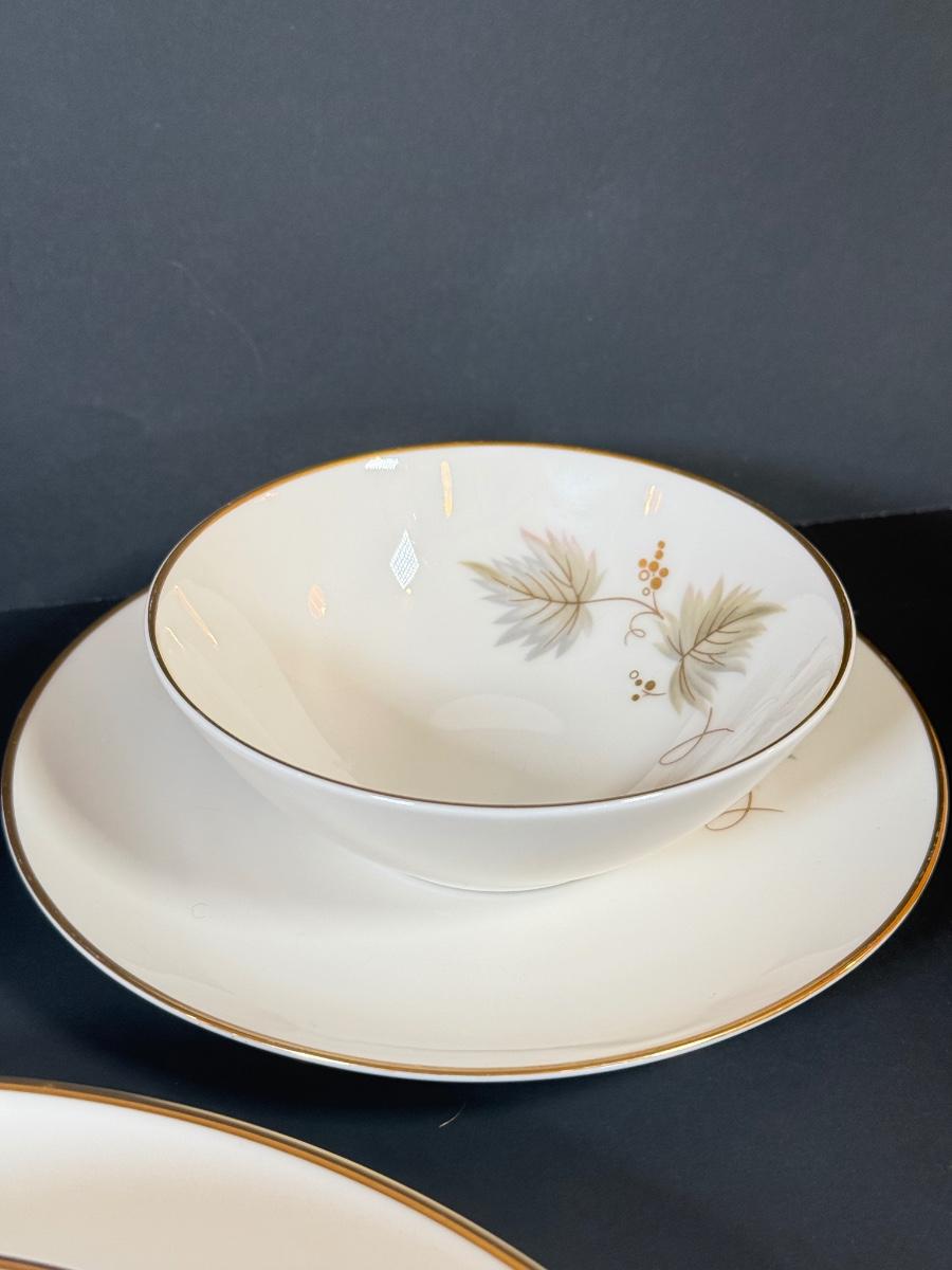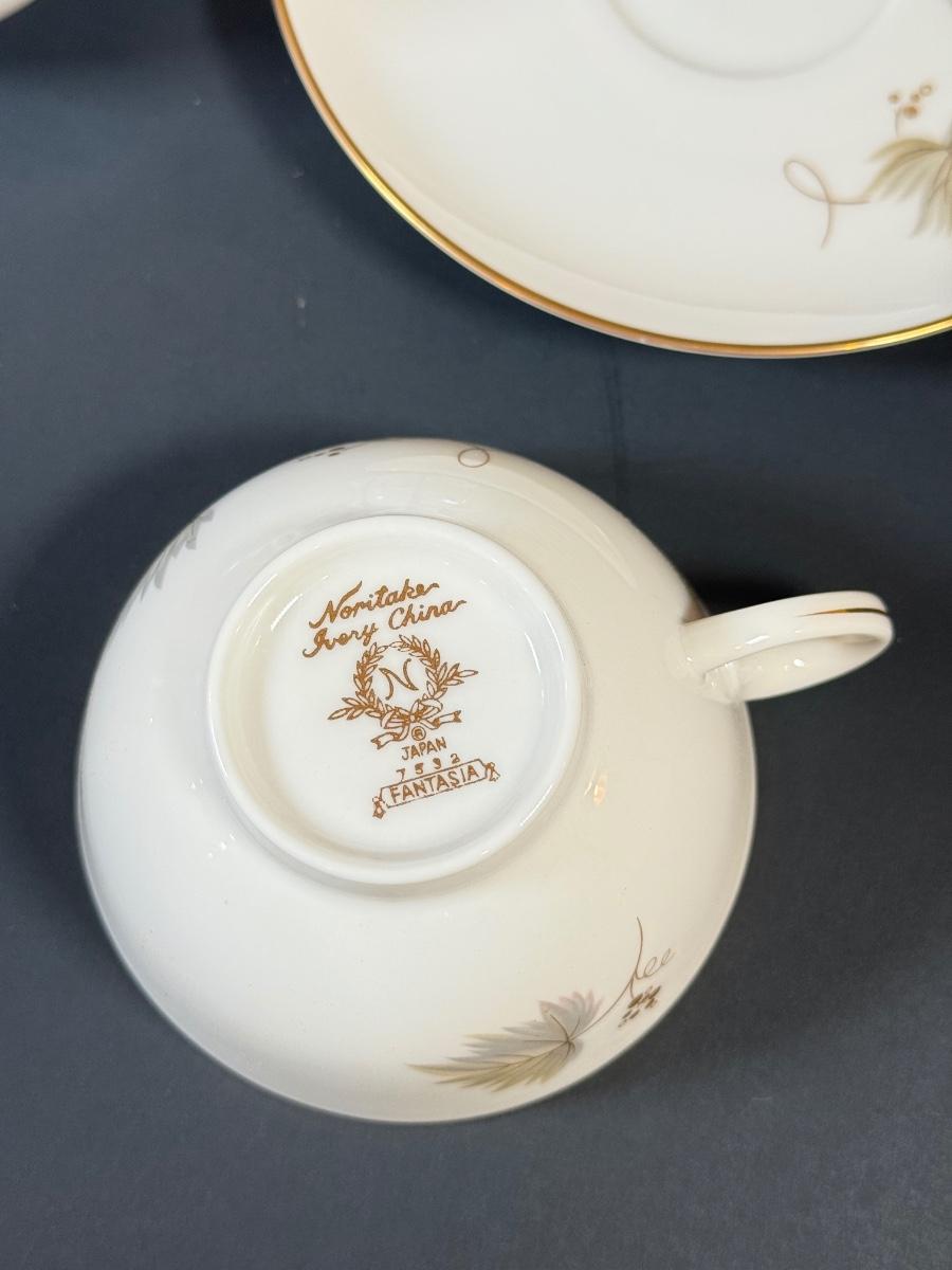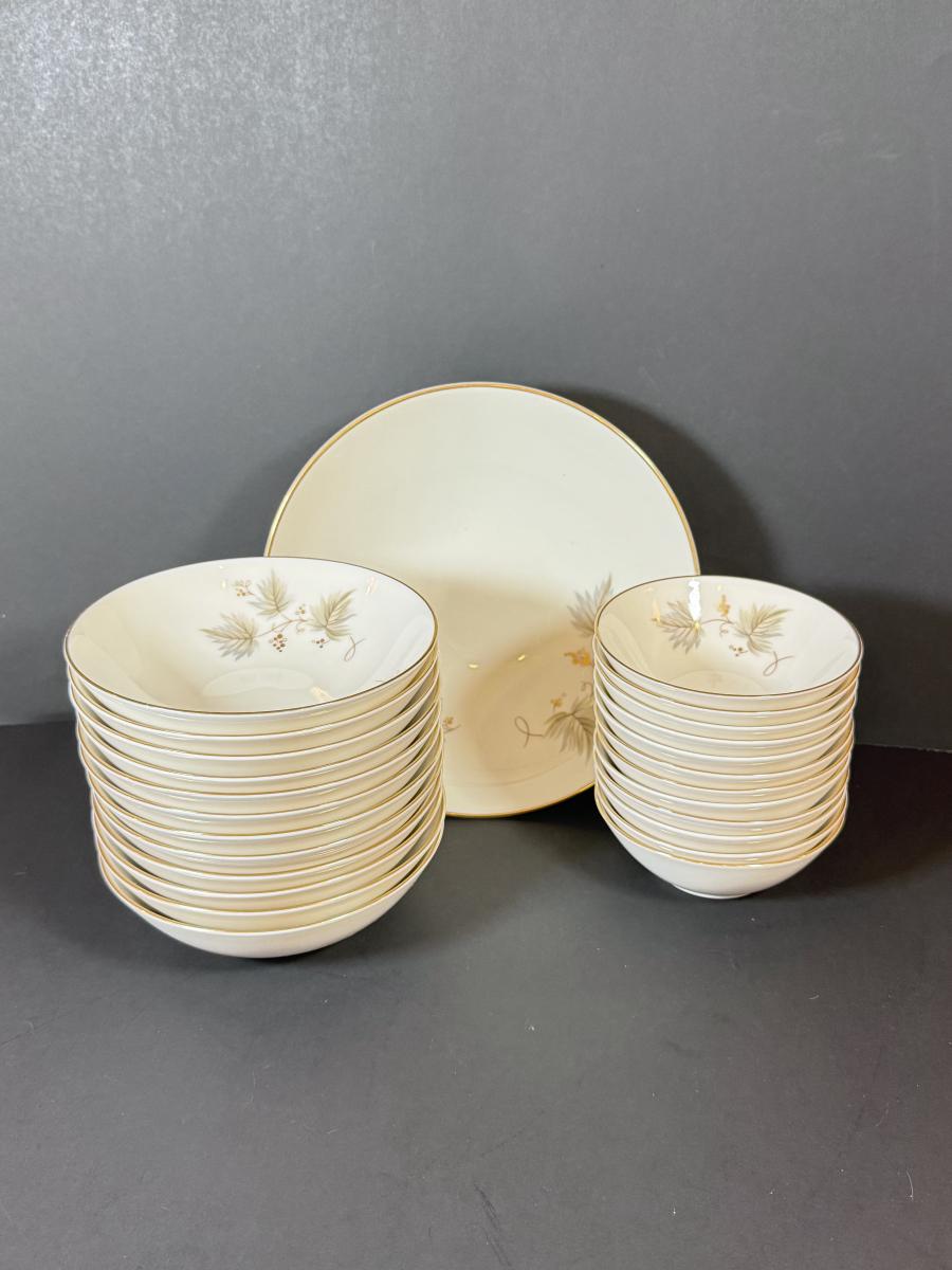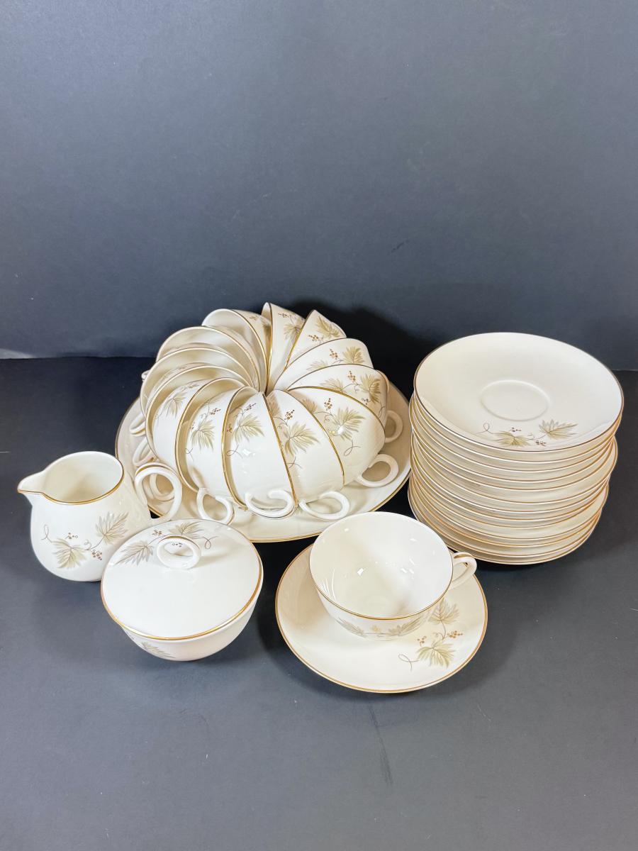 LOT 55F: Noritake Fantasia 7532 Pattern Ivory China Set: 3 sizes of Plates, 2 sizes of Bowls, Tea Cups & Saucers - Service for 12 plus Serving Dishes, Sugar Bowl & Creamer