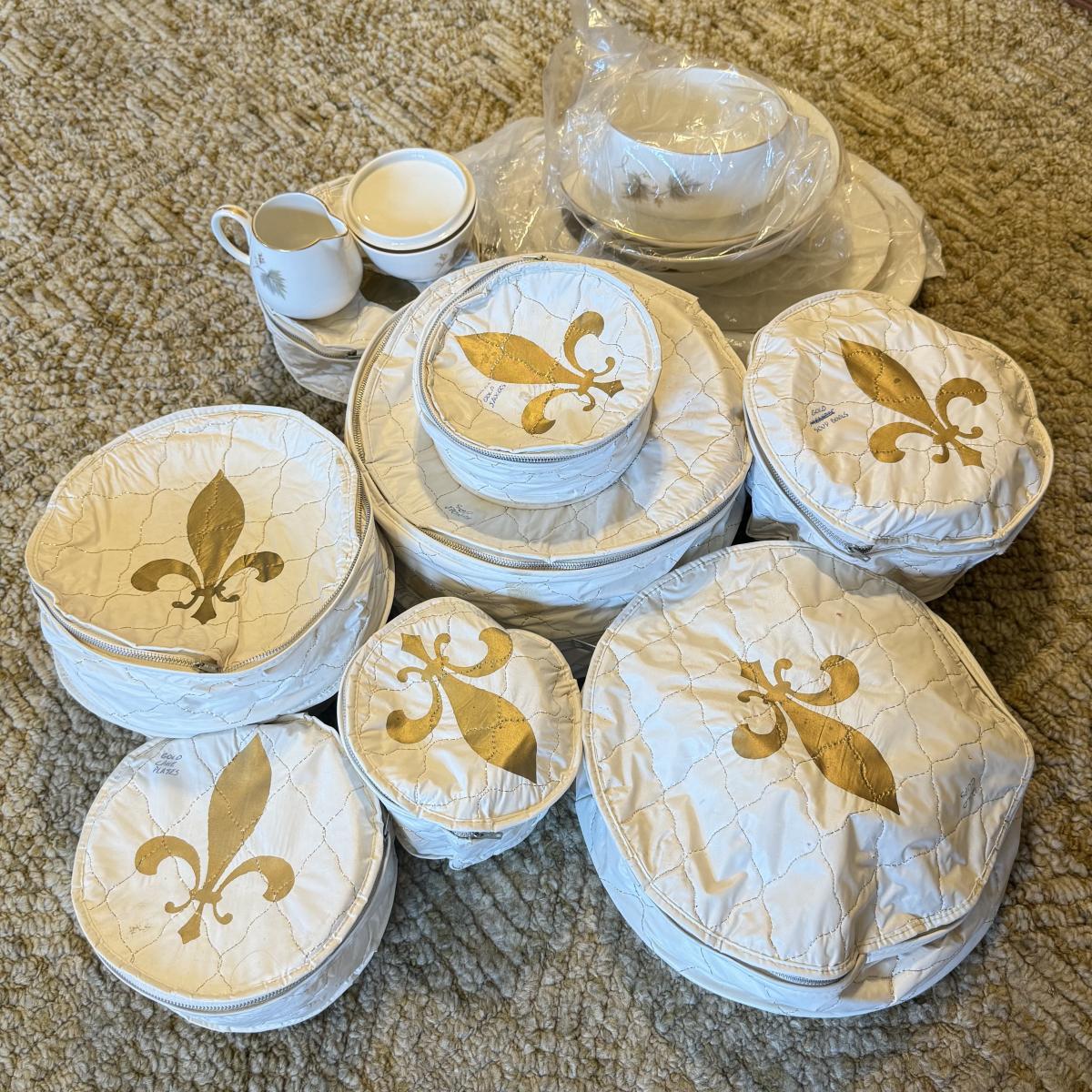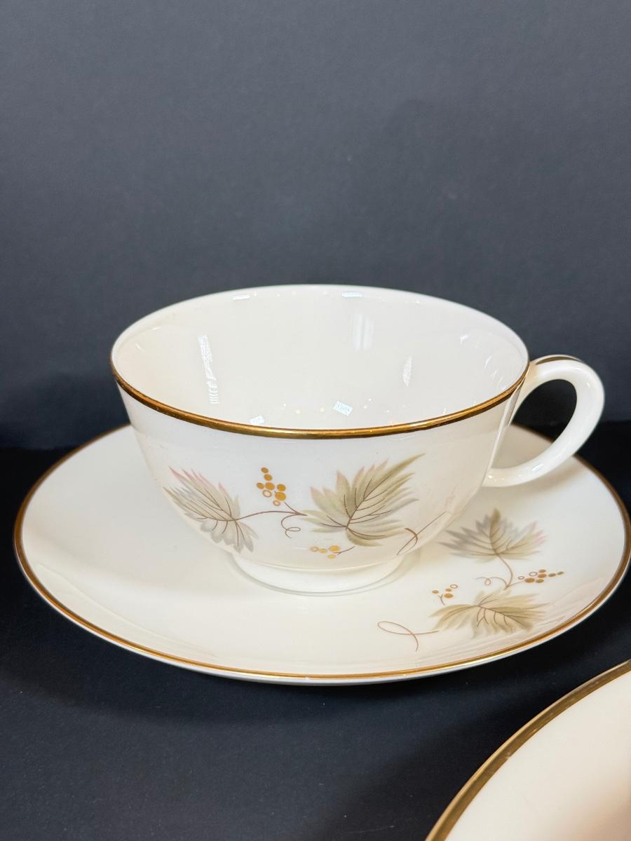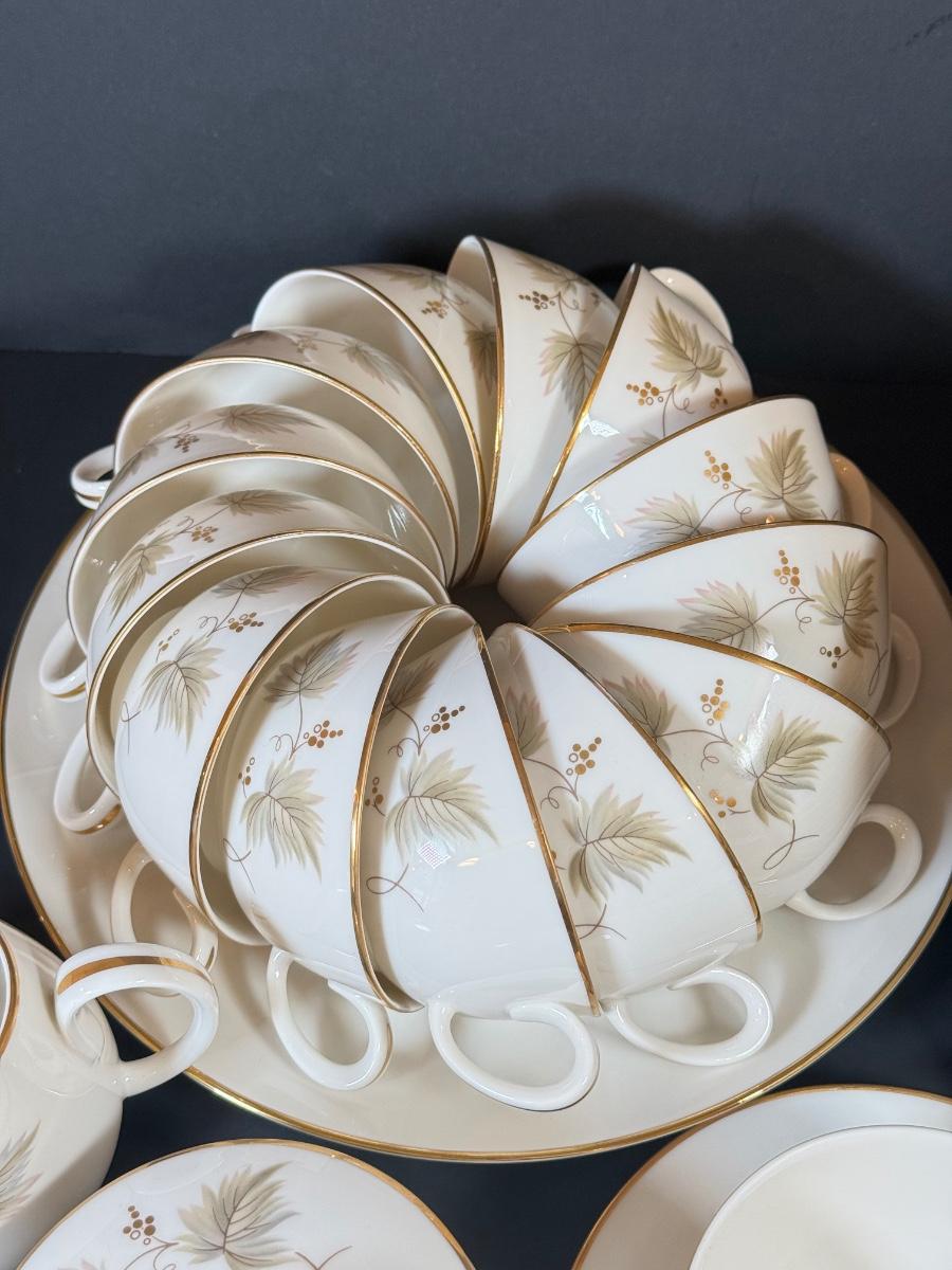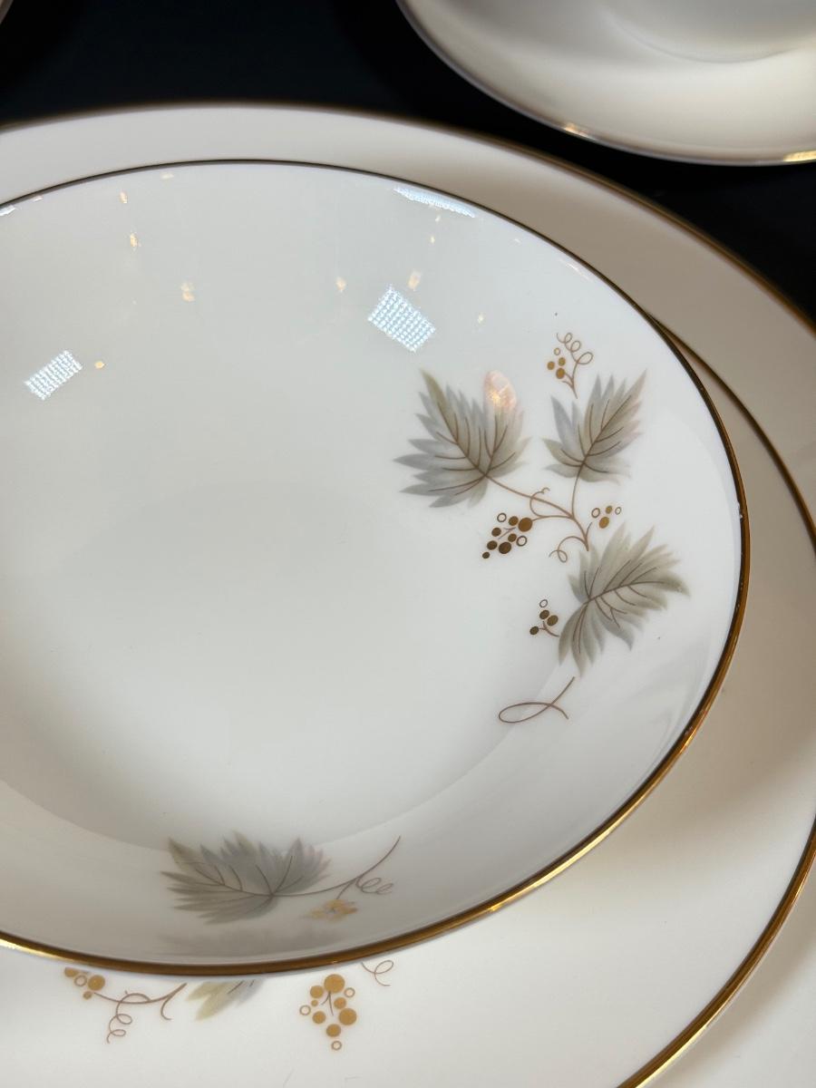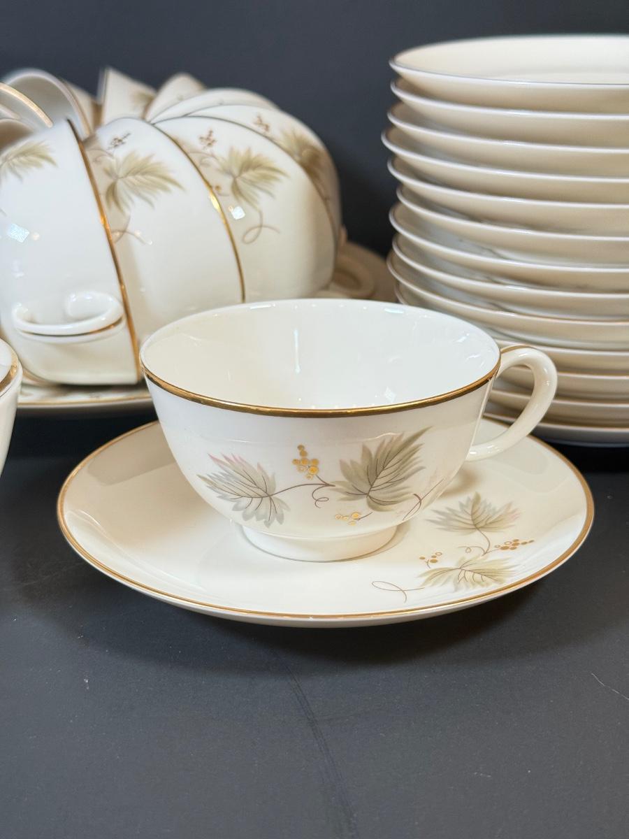 LOT 55F: Noritake Fantasia 7532 Pattern Ivory China Set: 3 sizes of Plates, 2 sizes of Bowls, Tea Cups & Saucers - Service for 12 plus Serving Dishes, Sugar Bowl & Creamer