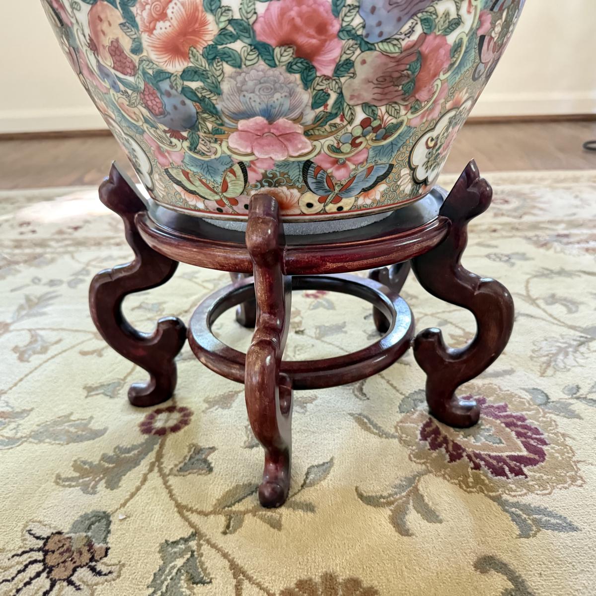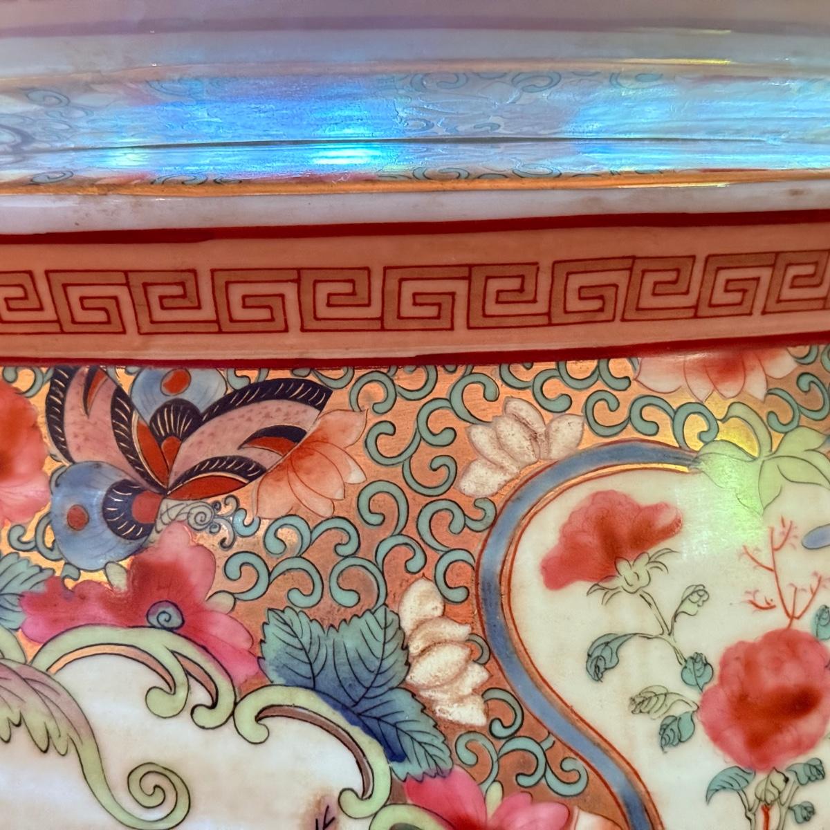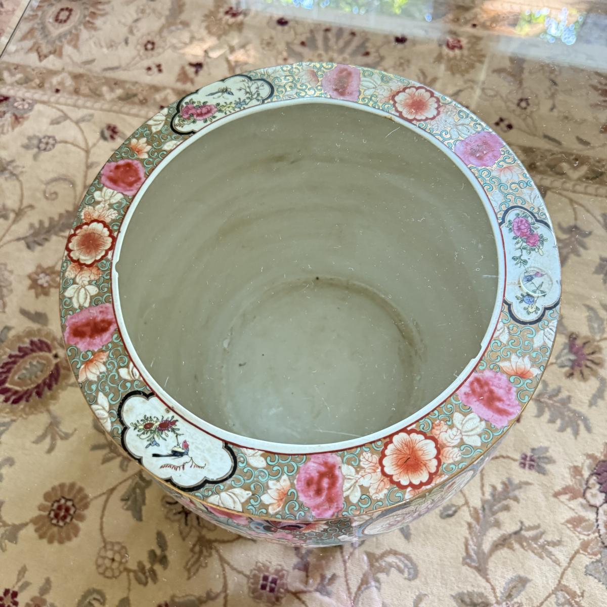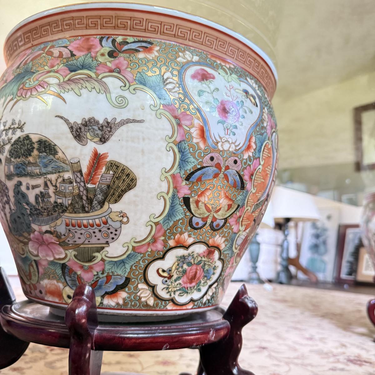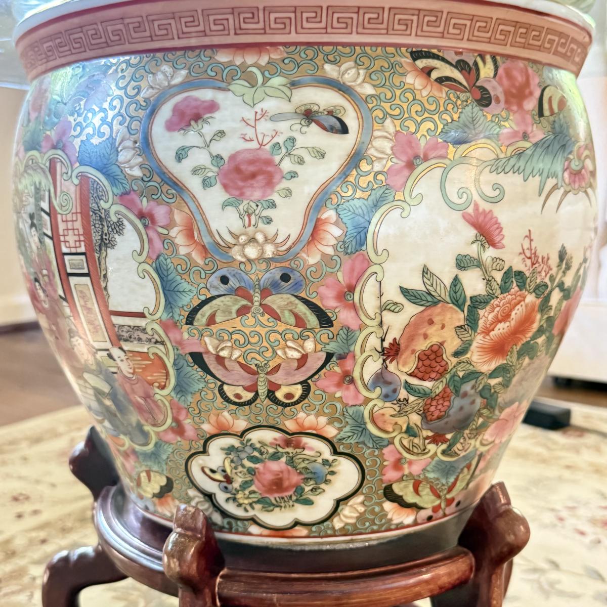 LOT 58F: Antique Koi Pots on Stands (one signed) w/ Thick Glass Table Top