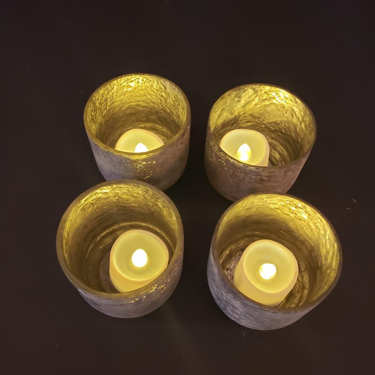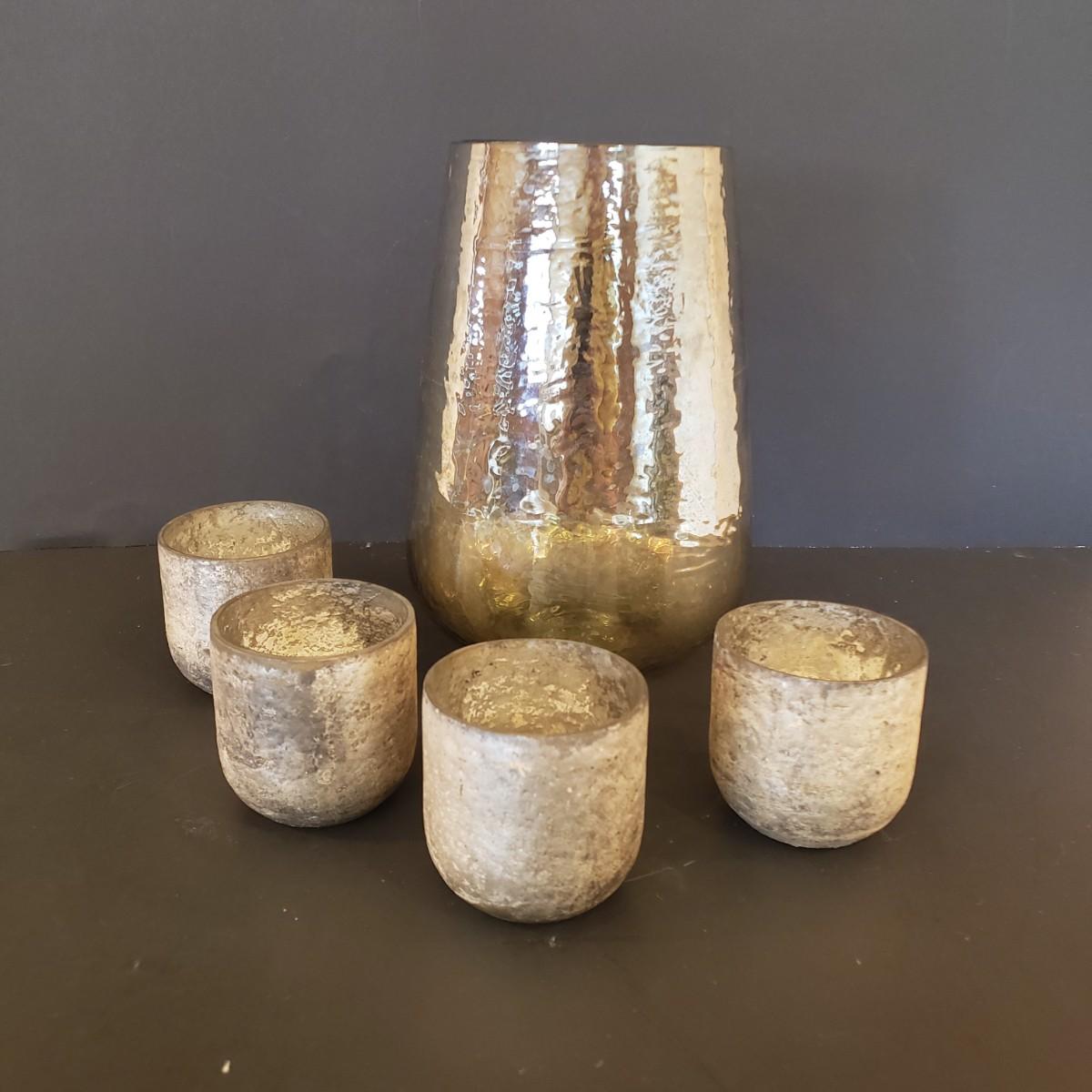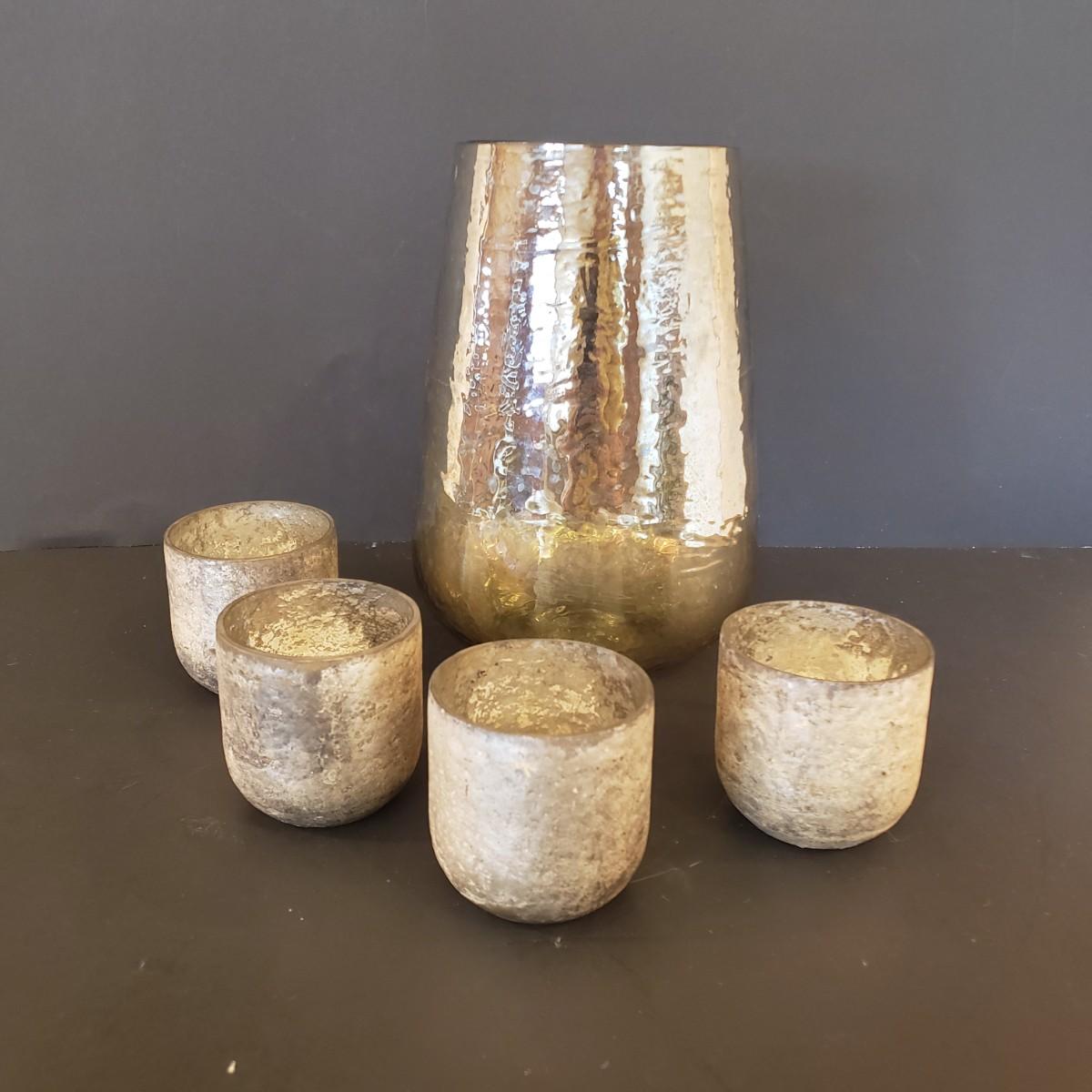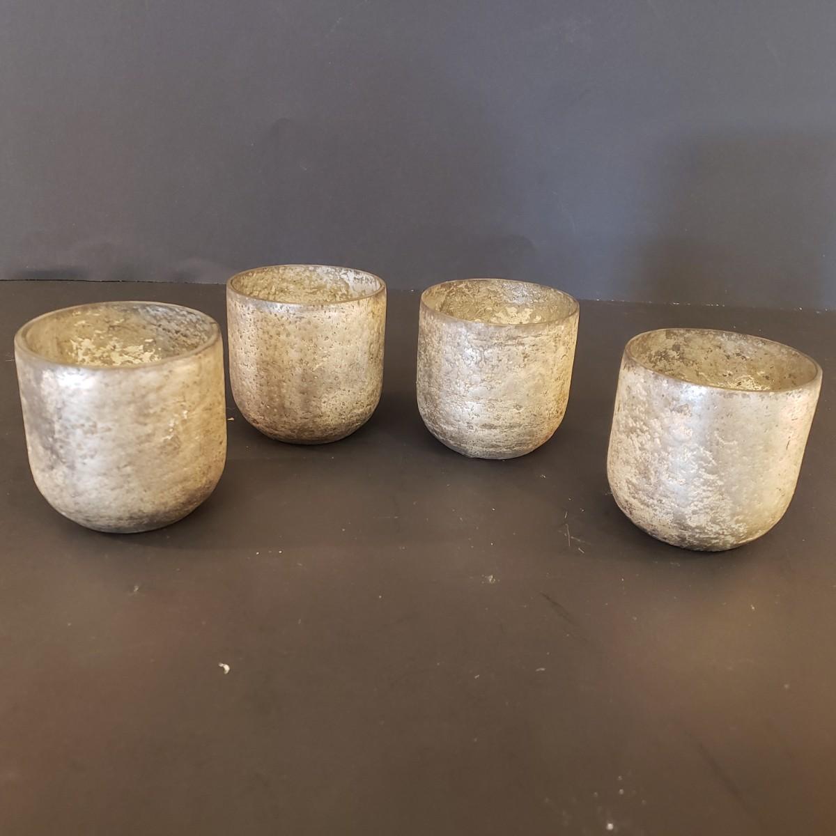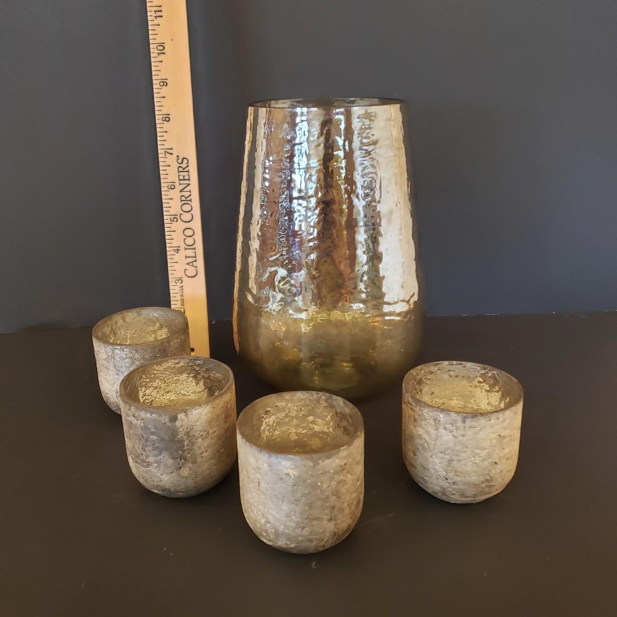 LOT 64F: Silver Mercury Glass Style Vase with Matching Tea Light Votive Holders