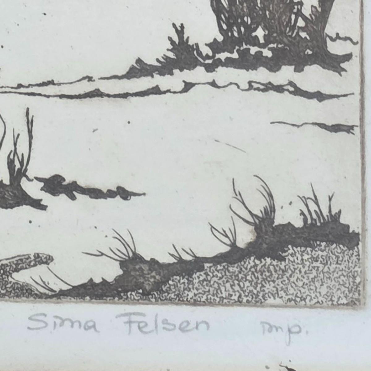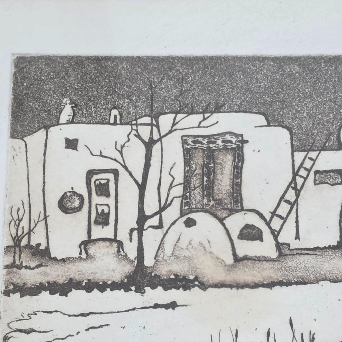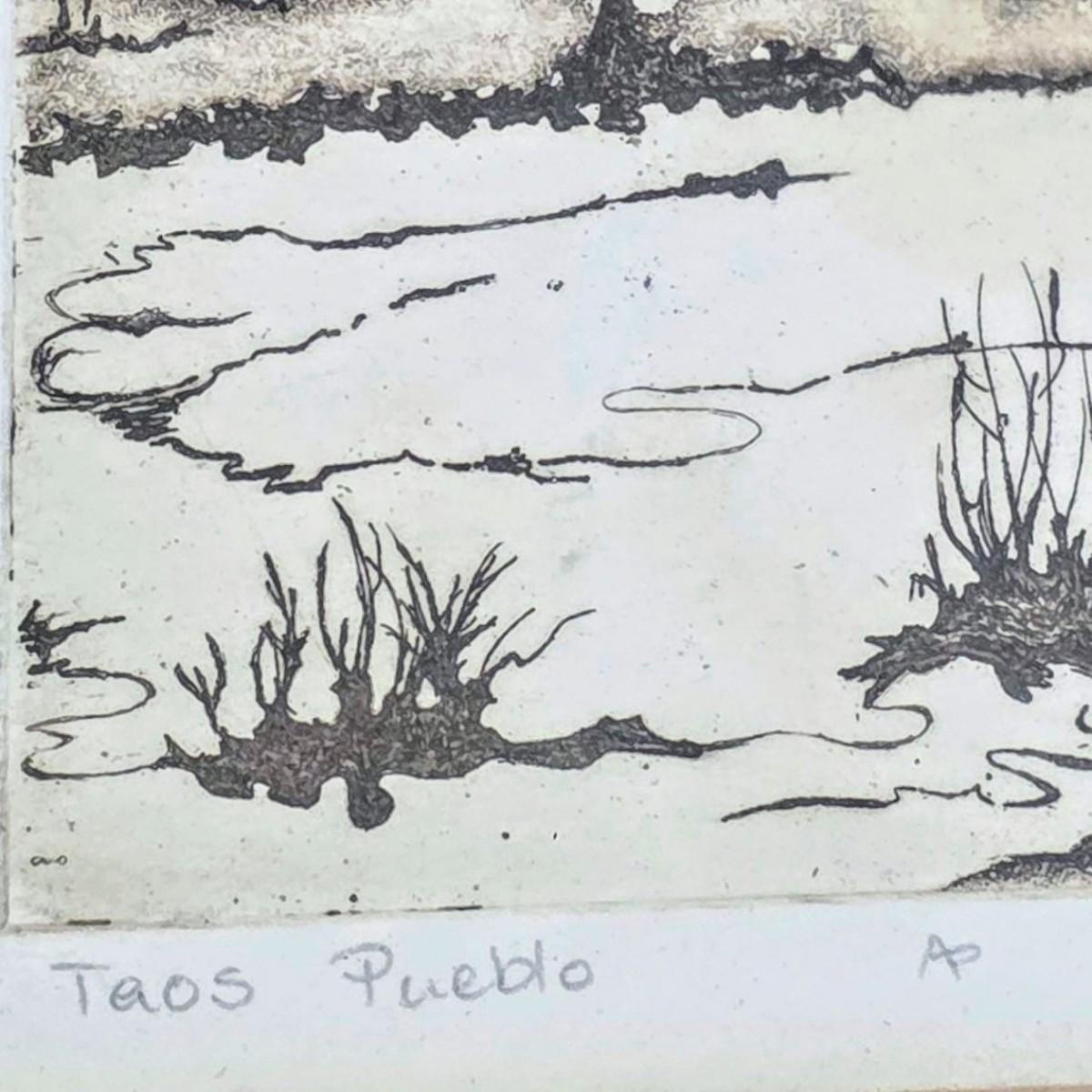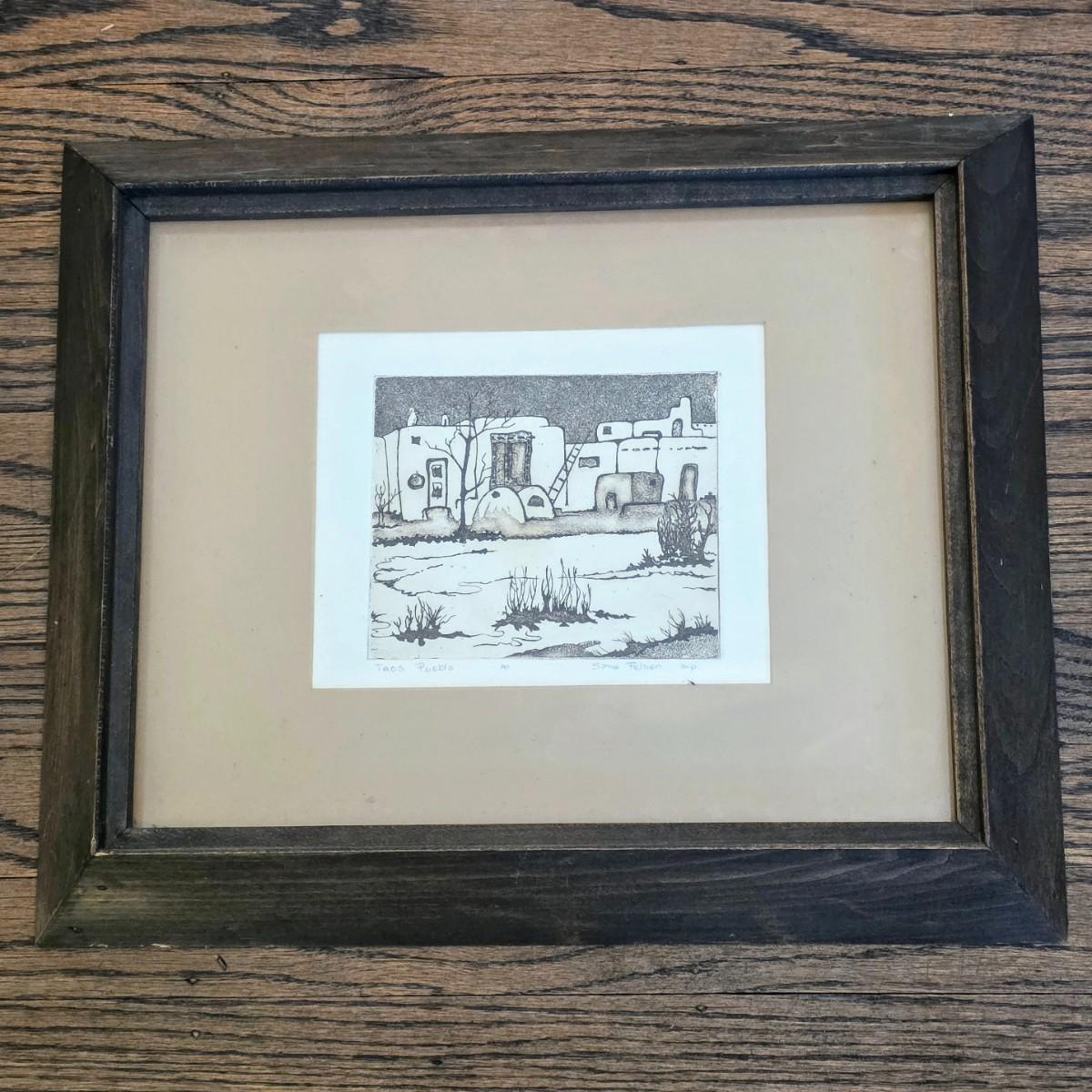LOT 81L: Vintage Framed, Signed, Pencil Drawing by Sima Felsen - Taos Pueblo