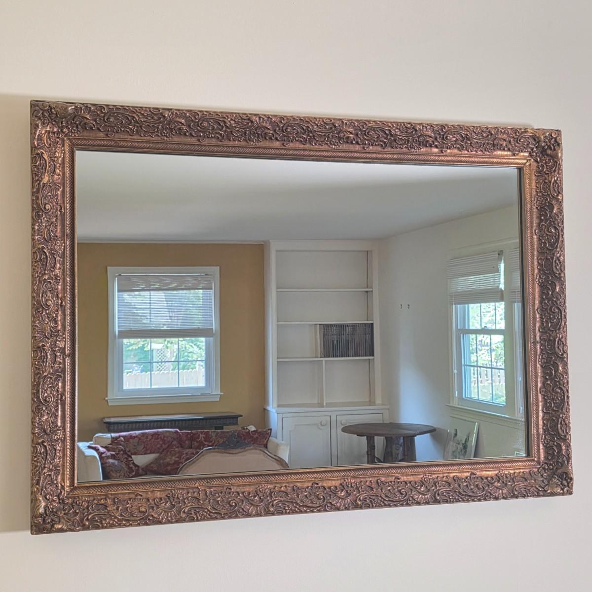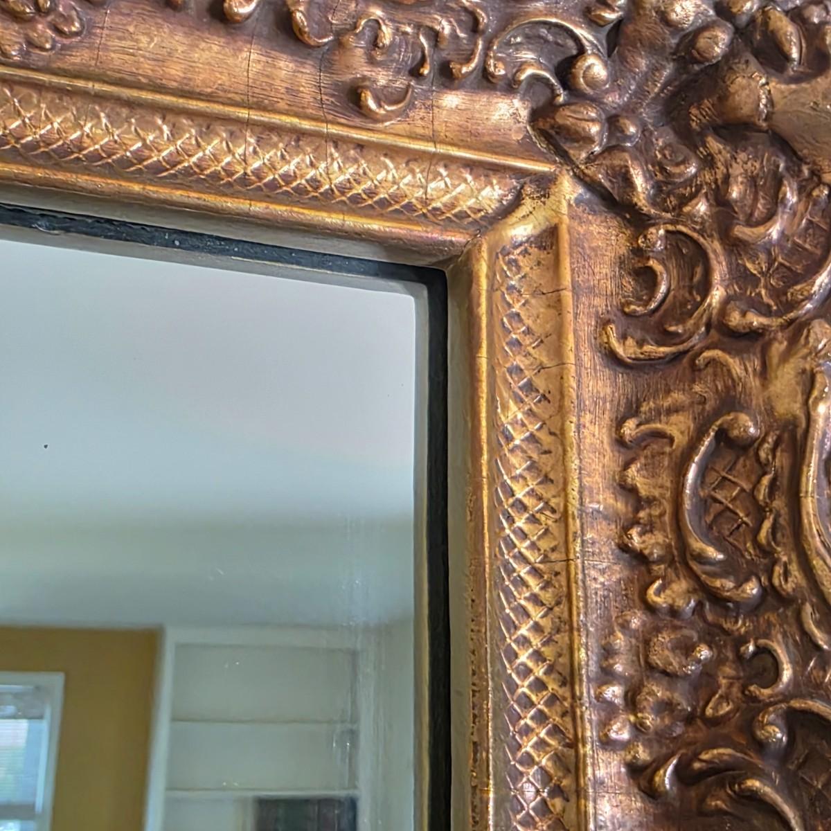 LOT 91L: Large, Rectangular, Vintage Gold Tone, Ornately Carved Frame Mantel/Wall Mirror