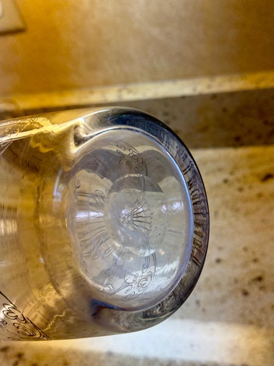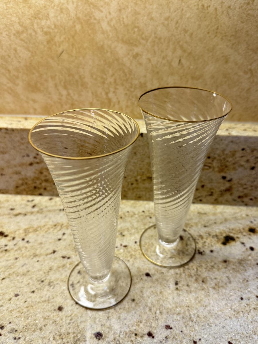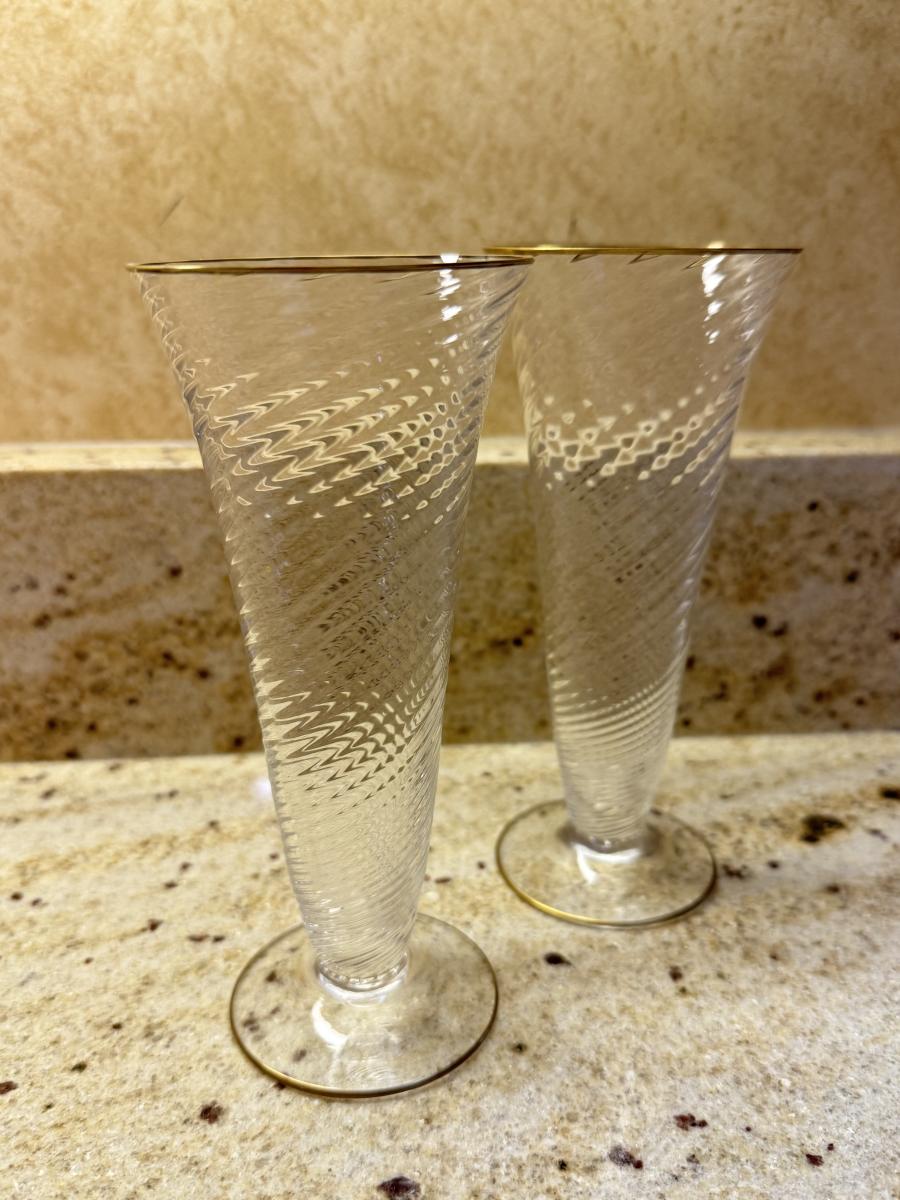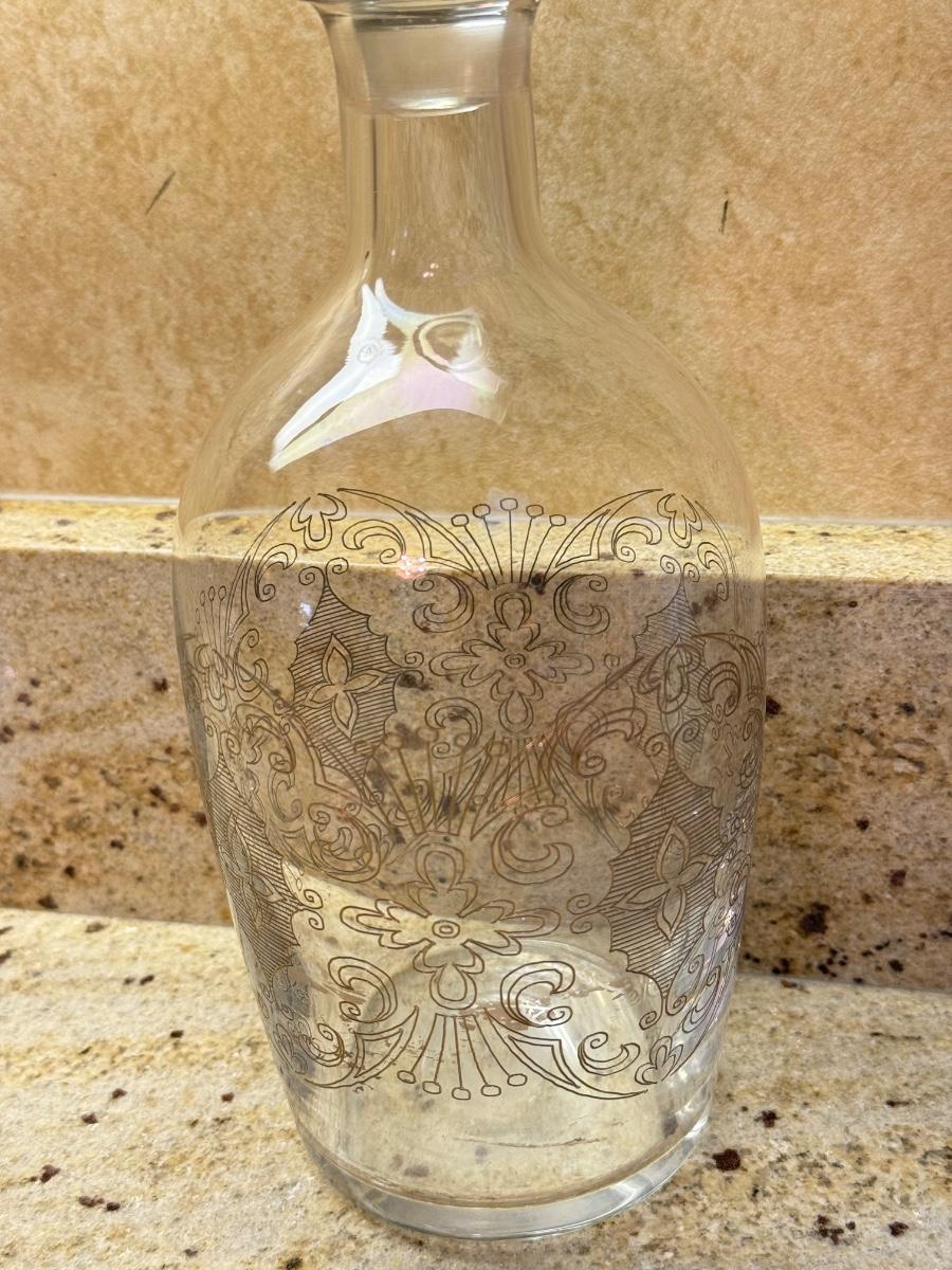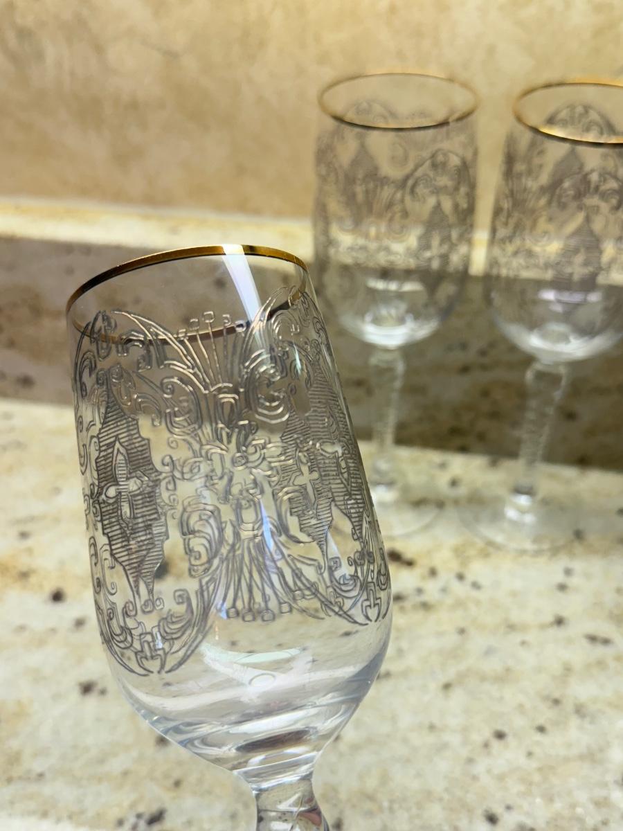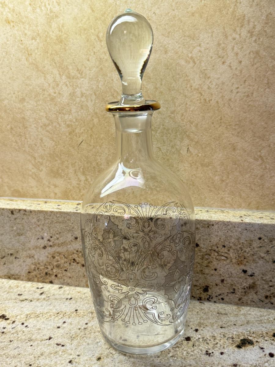 LOT 109K: Gold Rim Decanter w/ 3 Matching Wine Glasses & More