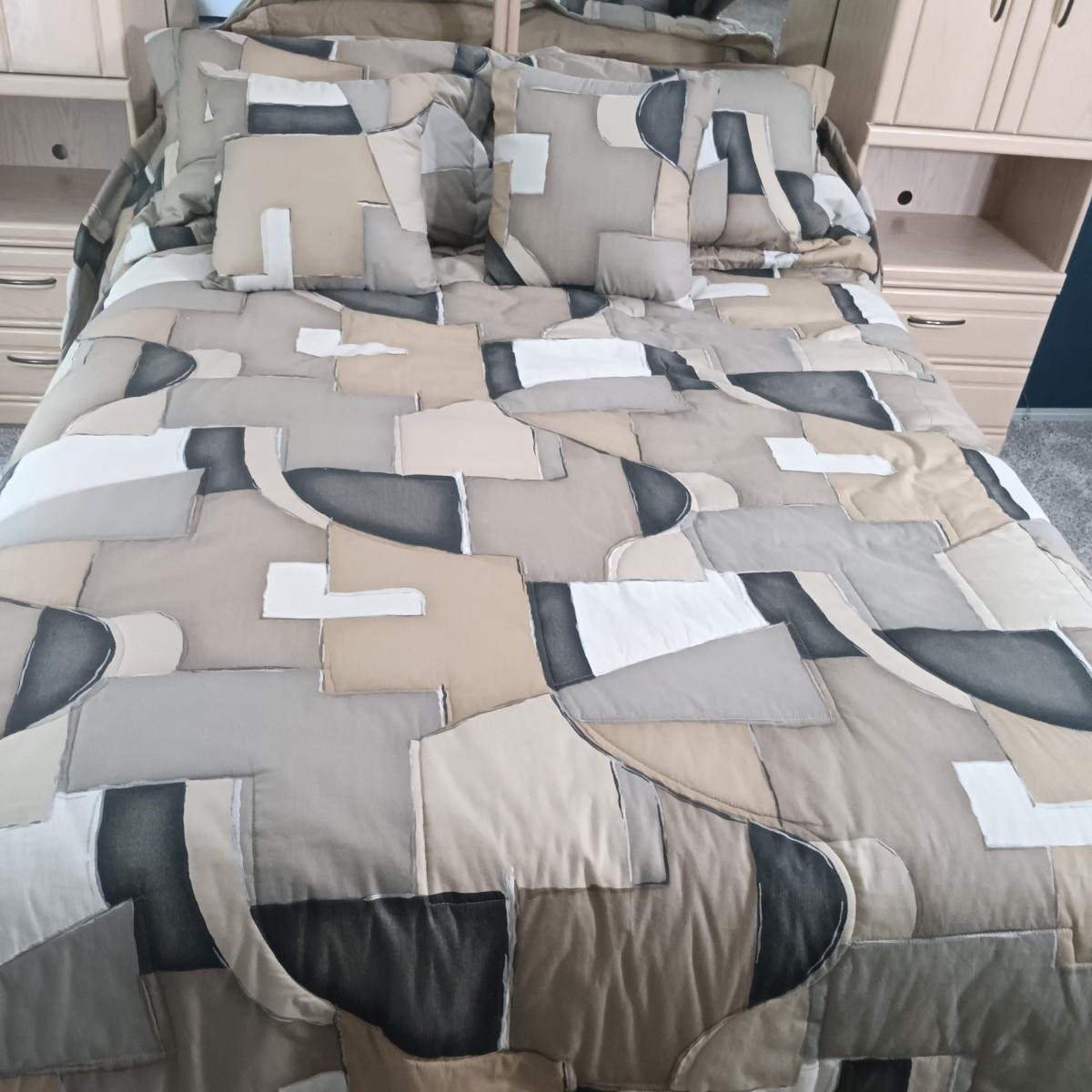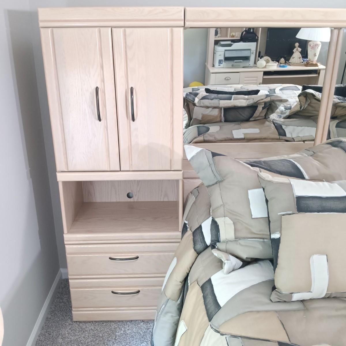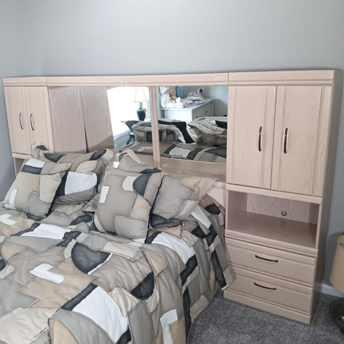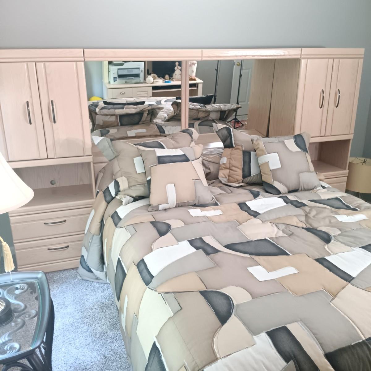 LOT 2: Palliser Queen Size Closet Set with Mirrored Head Board & Pacific Designs Queen Comforter Set