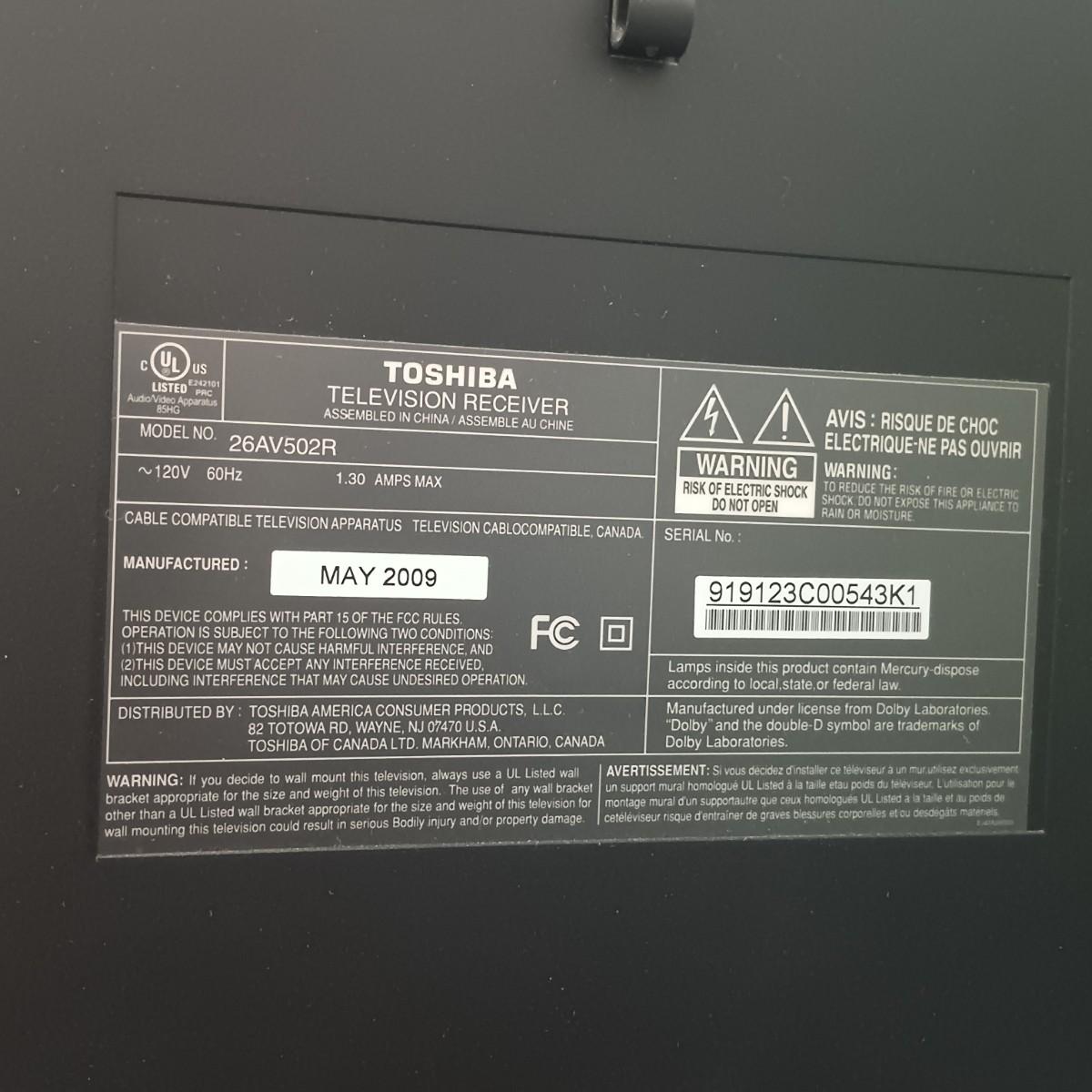 LOT 6: Toshiba 26AV502R 26" LCD HD TV