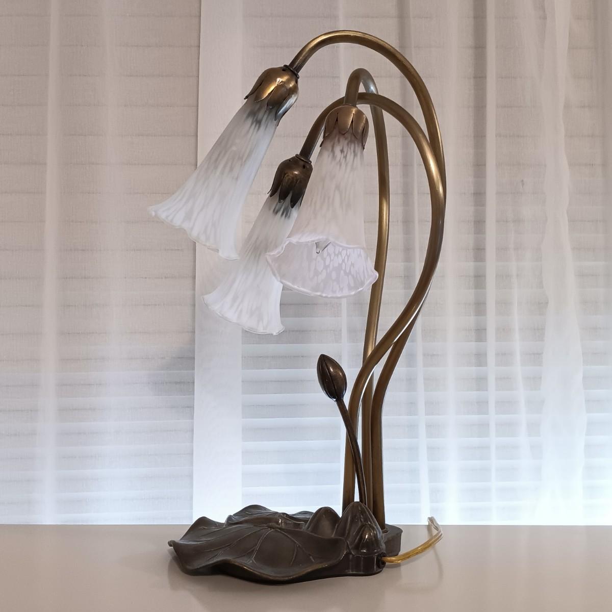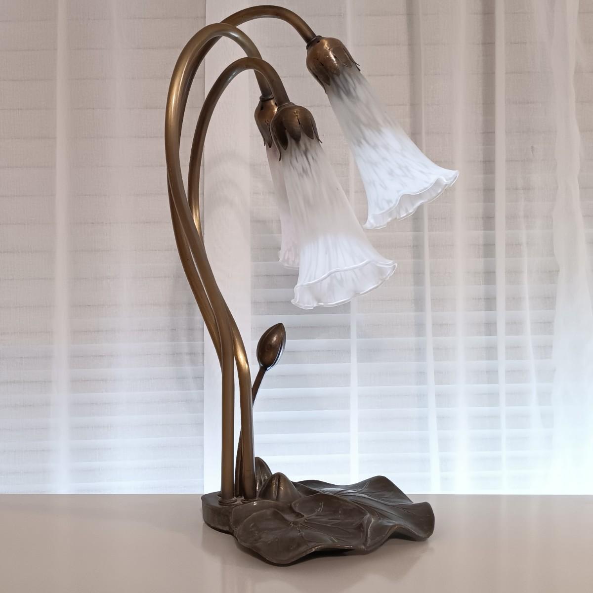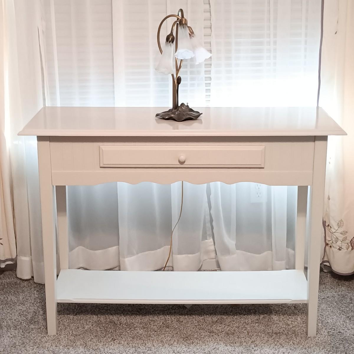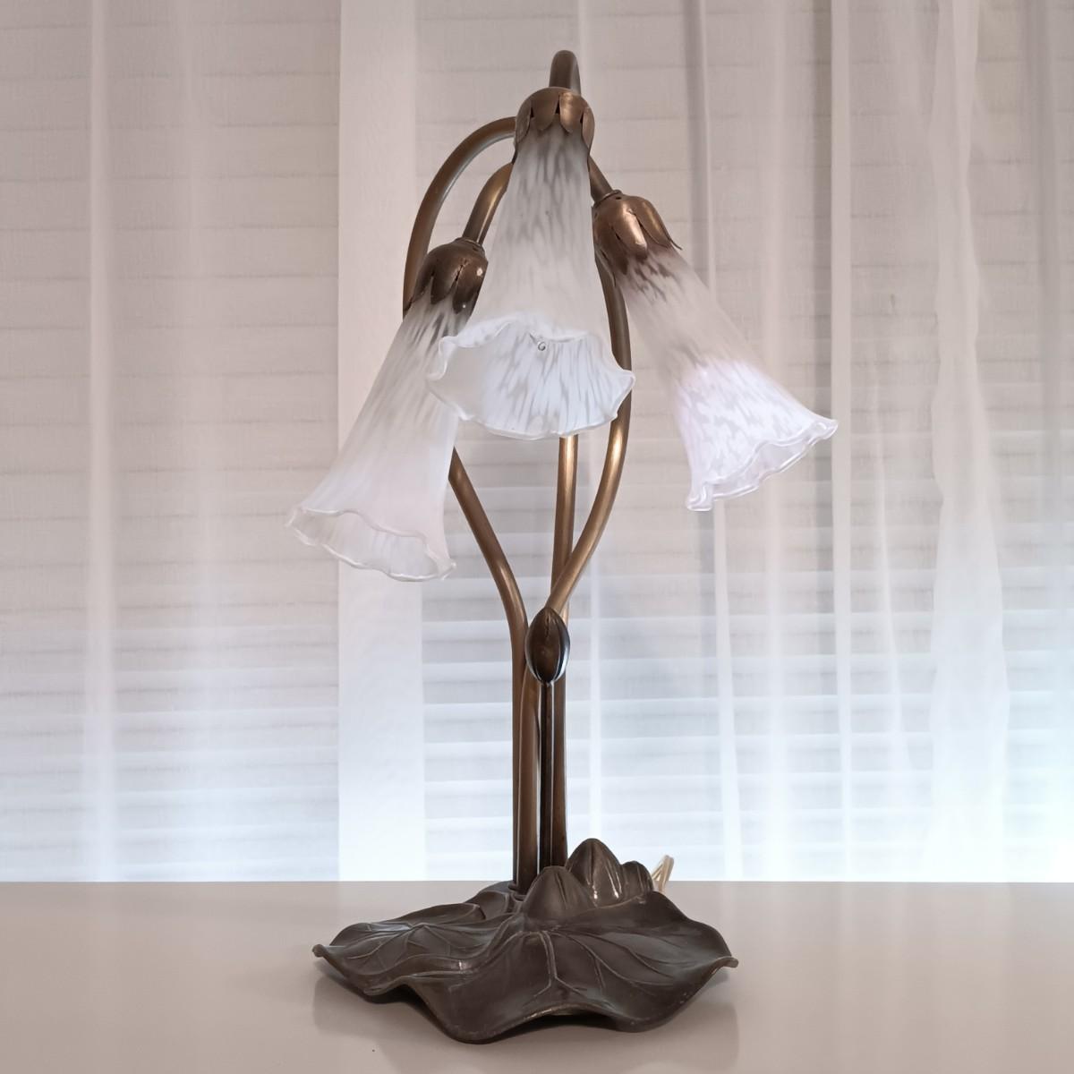 LOT 24: Meyda-Style White Pond Lily Accent Lamp with Console Table