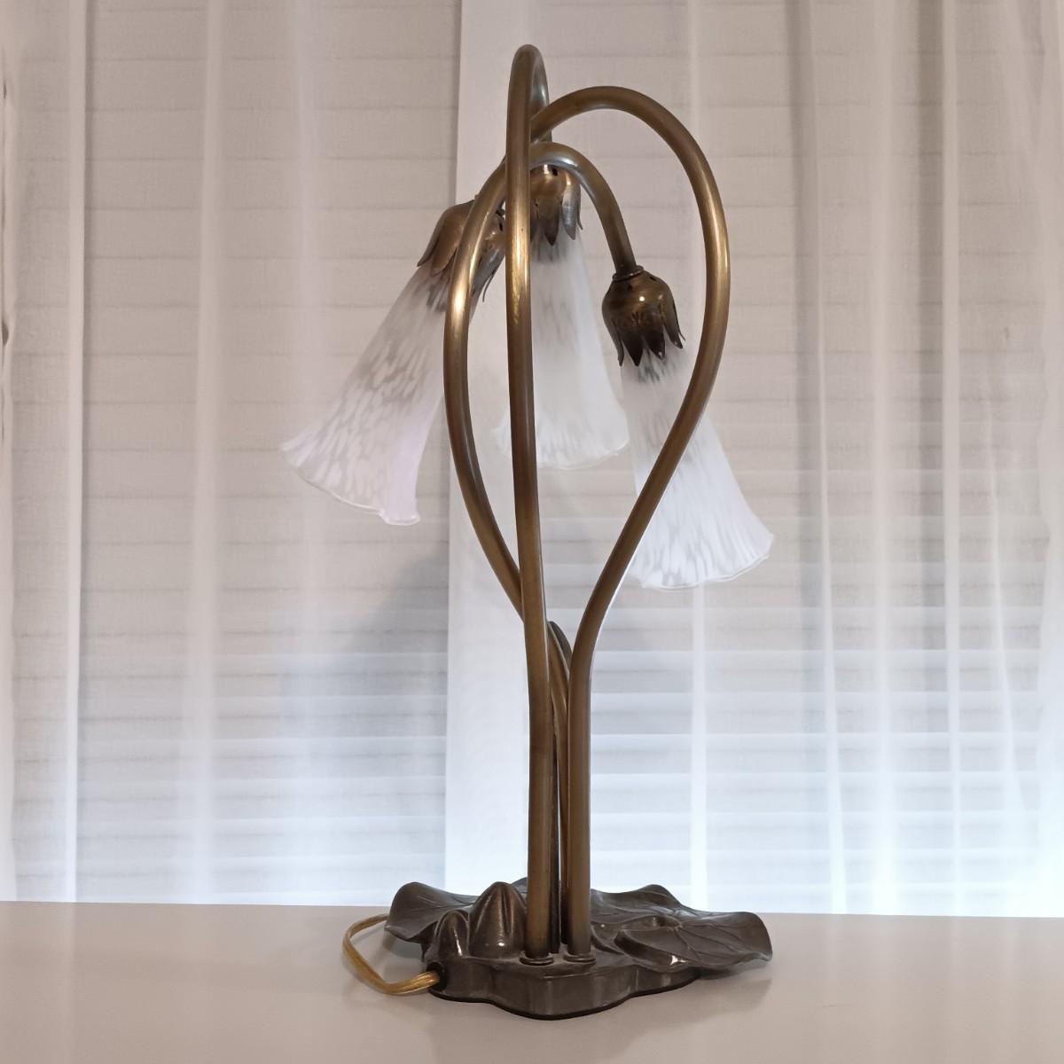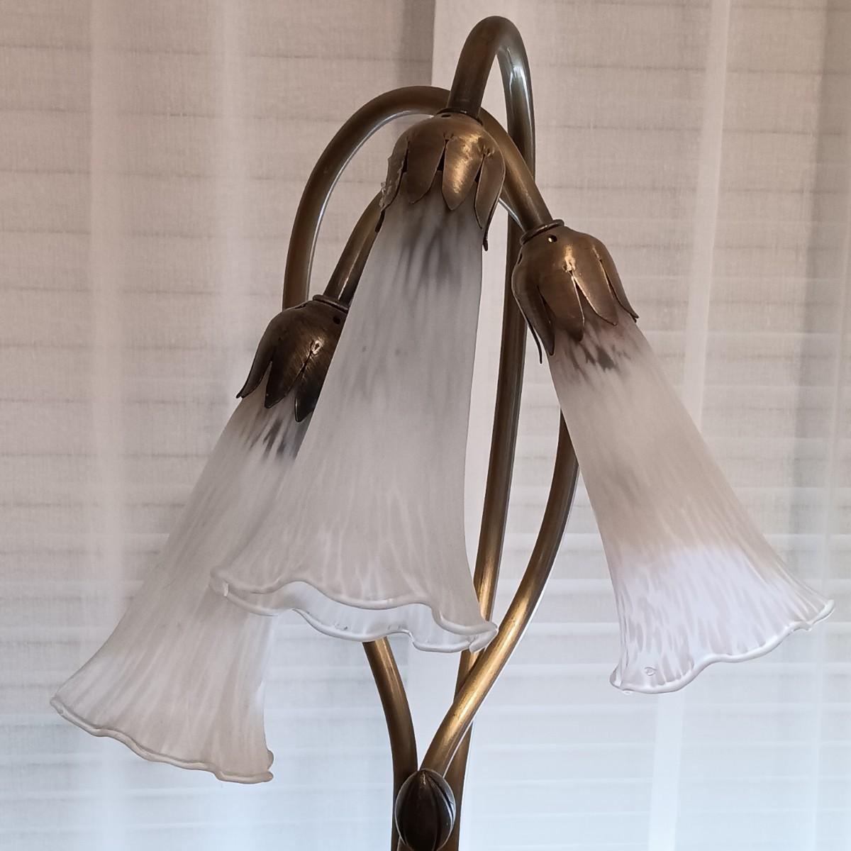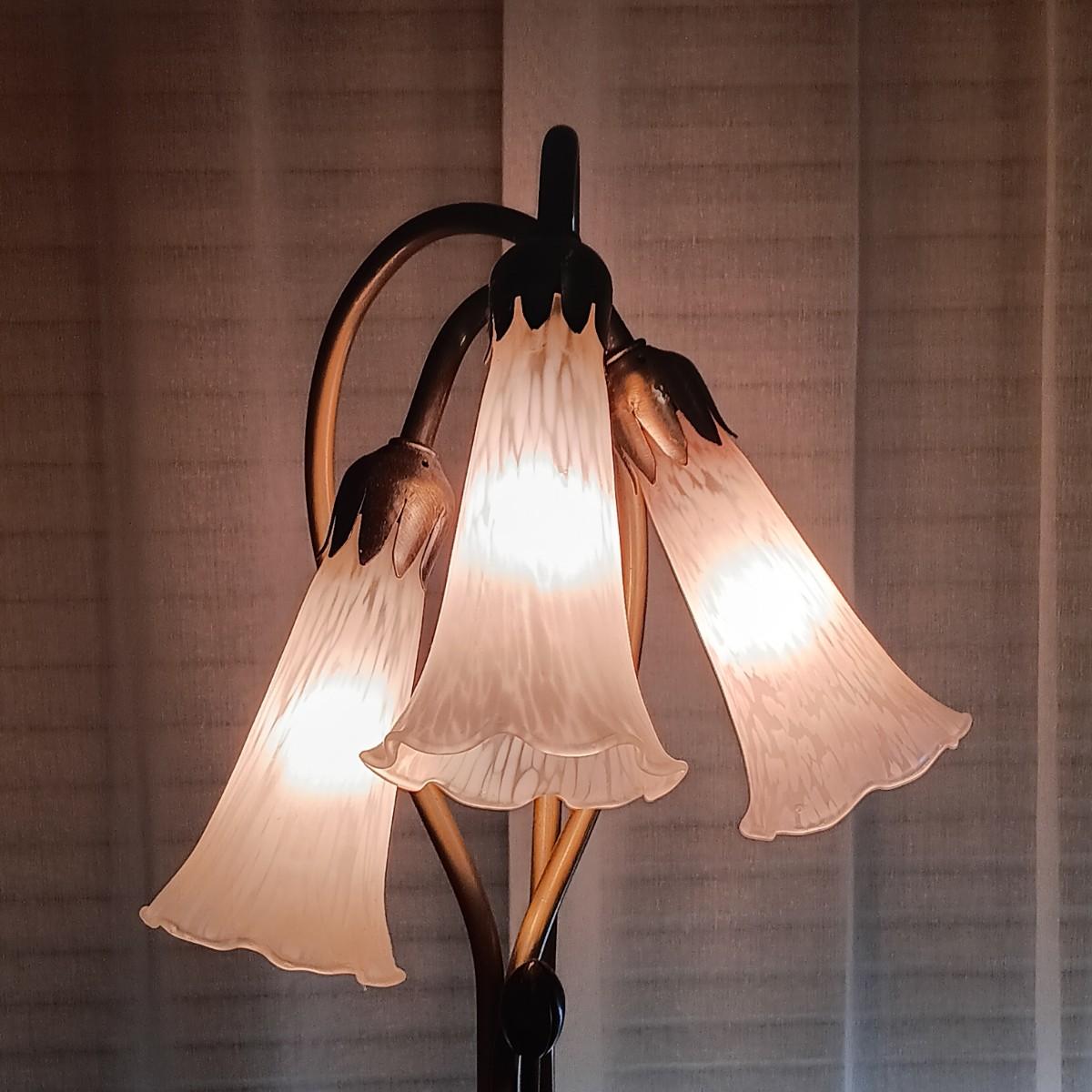 LOT 24: Meyda-Style White Pond Lily Accent Lamp with Console Table