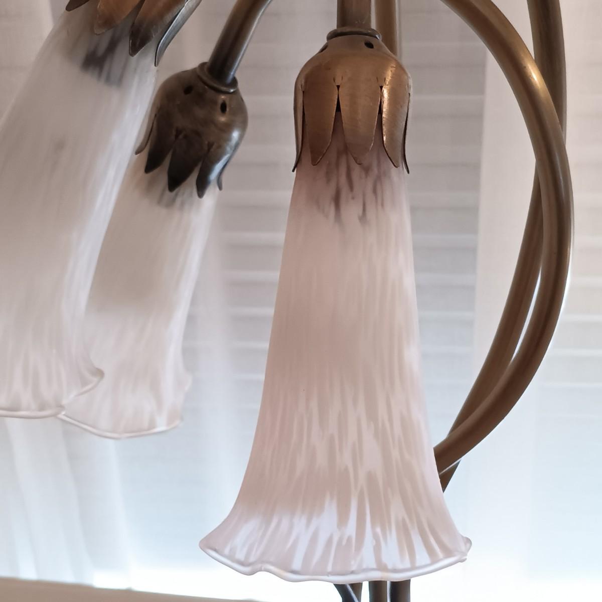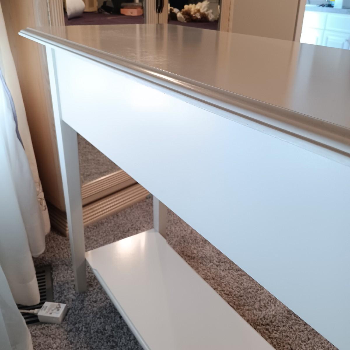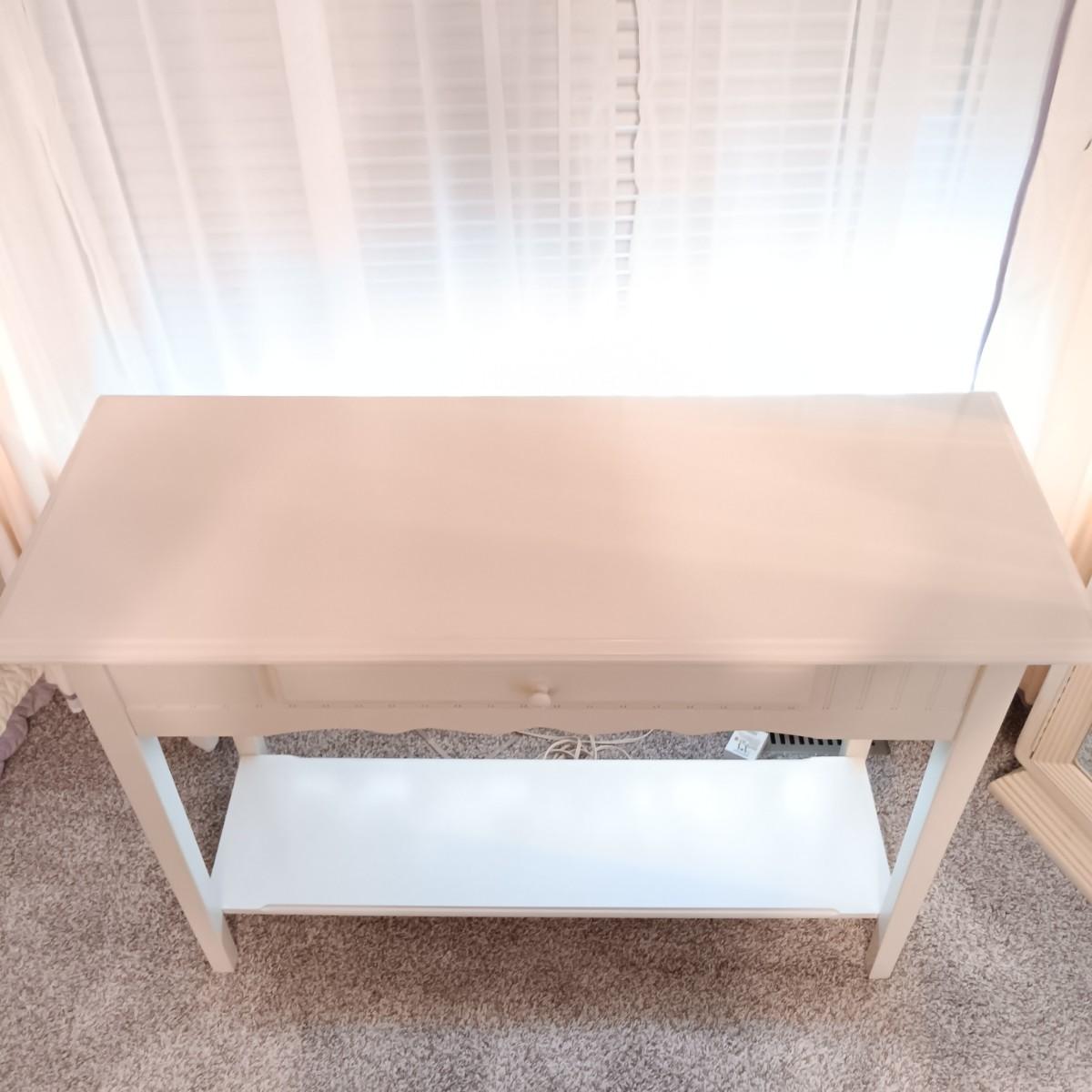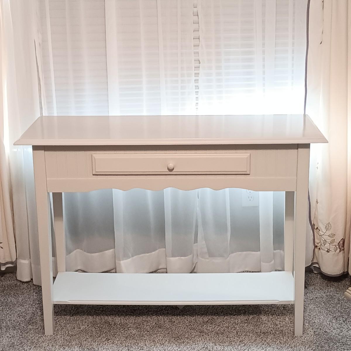 LOT 24: Meyda-Style White Pond Lily Accent Lamp with Console Table