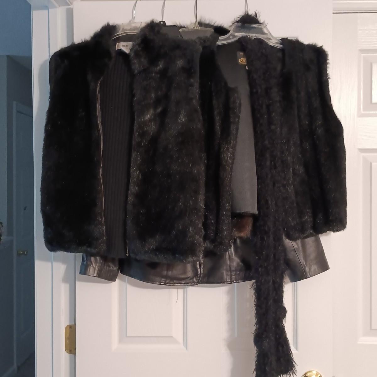 LOT 26: Faux Fur Fashion - Donna Salyers and Maurice Sasson Vests with Pleather Jacket