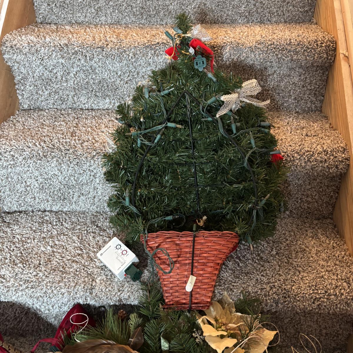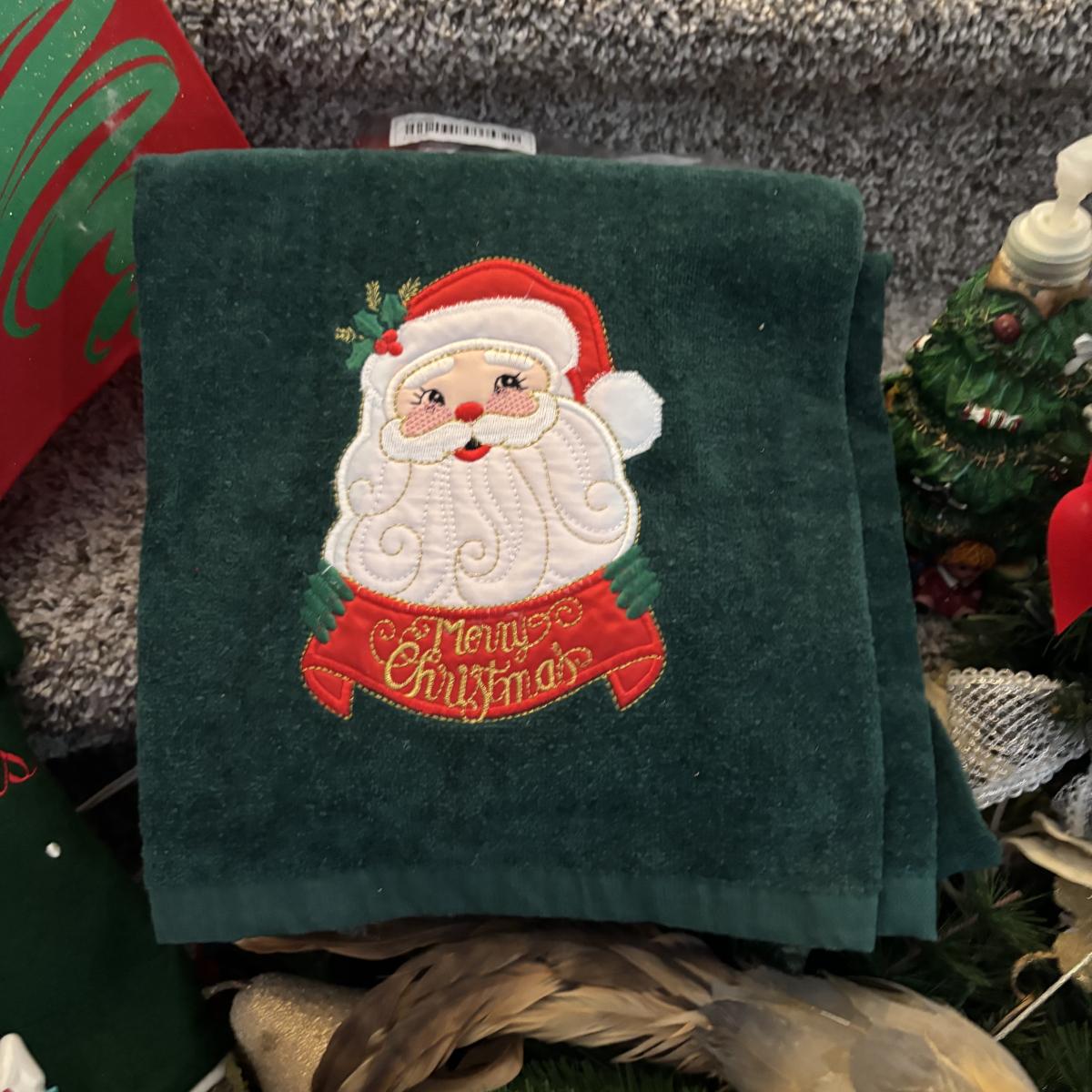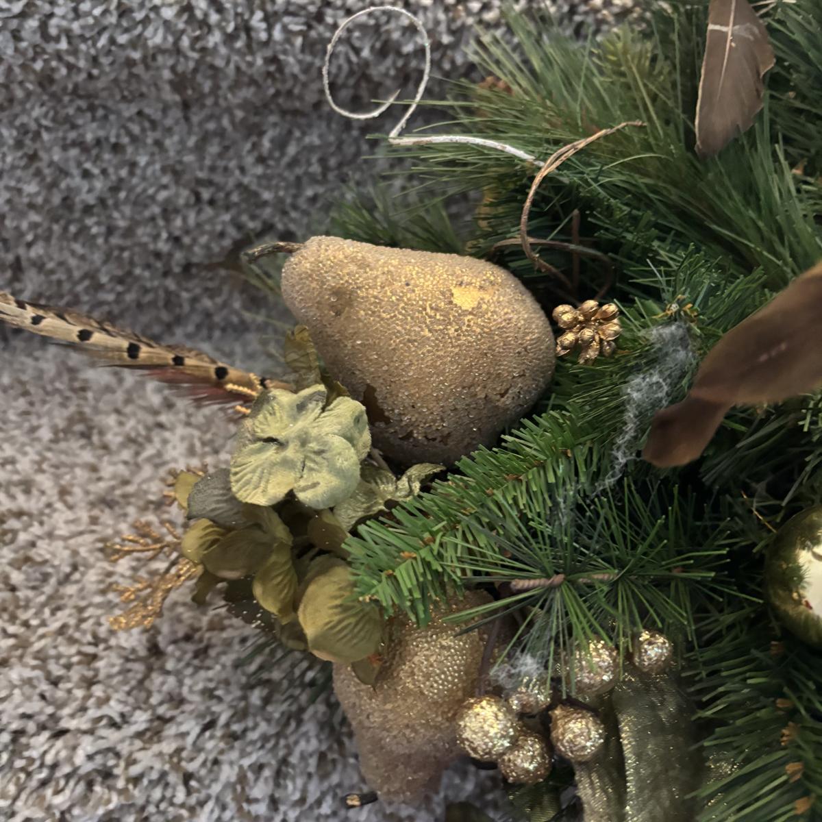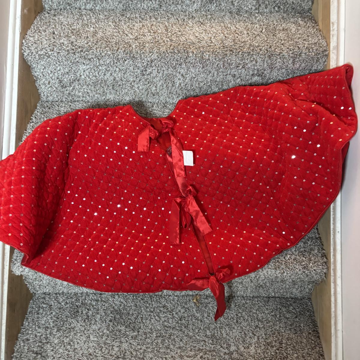 LOT 28: Holiday Decor: Sequined Tree Skirts, Center Piece, Fabric Tree Lamp and More