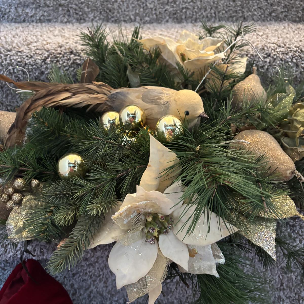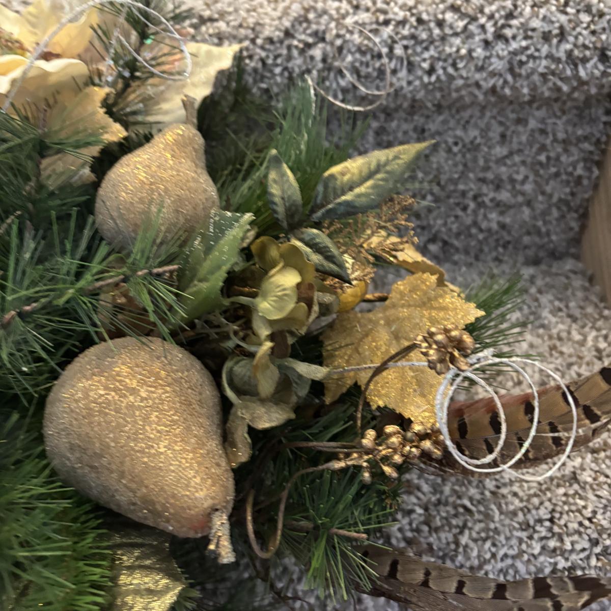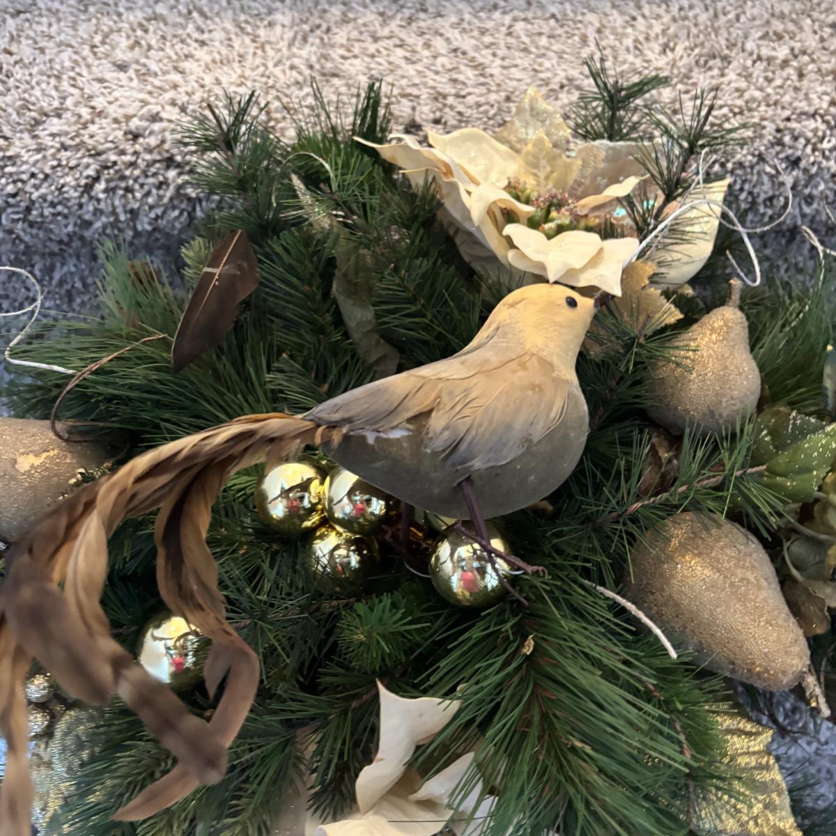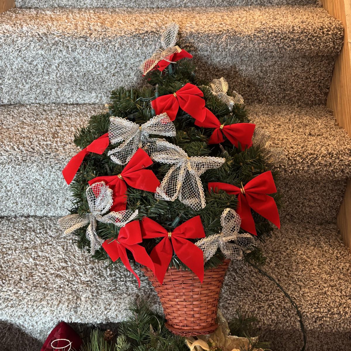 LOT 28: Holiday Decor: Sequined Tree Skirts, Center Piece, Fabric Tree Lamp and More