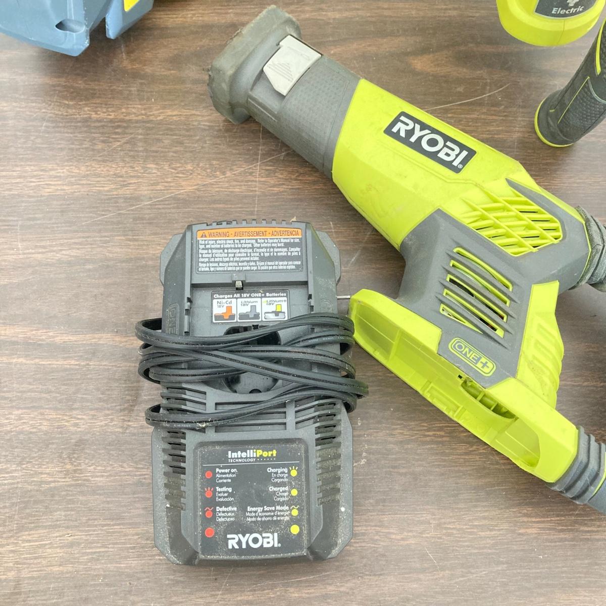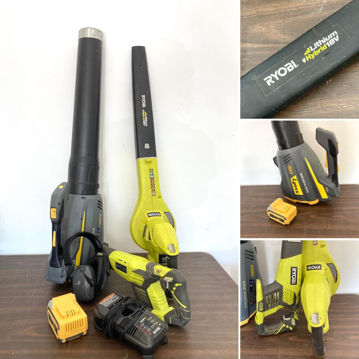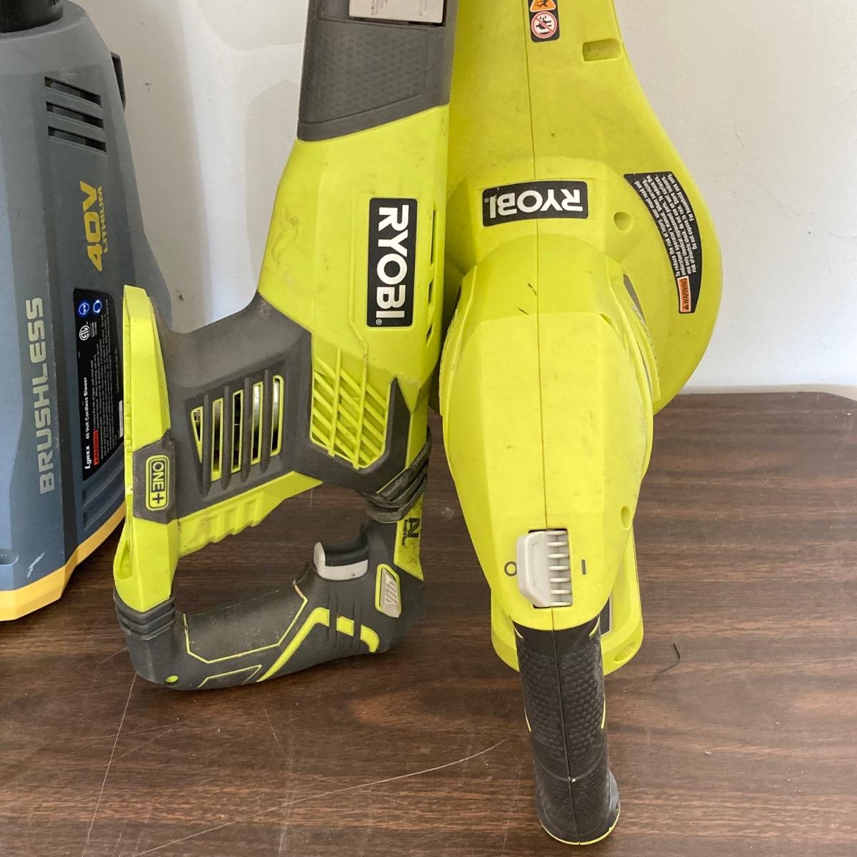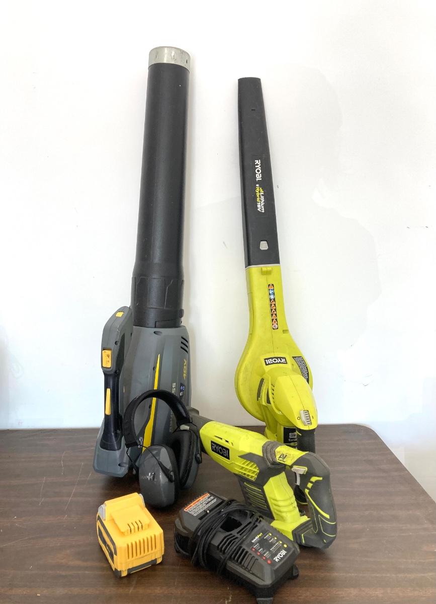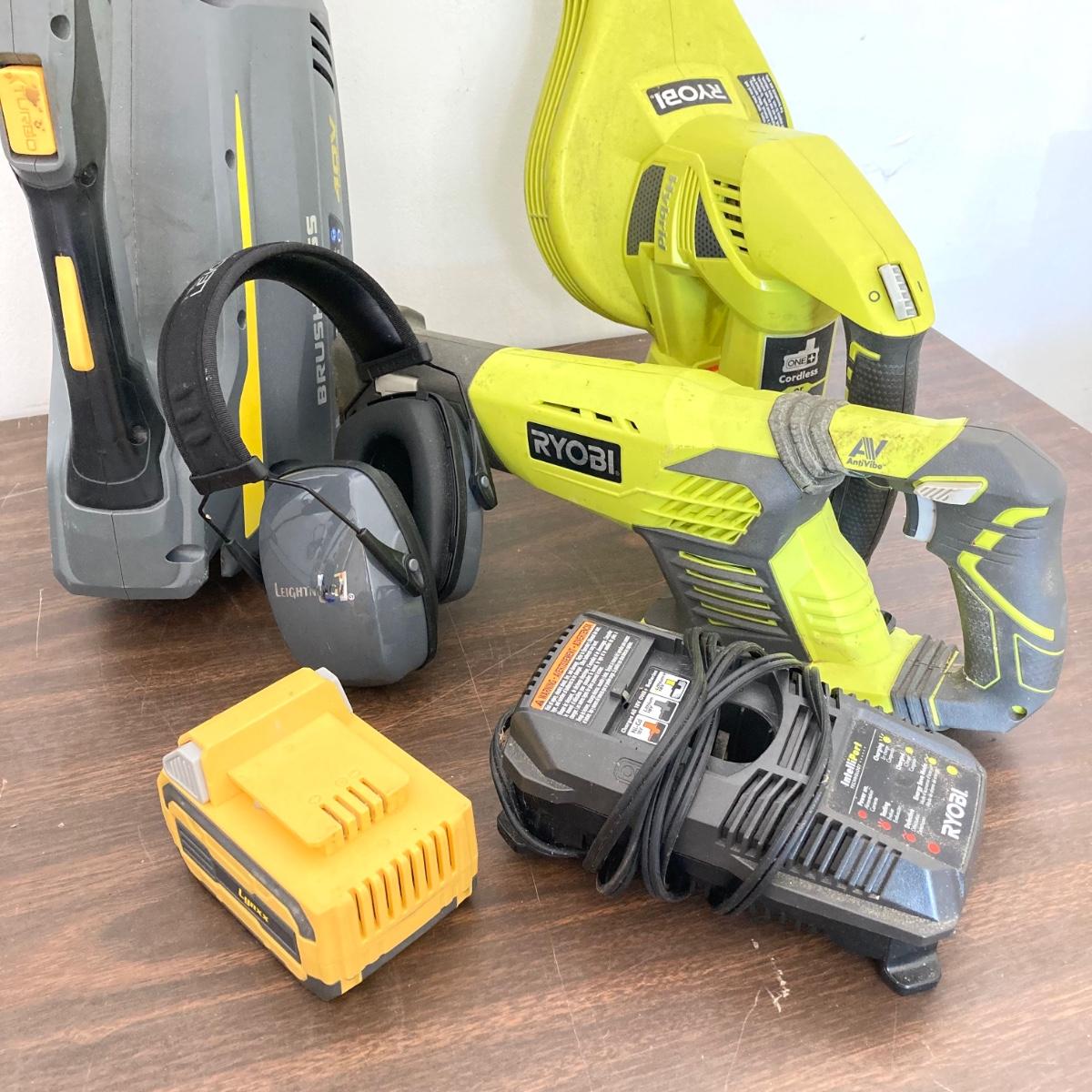 LOT 51: Ryobi Hybrid 18 P2107 Blower, P514 Saw, and P118 Battery IntelliPort Charger, Lynxx Cordless Blower, Battery Pack and More