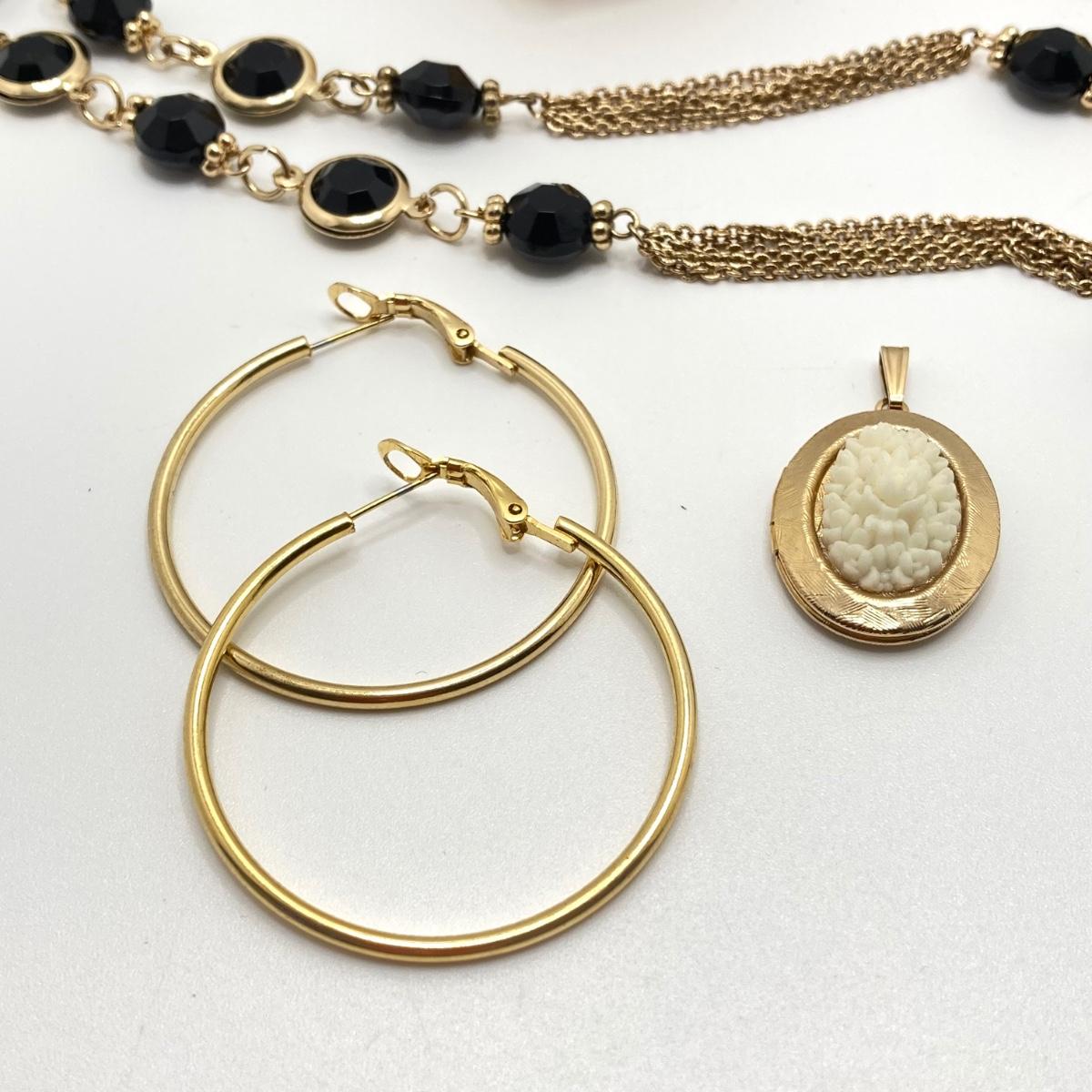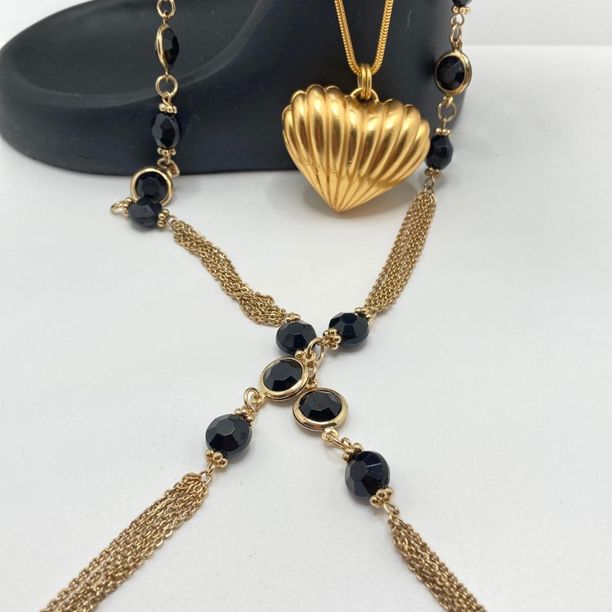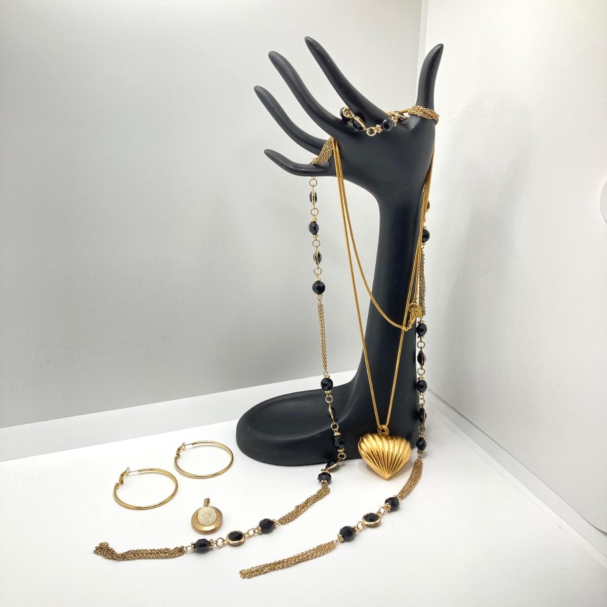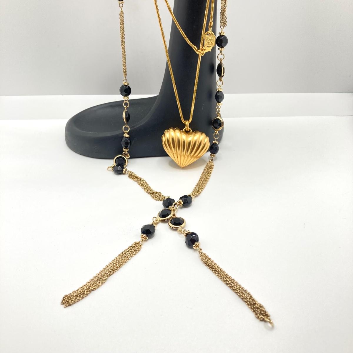LOT 58: Fashion Jewelry - Anne Klein Puffy Gold Tone Heart Pendant Necklace, Lariat Gold Tone and BlackBead Chain, Locket Pendant and more