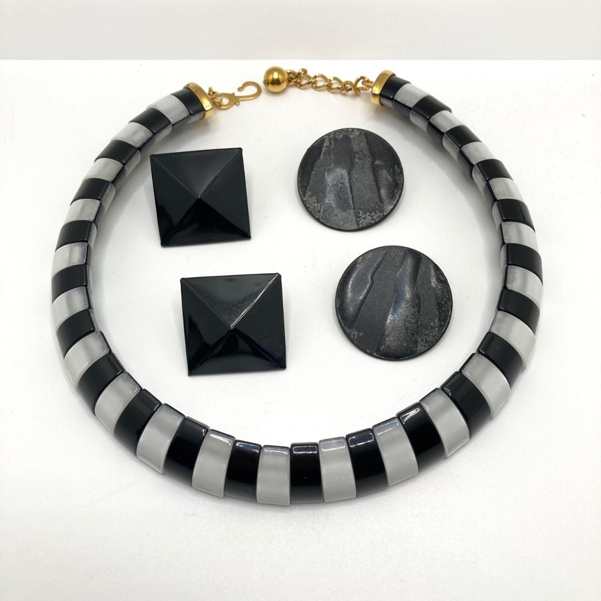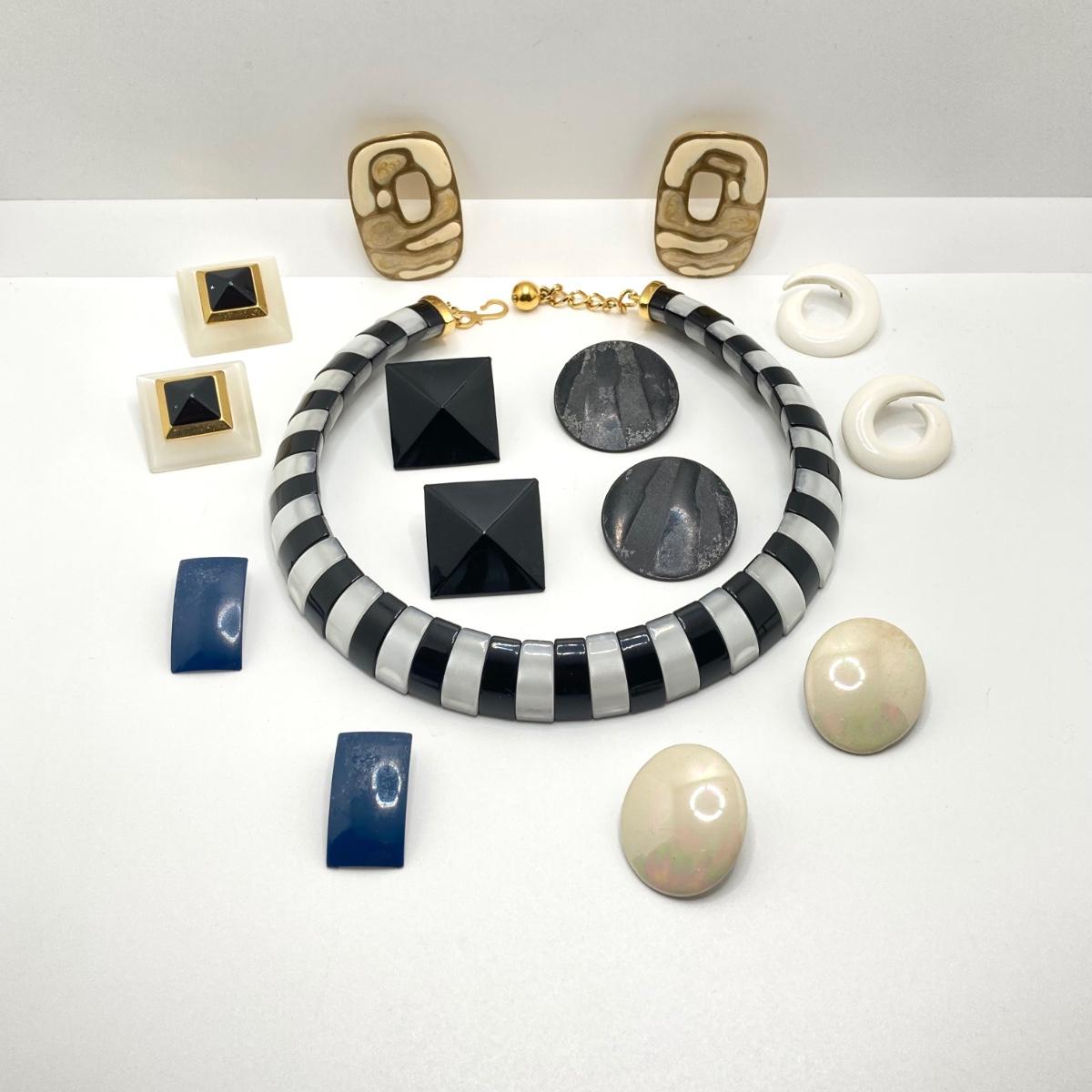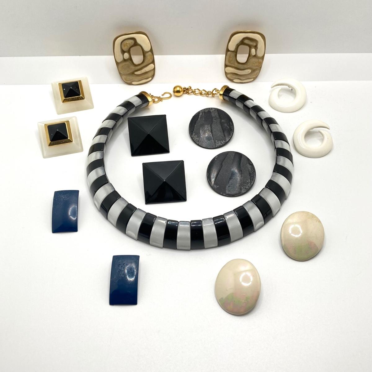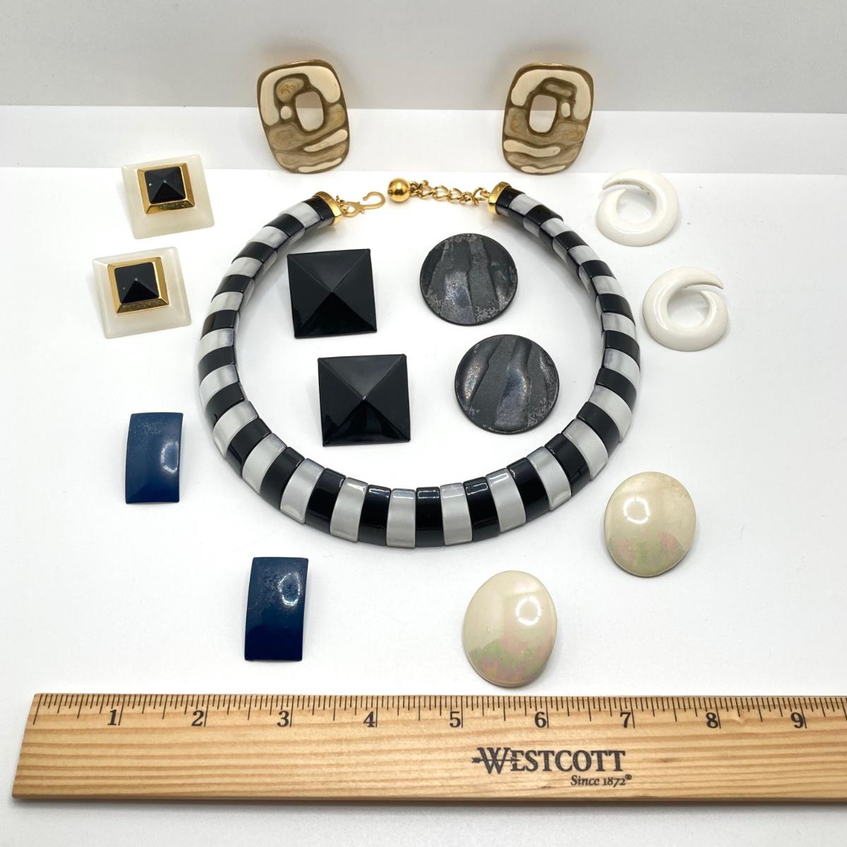 LOT 59: Gorgeous Black and White Choker Necklace with Collection of Earrings
