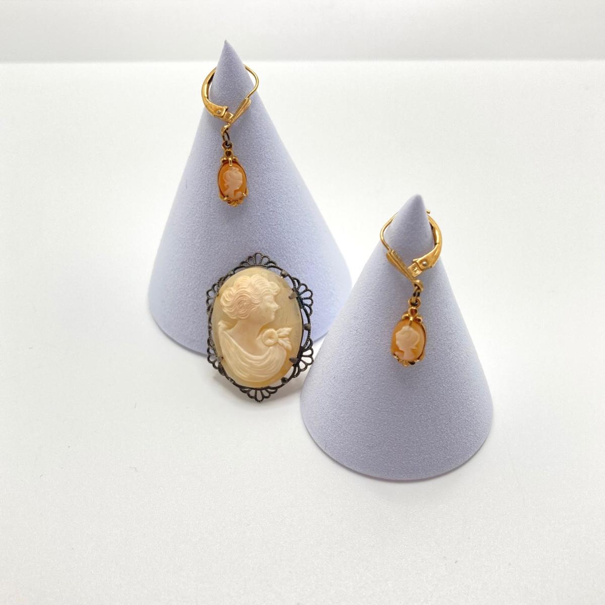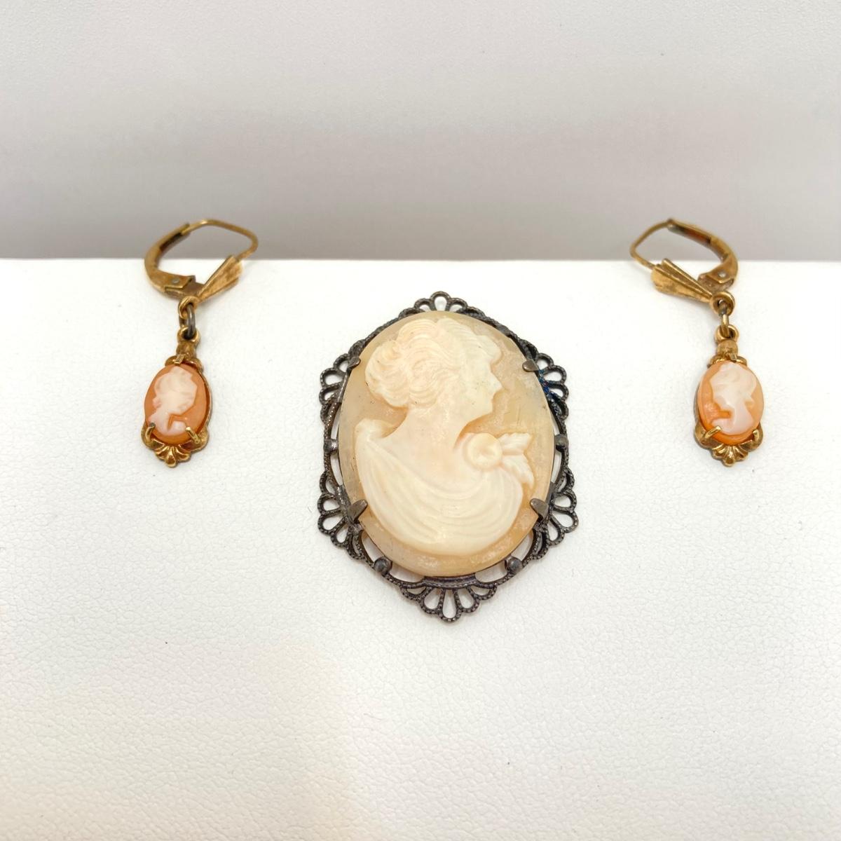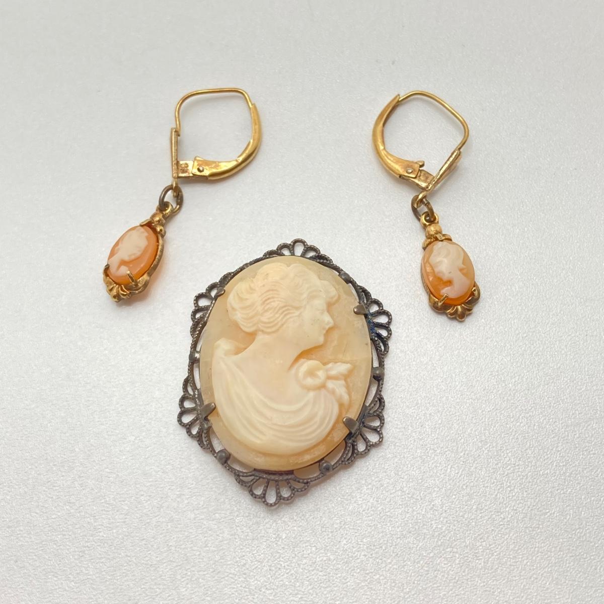 LOT 64: Sterling Cameo with RG Cameo Gold Tone Dangle Earrings