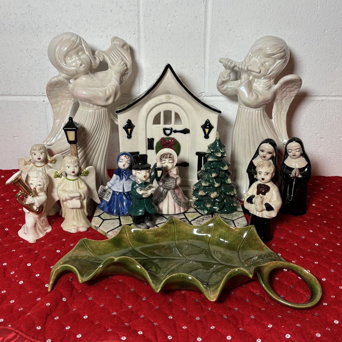 LOT 101: Vintage 1960s Hand Painted Ceramic Holiday Decorations
