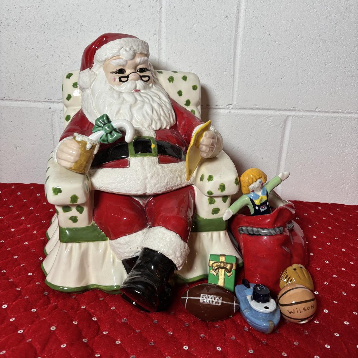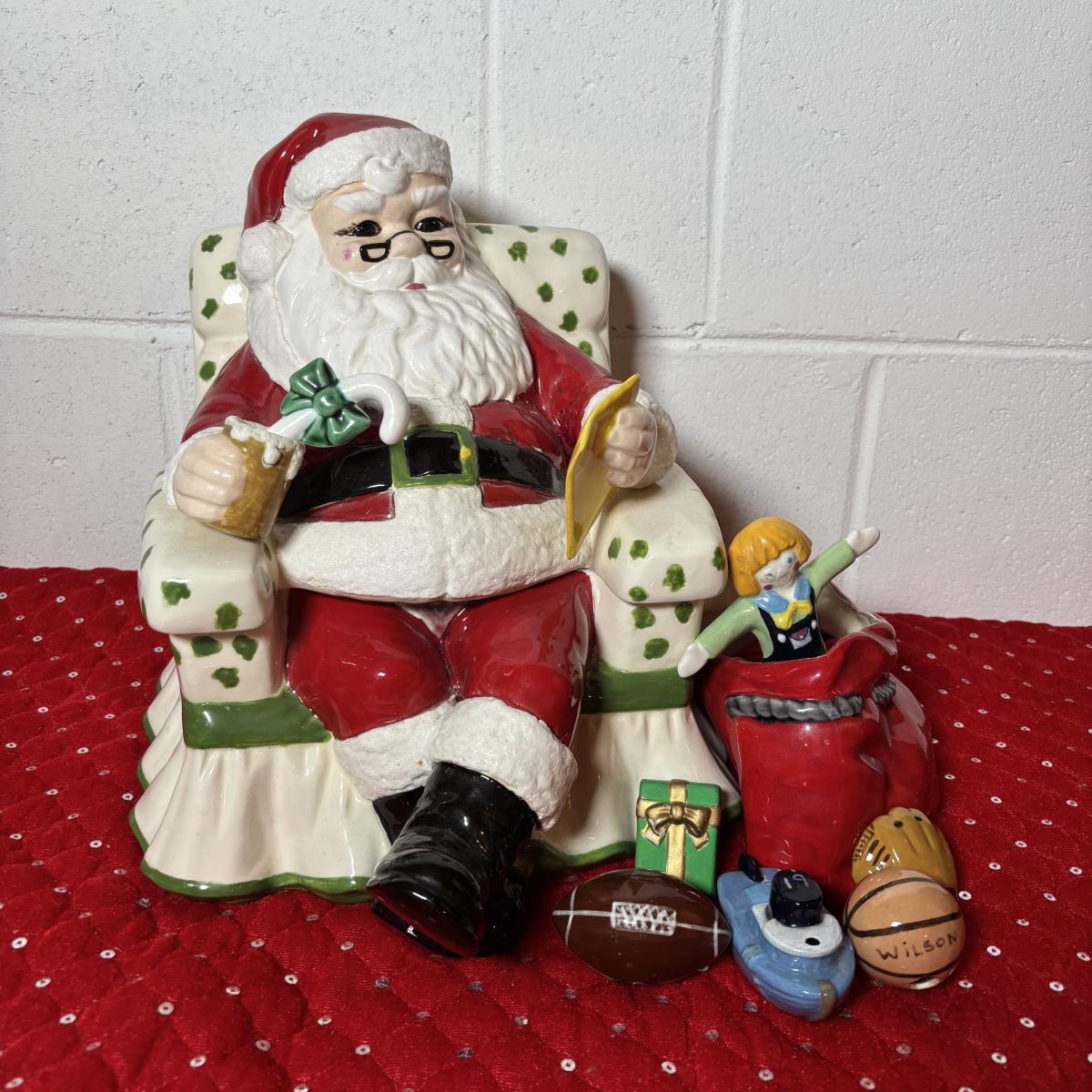 LOT 102: Vintage 1985 Hand Painted Ceramic Santa Cookie Jar
