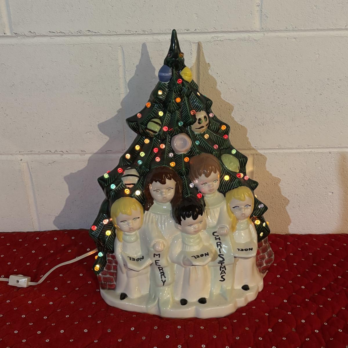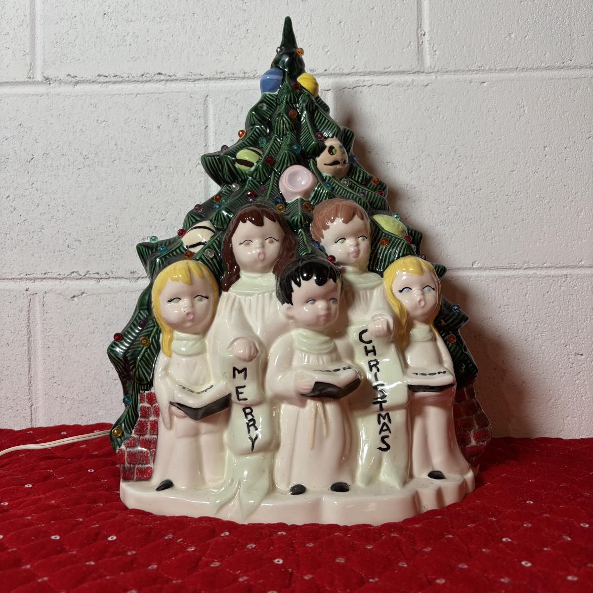 LOT 104: Vintage Children's Choir Lighted Ceramic Christmas Tress