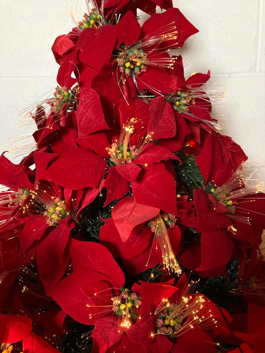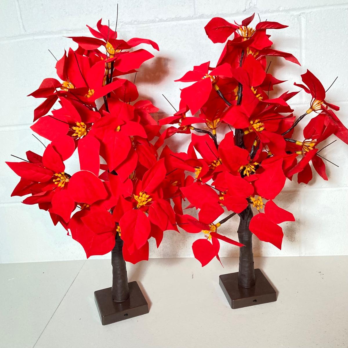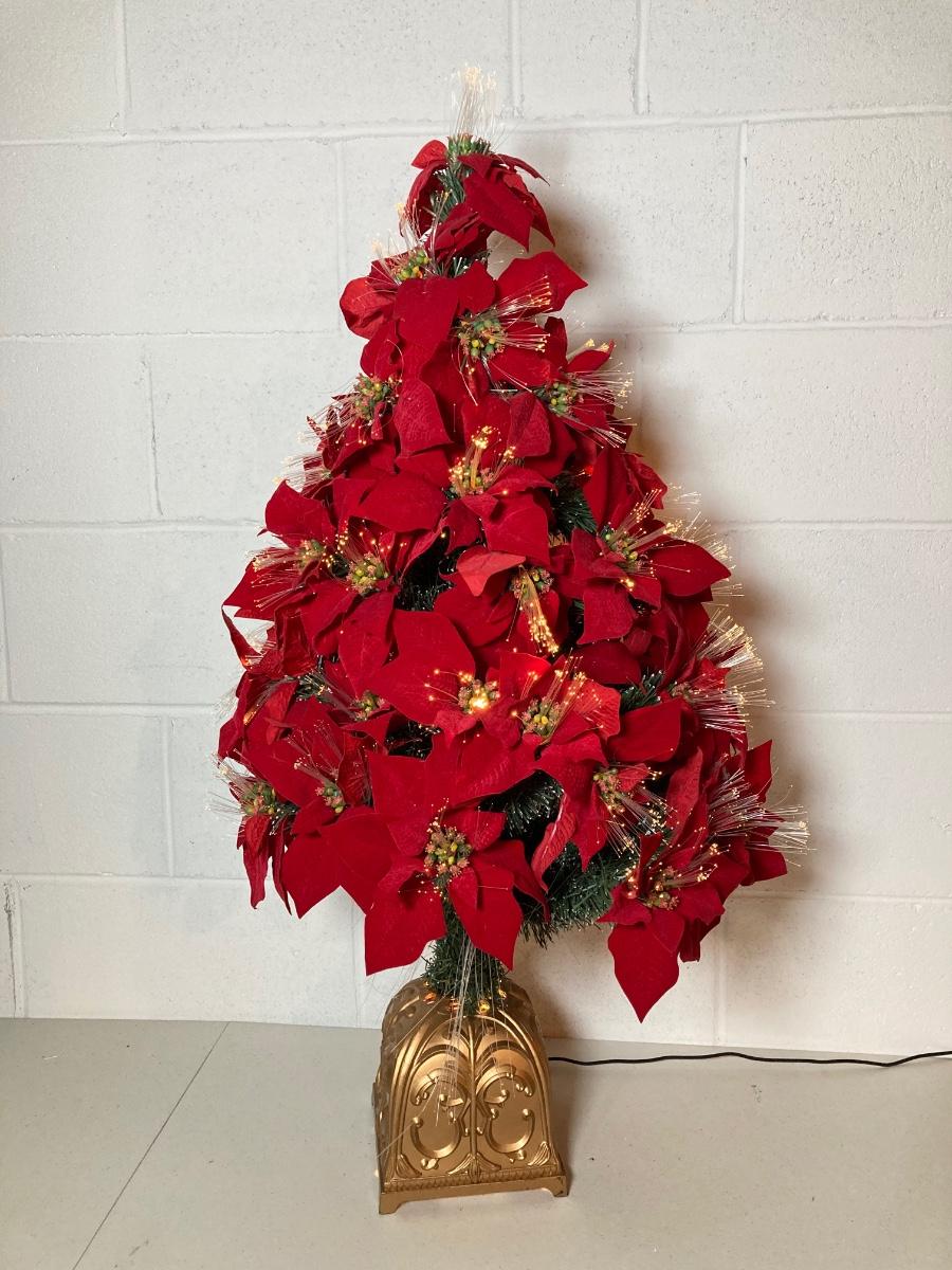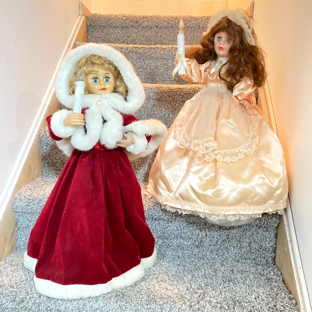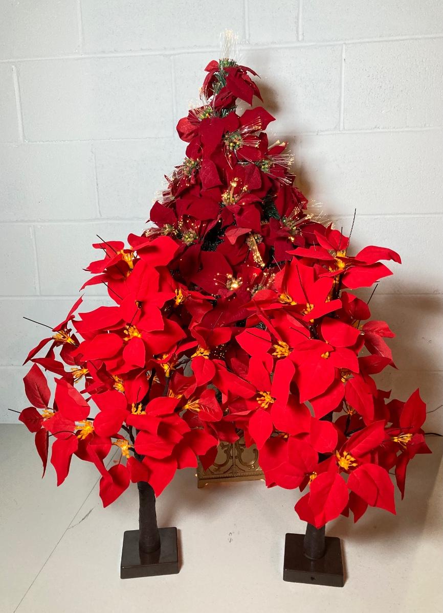 LOT 283: Holiday Decor Collection - Fiber Optic Poinsettia Trees and Animated Dolls
