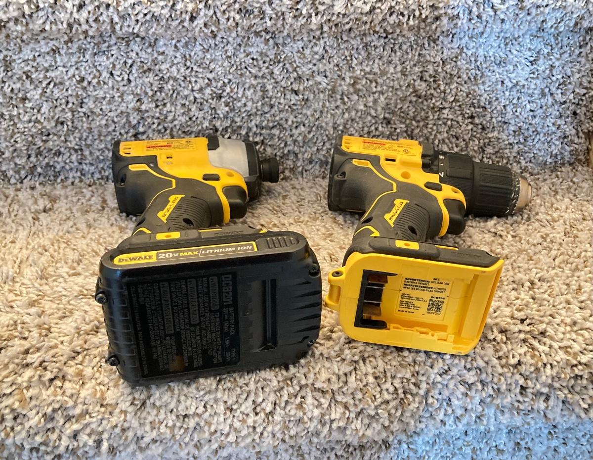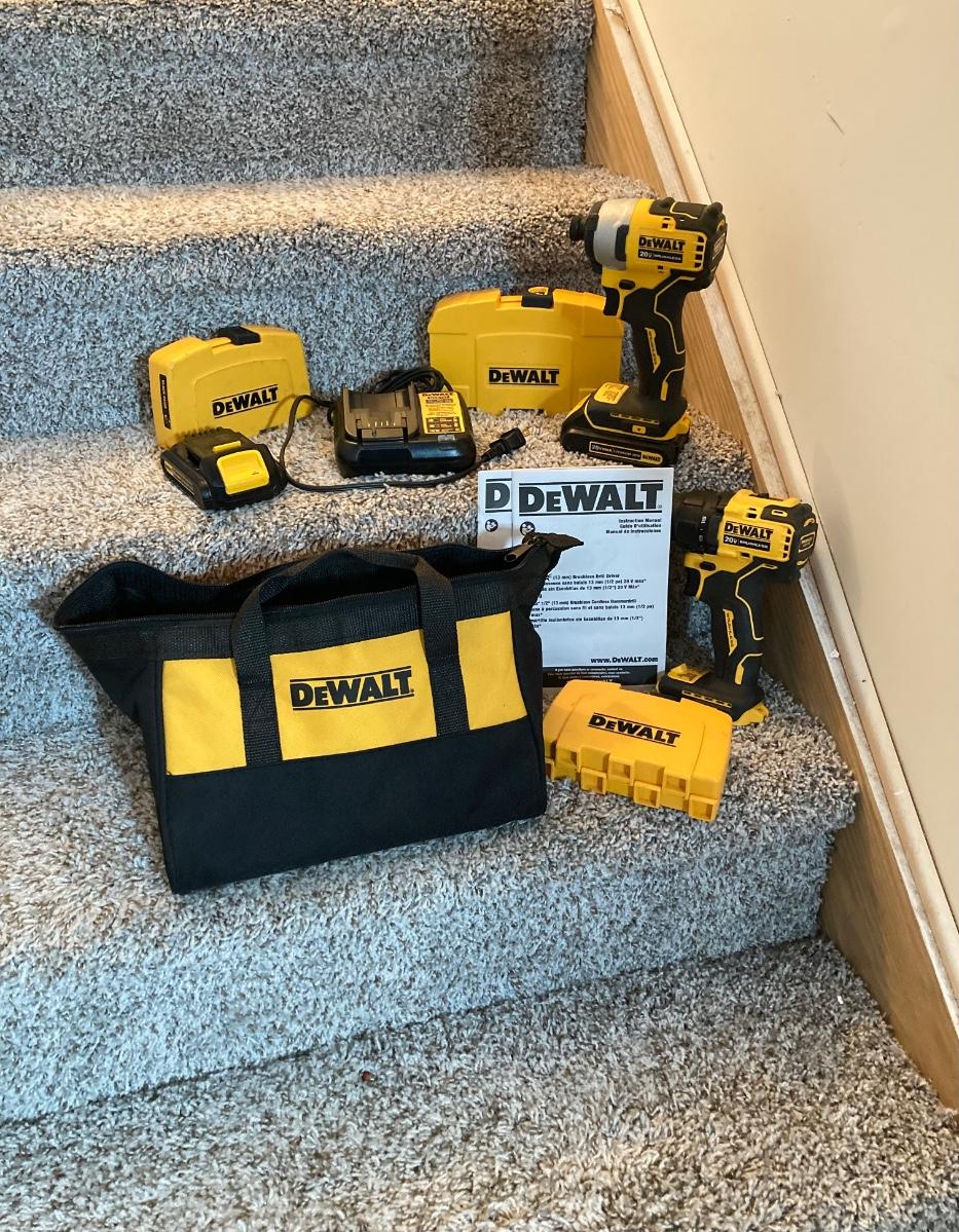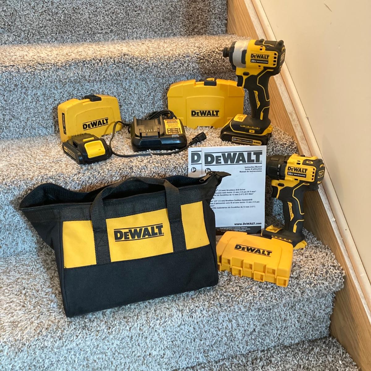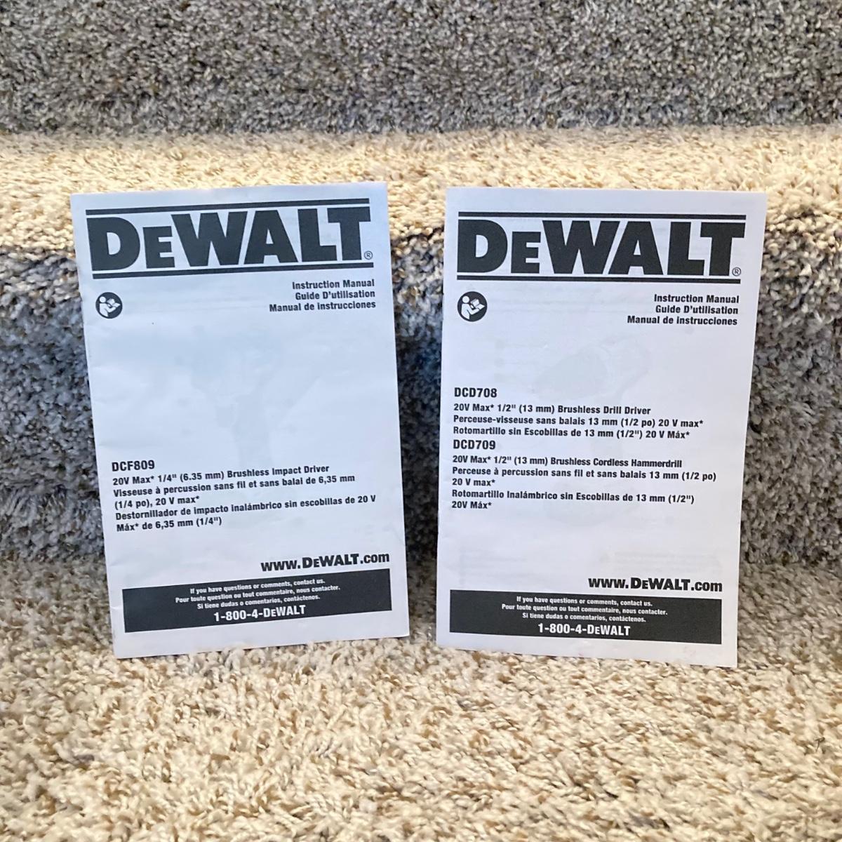 LOT 286: Dewalt Cordless Impact Driver DCF809, Cordless Drill Driver DCD708 with Bag, Charger, Batteries and Drill Bits
