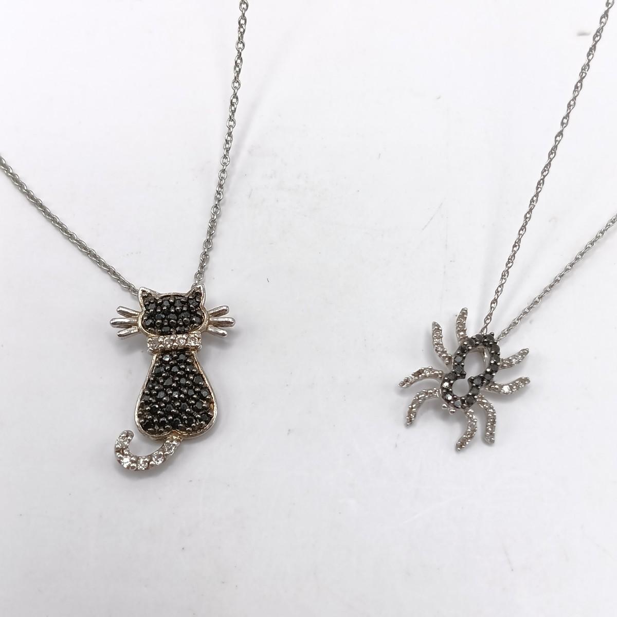 LOT 309: Silver-Tone Cat and Spider Rhinestone Necklaces