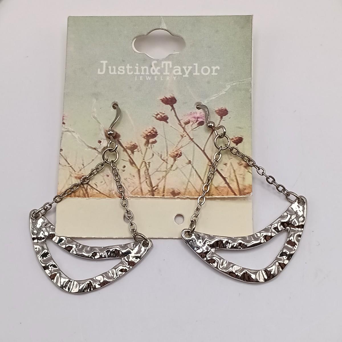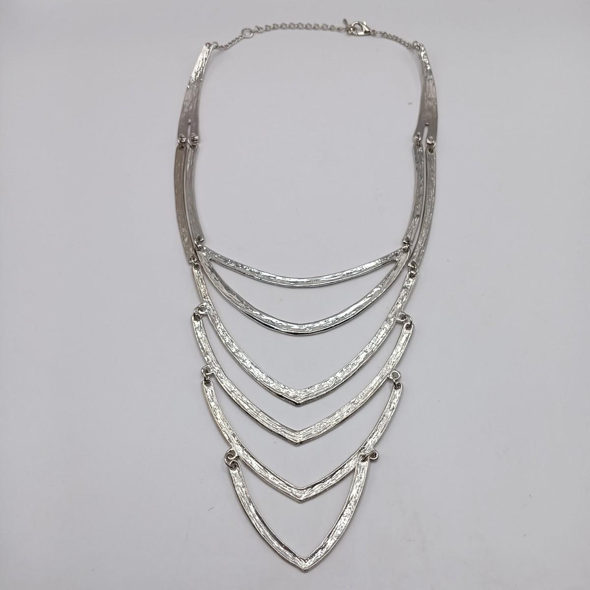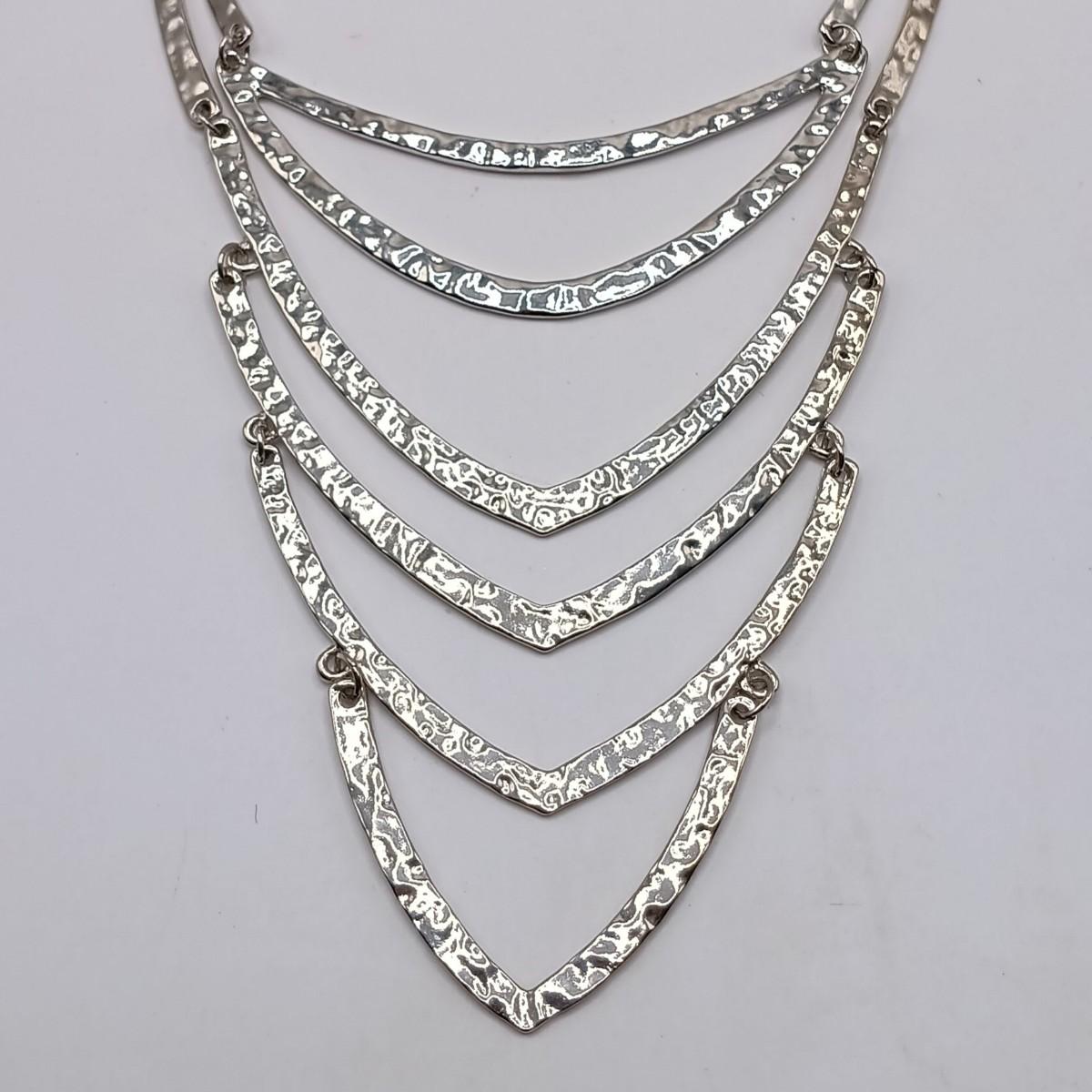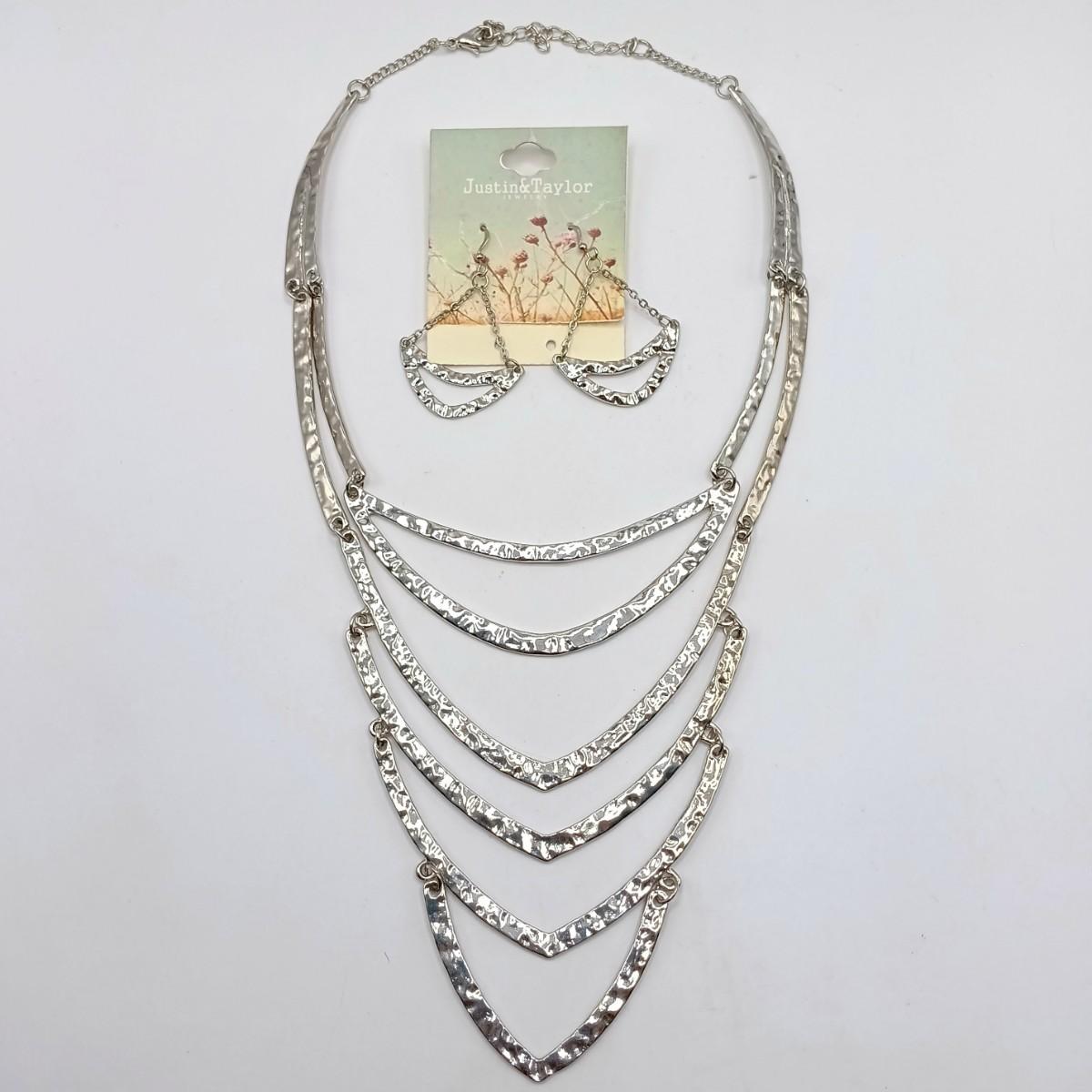 LOT 308: Justin & Taylor Silver-Tone Hammered Metal Statement Necklace and Earrings