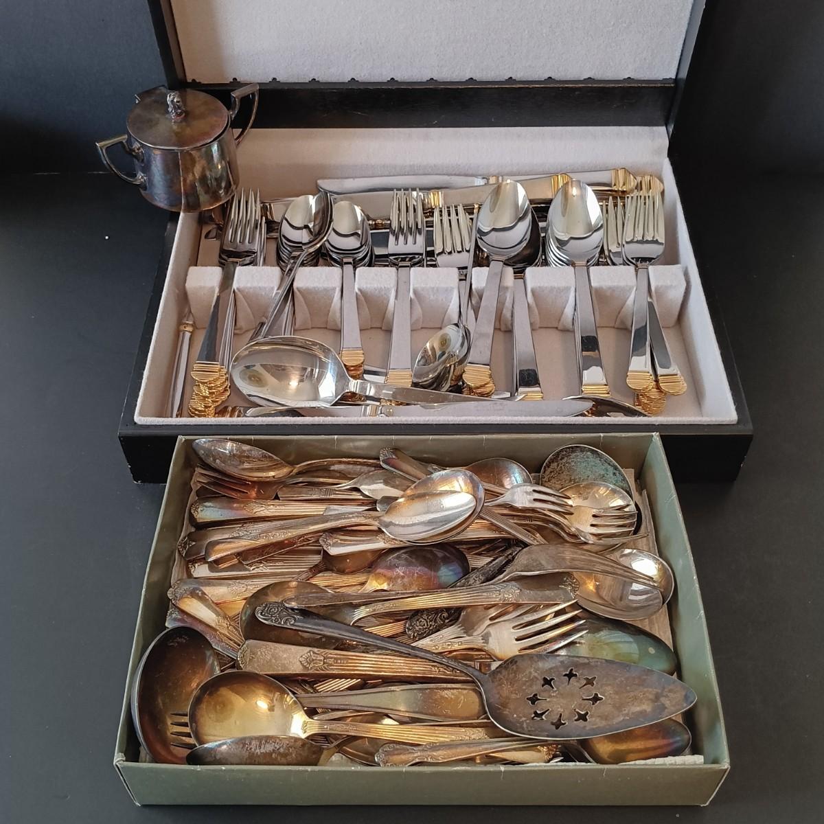 LOT 255: Large Collection of Plated and Stainless Steel Silverware