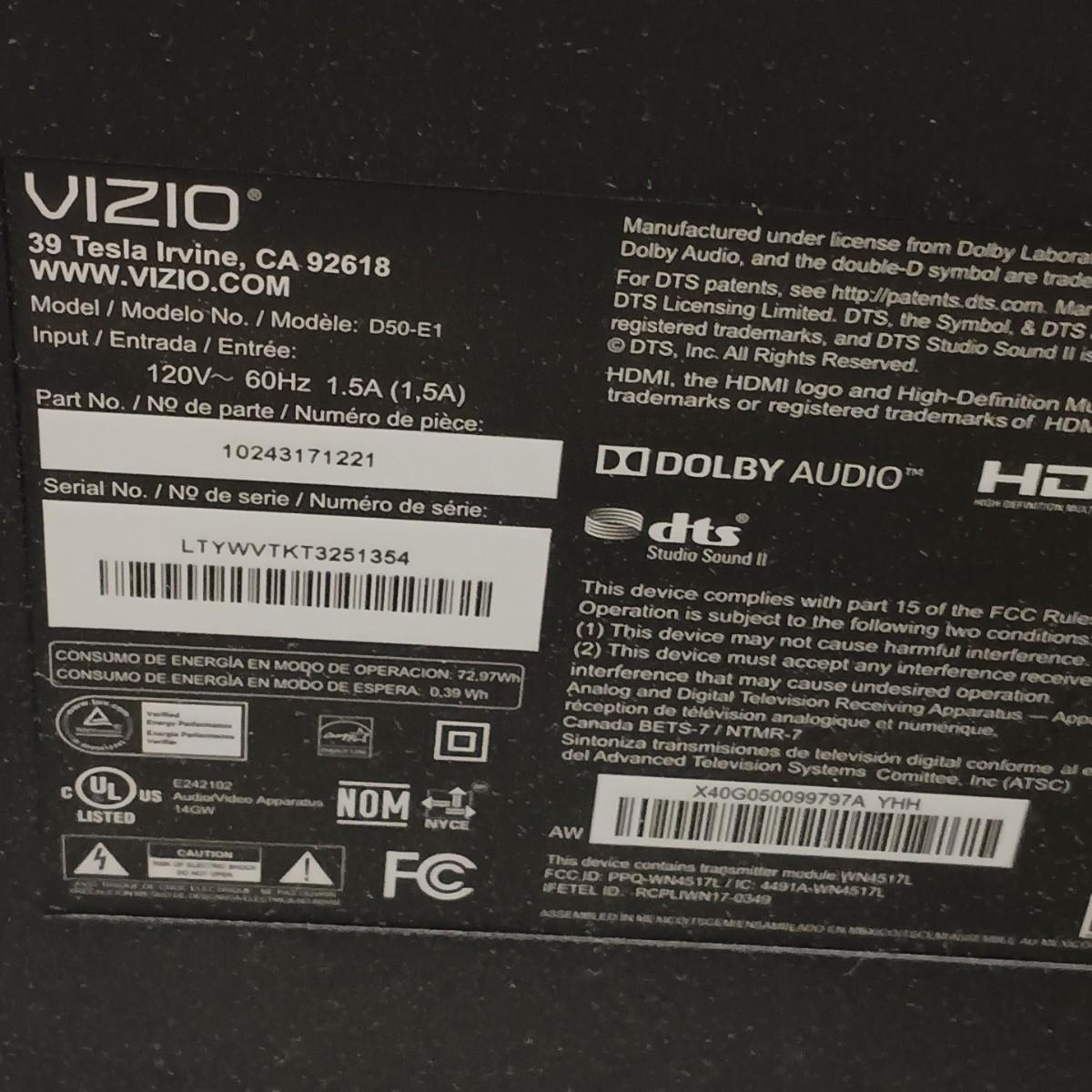 LOT 252: Vizio D50-E1 D-Series 50" Ultra HD Full-Array LED Smart TV